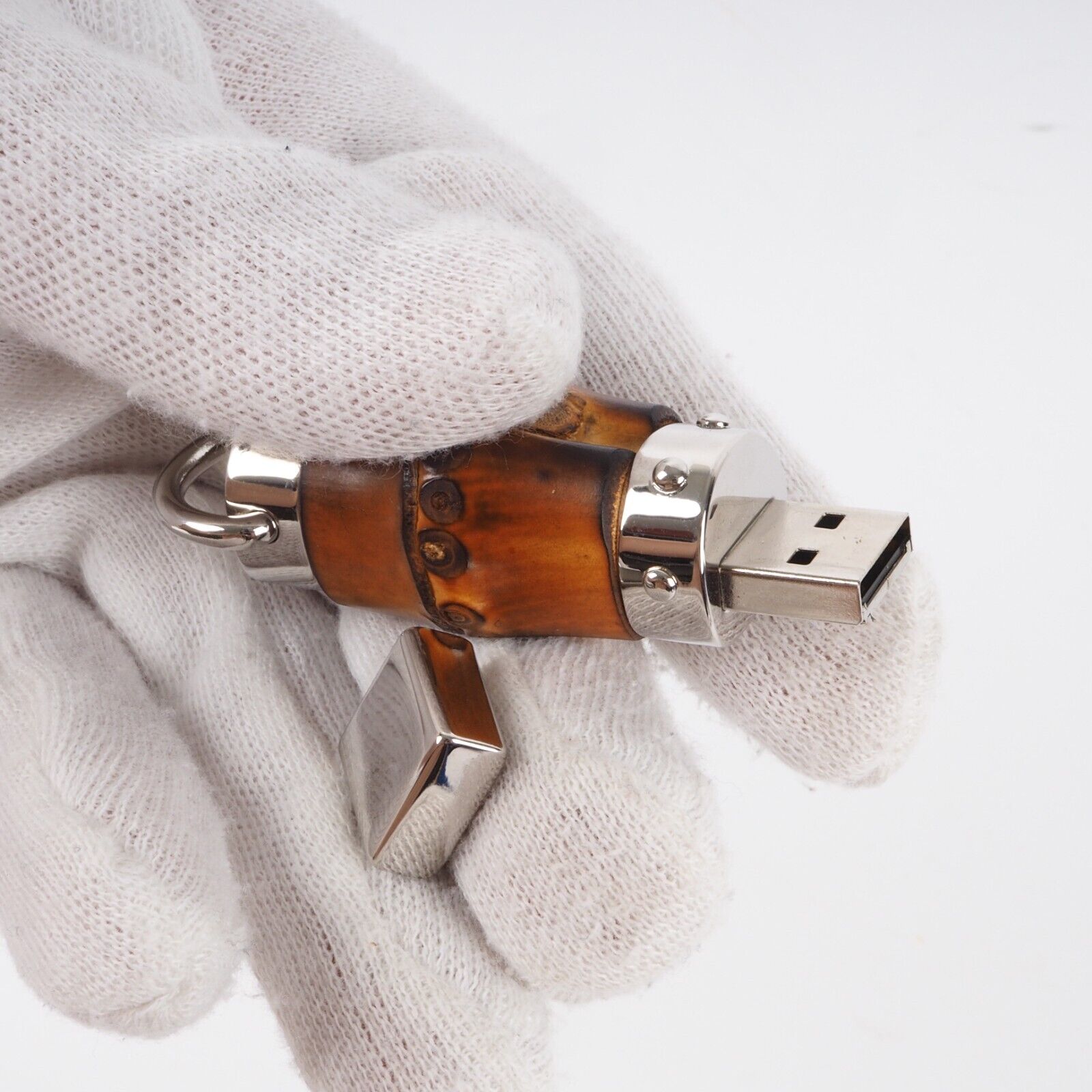 Dieses wunderschöne Bamboo USB Speichers tick von Gucci wurde in Italien gefertigt. Mit einer Kappe und Anhänger Haken. 4 GB Speicherkapazität. Neu, ohne OVP und Etikett.