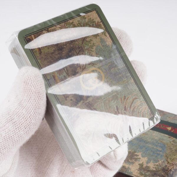 Aus den Archiven der 50er und 60er stammt eine Reihe von aufwendig gestalteten Stücken aus der Welt des Sports und der Freizeit. Die Karten wurden von dem verspielten Charakter und den kuratierten Details dieser Designs inspiriert und sind mit einem originellen Wald-Print bedruckt. Zwei Symbole aus der Reitsportvergangenheit des Hauses auf der Radura Hülle zollen den Vintage-Einflüssen des Karten Tribut. Fullset im OVP ungeöffnet und unbenutzt.