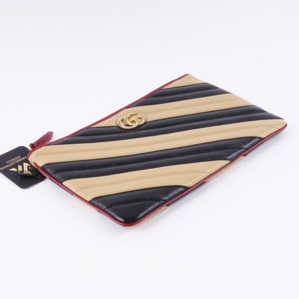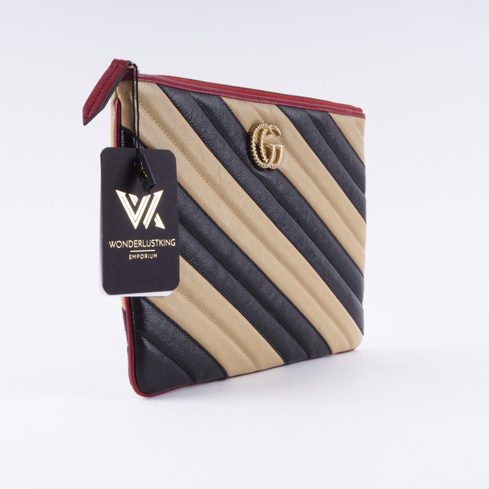 Diese auffällige Marmont Clutch ist eine Limitierte Bicolor Ausgabe aus 2020. Sie ist aus feinem geälterten Kalbsleder gefertigt. Innenfutter aus feinem Veloursleder. Absolut neuwertig, innen und außen sauber.