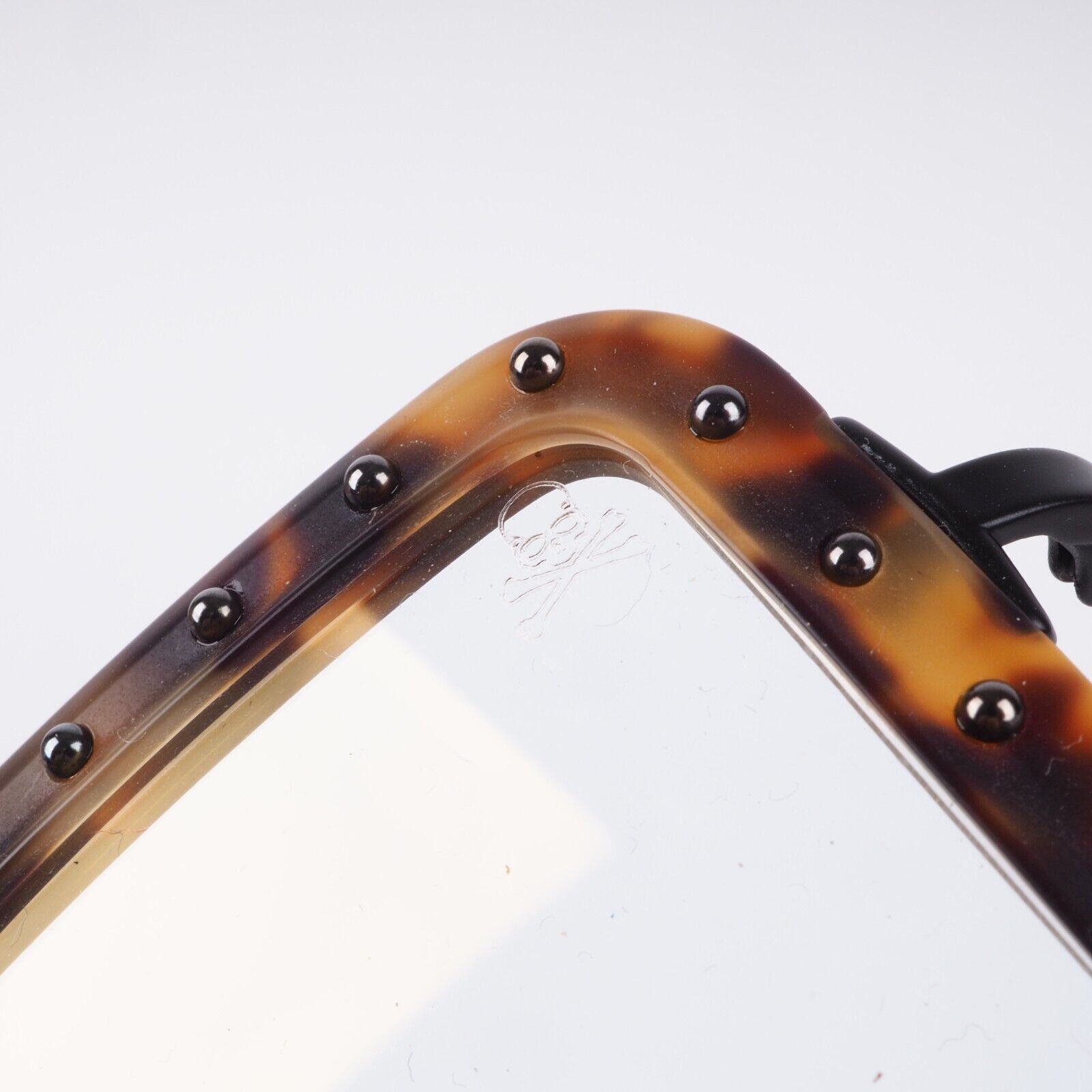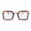 Mit dem markanten Stil dieser Brillenfassungen kann Persönlichkeit zum Ausdruck gebracht werden. Eine Hommage an die 60er Jahre mit eckigen Acetat-Fassungen, die mit Metallnieten eingefasst sind. Die Bügel sind aus Metall mit Acetat-Bügelenden.