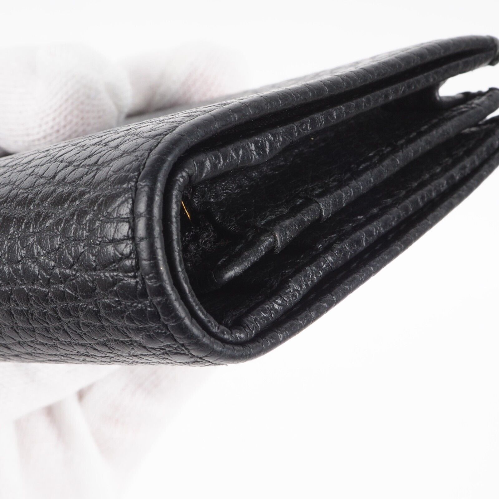 Dieses wunderschöne kleine Geldbeutel von Gucci ist ca. Kreditkartengröße mit 7 Kartenfächer, einem Scheinefach und einem Münzfach. Ziemlich neuwertig, aus Strukturleder.