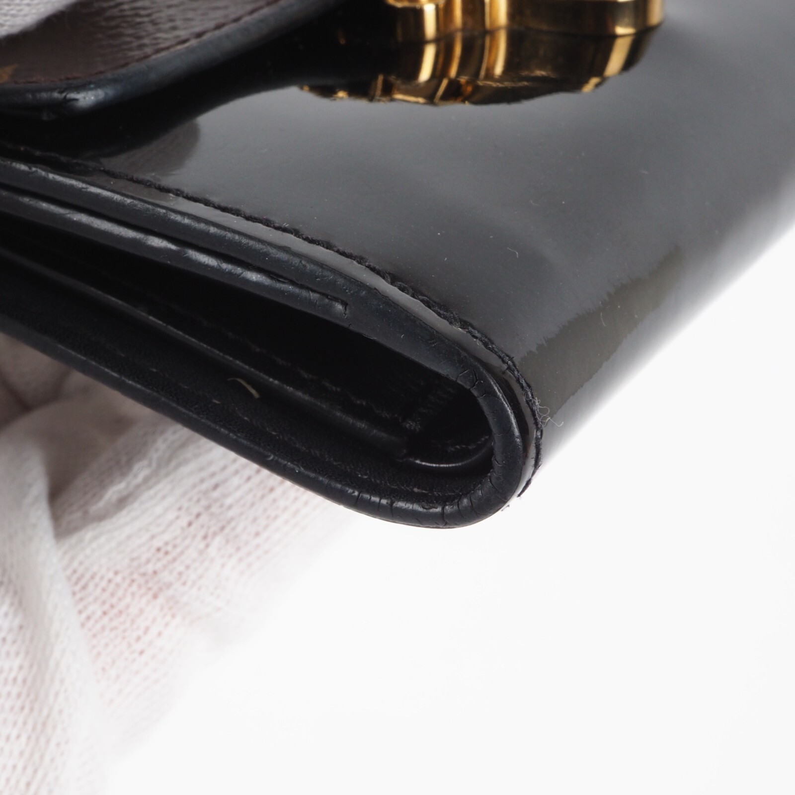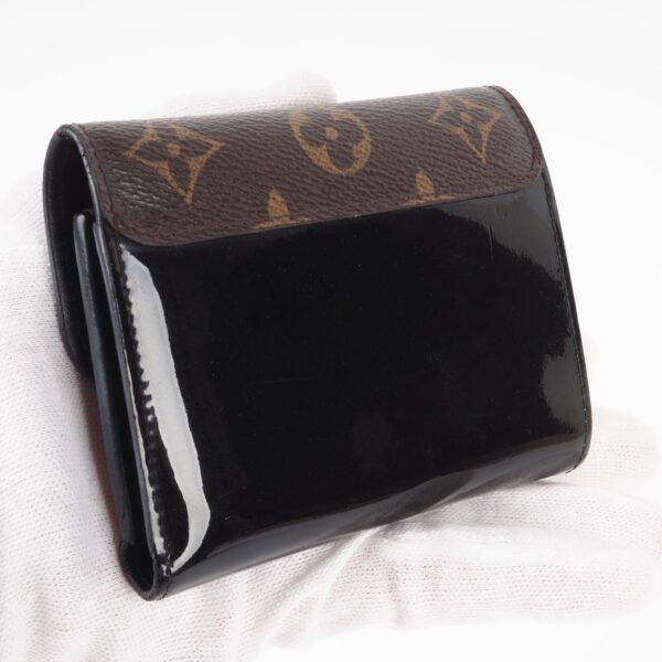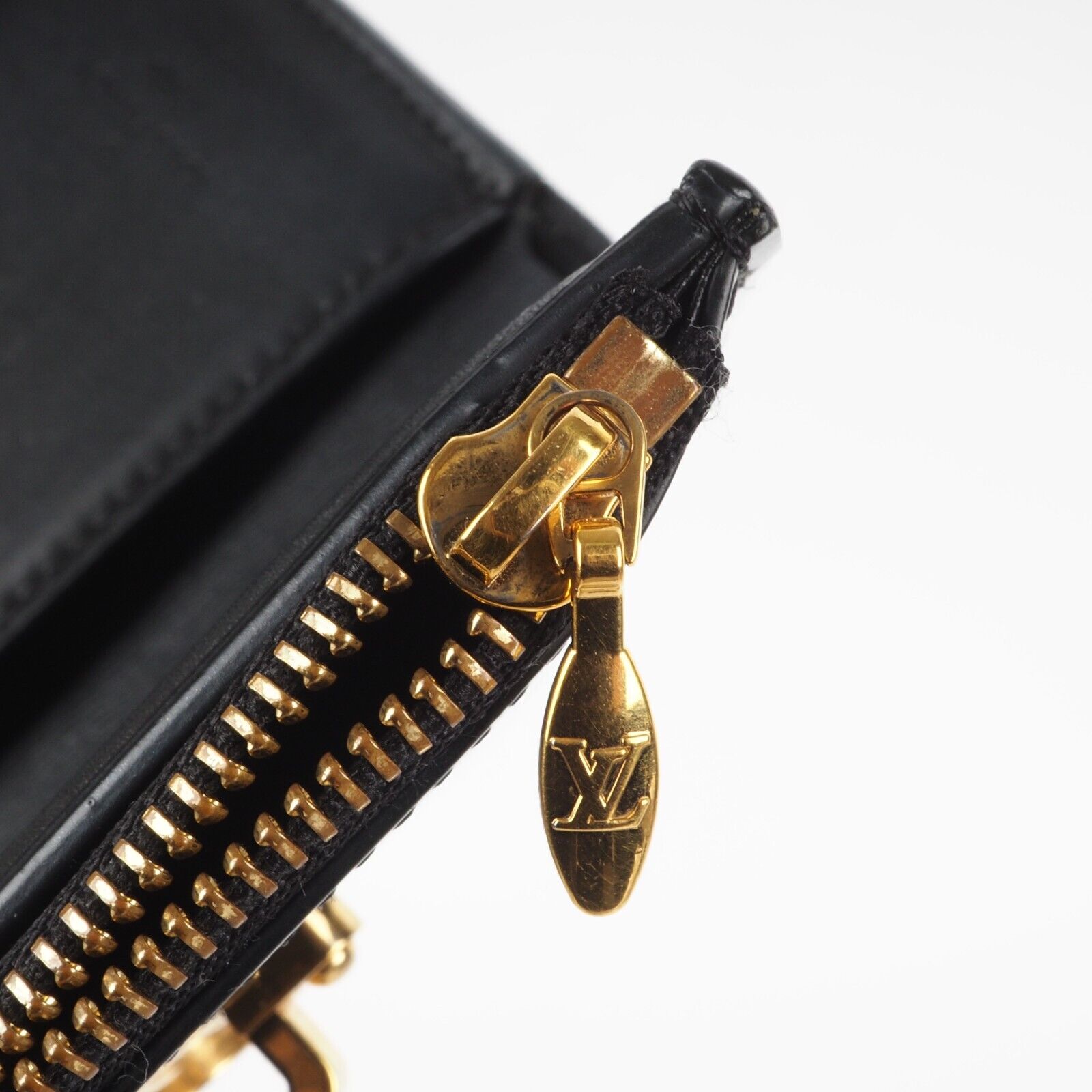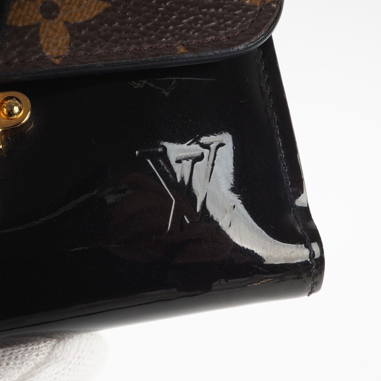 Dieses wunderschöne Cherry Wood Portemonnaie von Louis Vuitton wurde in 2019 in Frankreich gefertigt. Außen schwarzer Lackleder, innen Kalbsleder. In sehr gepflegtem Zustand.