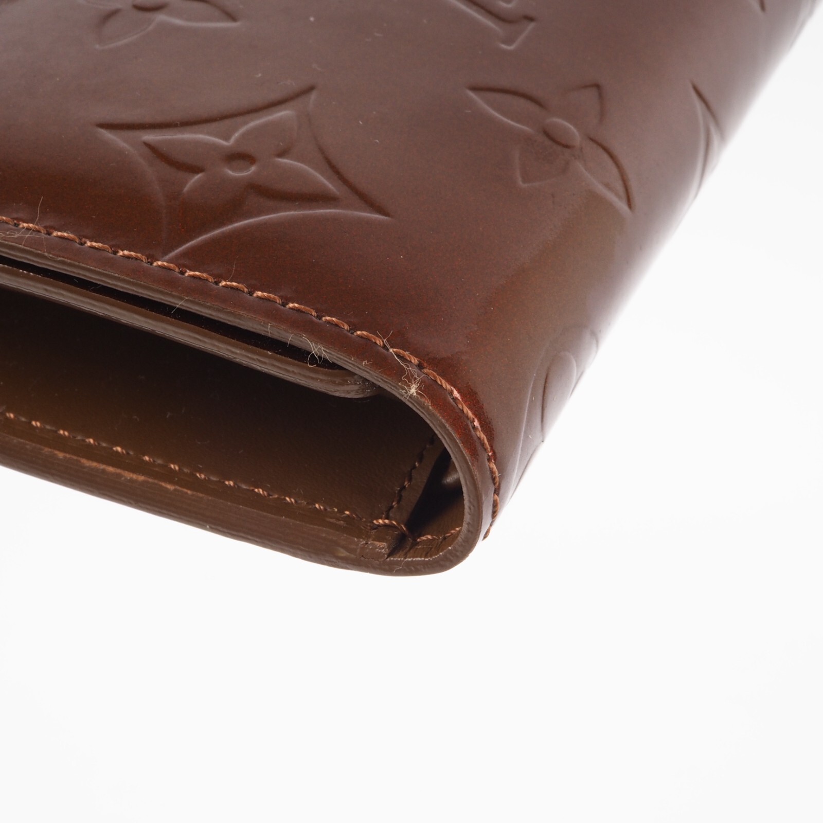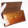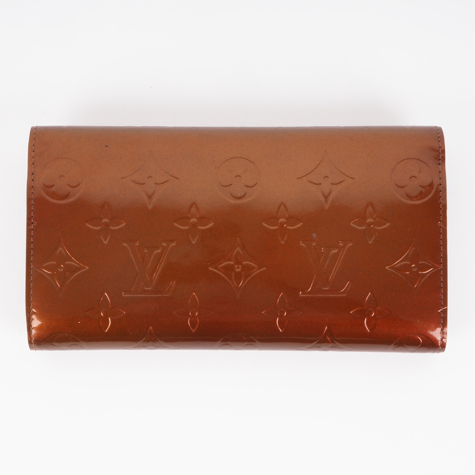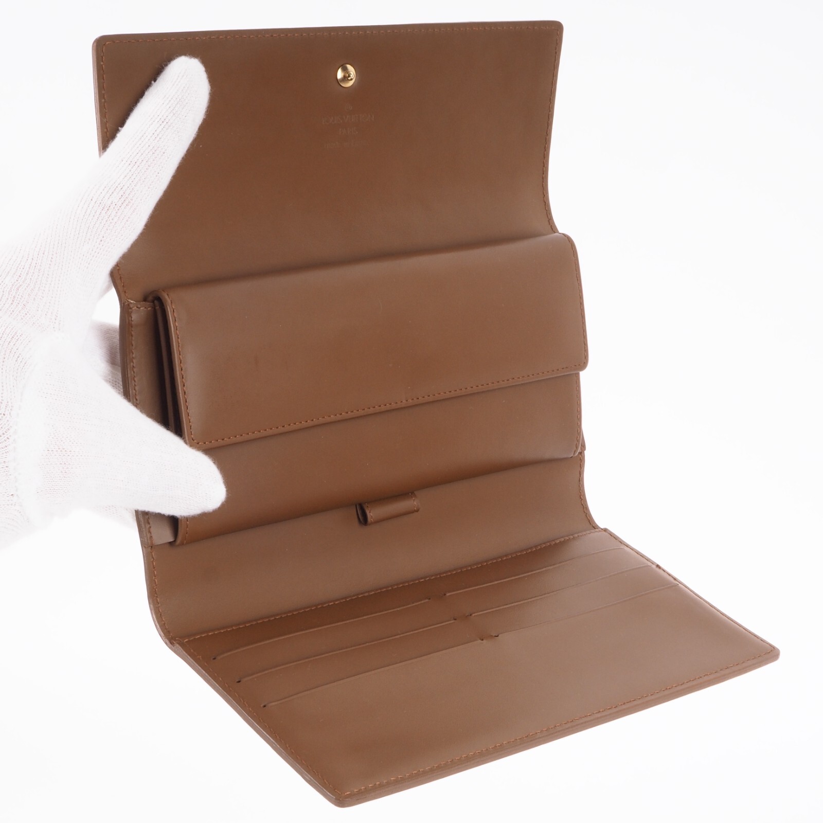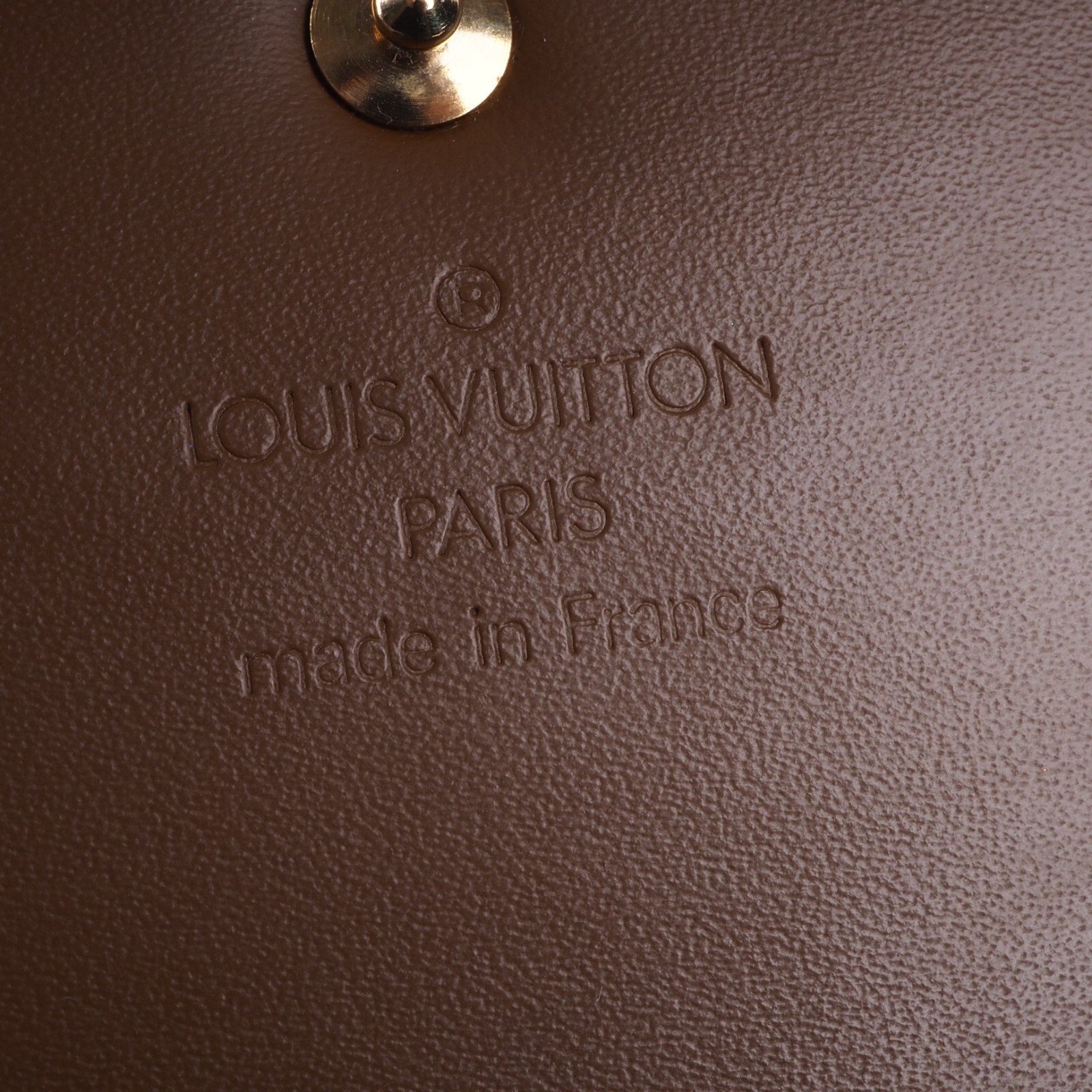 Dieses wunderschöne Sarah Portemonnaie von Louis Vuitton wurde in Frankreich aus Lackleder gefertigt. Das Geldbeutel ist in absolut neuwertigem Zustand, wurde wahrscheinlich nie benutzt. Die Farbe hat mit der Zait etwas Patina bekommen also gleichmäßig dunkler geworden. Deshalb ist unter der Flap etwas heller, siehe Bilder. Innen und außen sauber und frei von Gerüche.