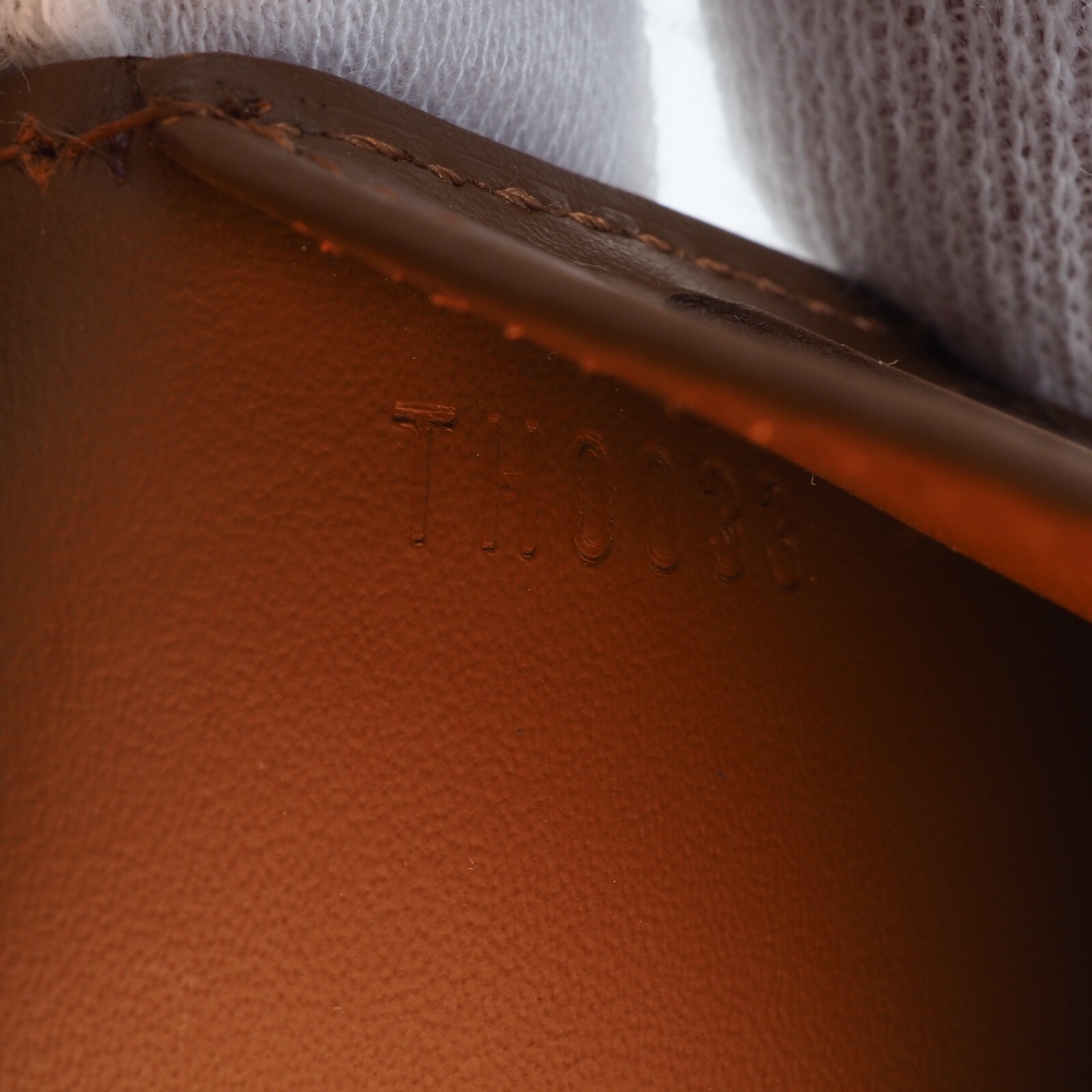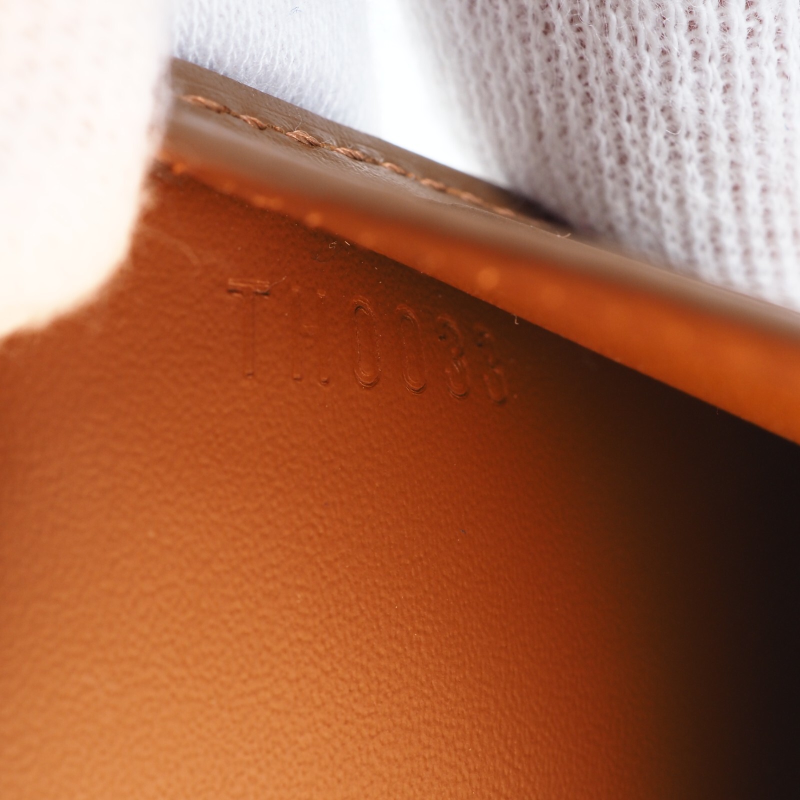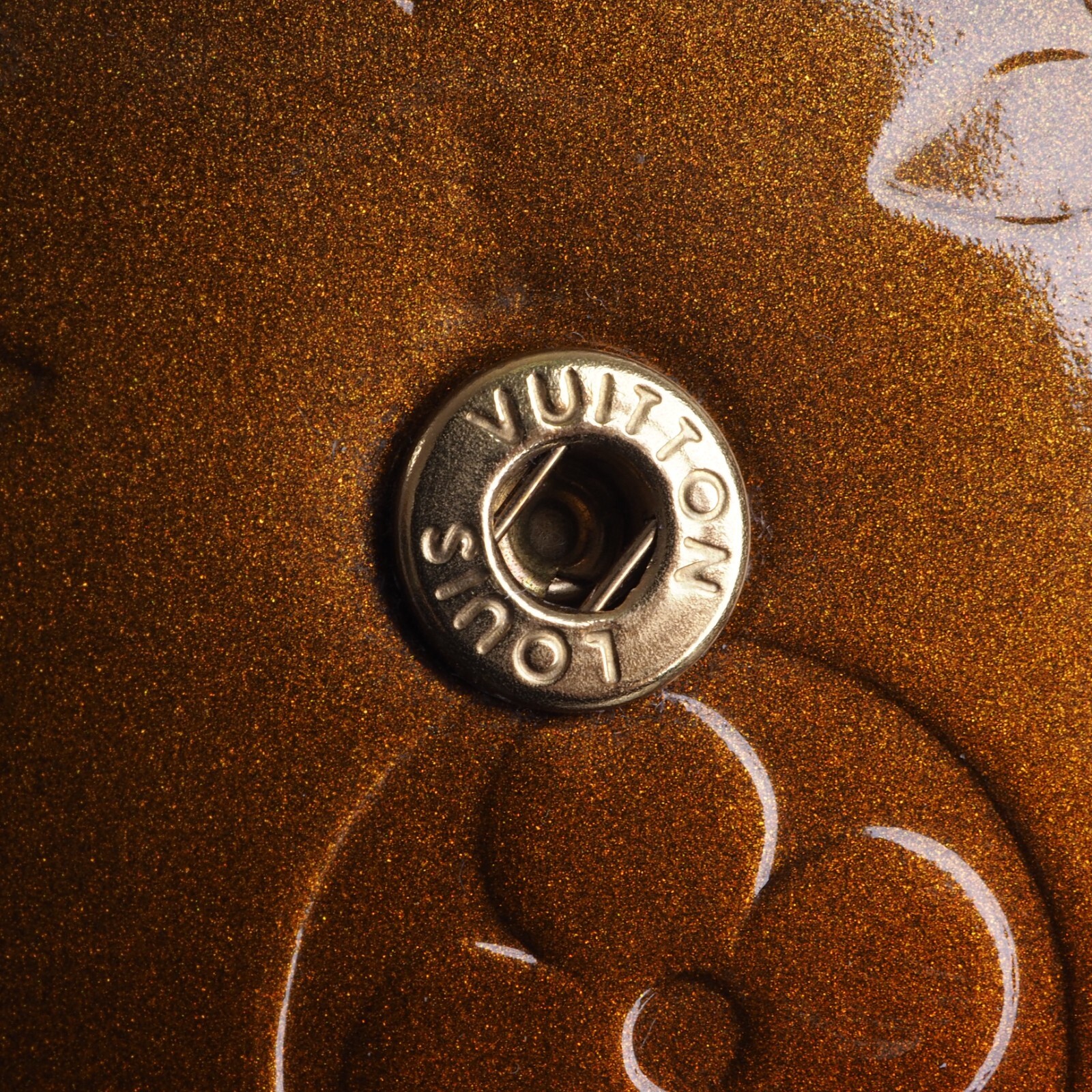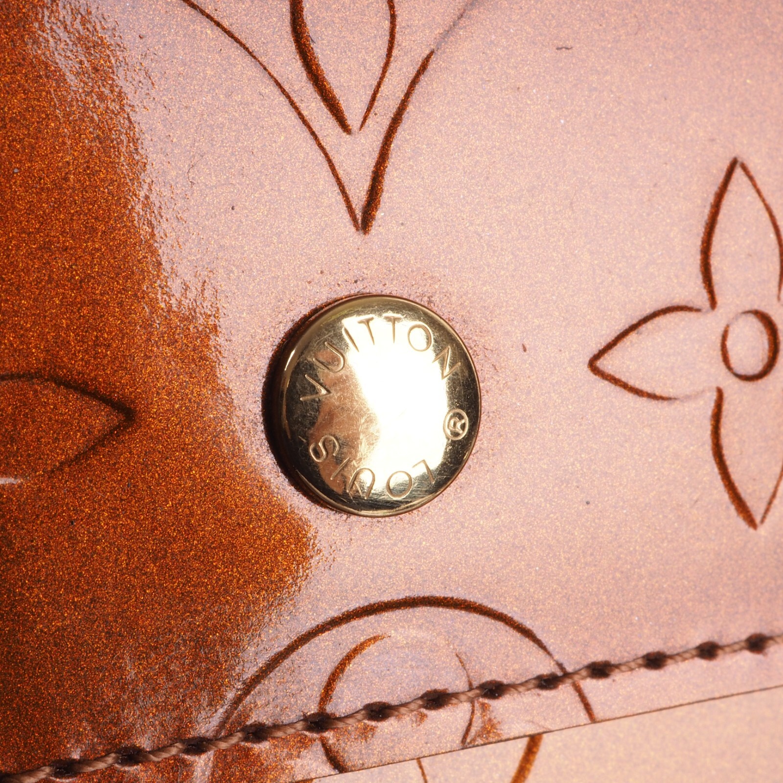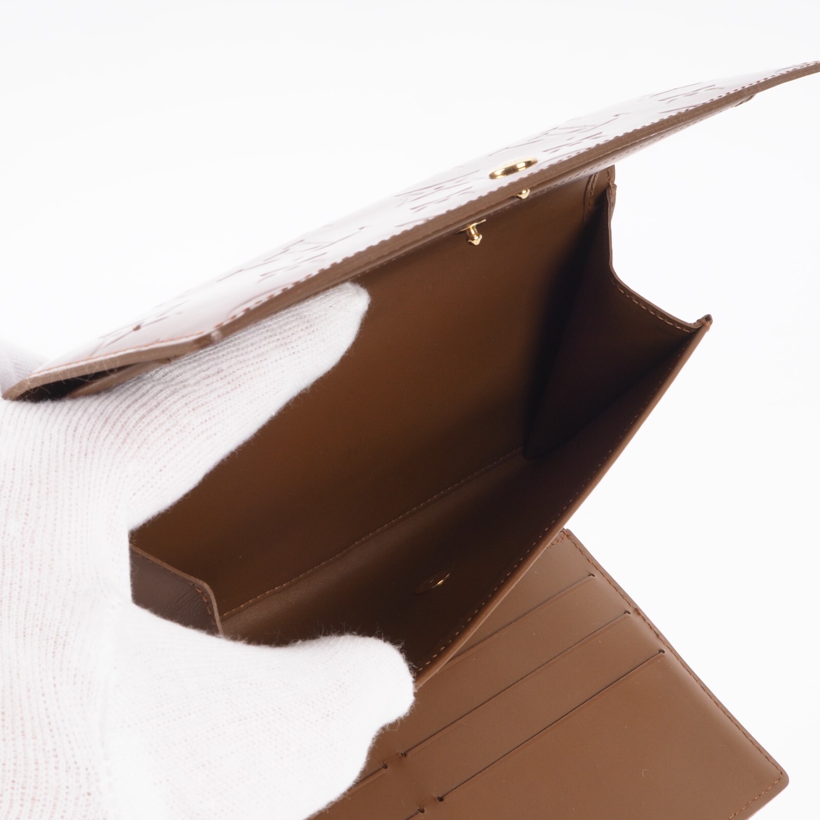 Dieses wunderschöne Sarah Portemonnaie von Louis Vuitton wurde in Frankreich aus Lackleder gefertigt. Das Geldbeutel ist in absolut neuwertigem Zustand, wurde wahrscheinlich nie benutzt. Die Farbe hat mit der Zait etwas Patina bekommen also gleichmäßig dunkler geworden. Deshalb ist unter der Flap etwas heller, siehe Bilder. Innen und außen sauber und frei von Gerüche.