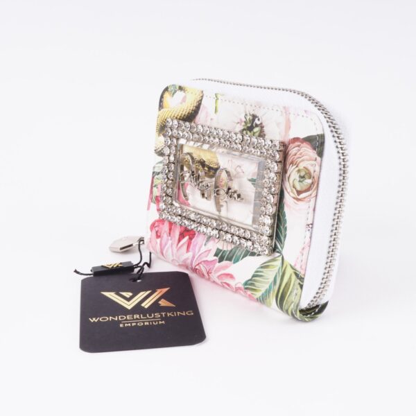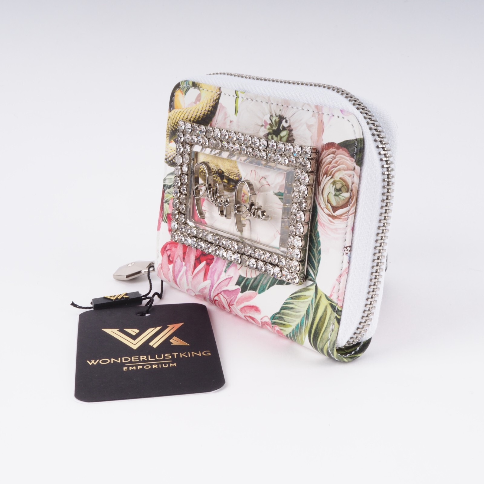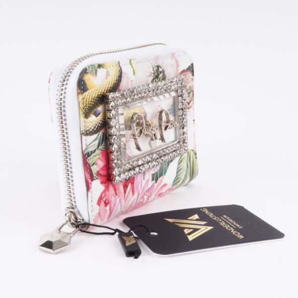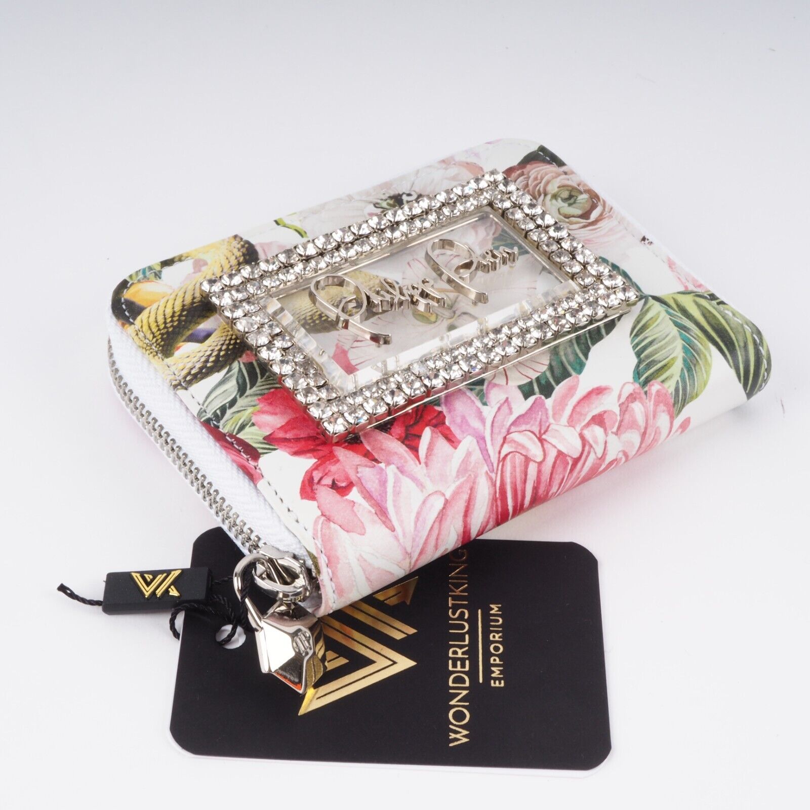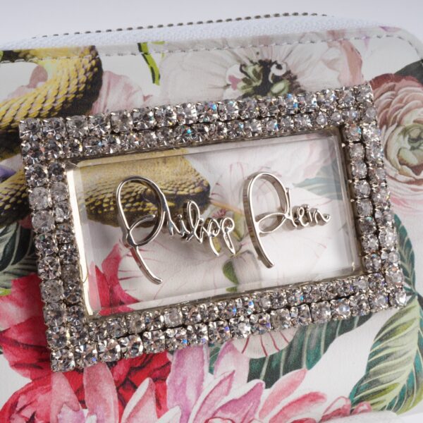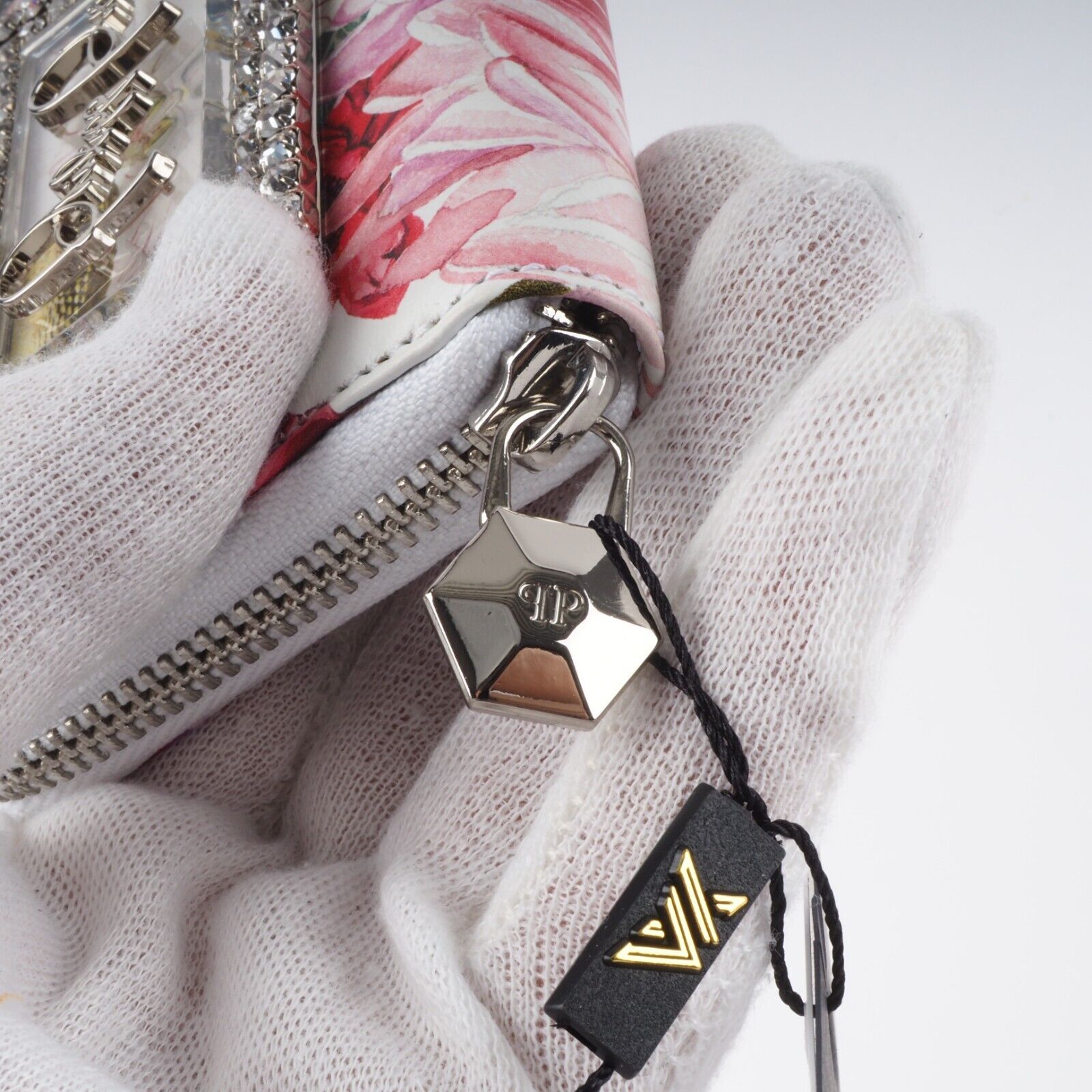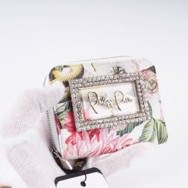 Dieses ewunderschöne seltene Limitierte Floral Print Portemonnaie von Philipp Plein wurde in Italien handgefertigt. Außen mit Kristallen bestückt. Innen 6 Kartenfächer und einen Münzfach.
