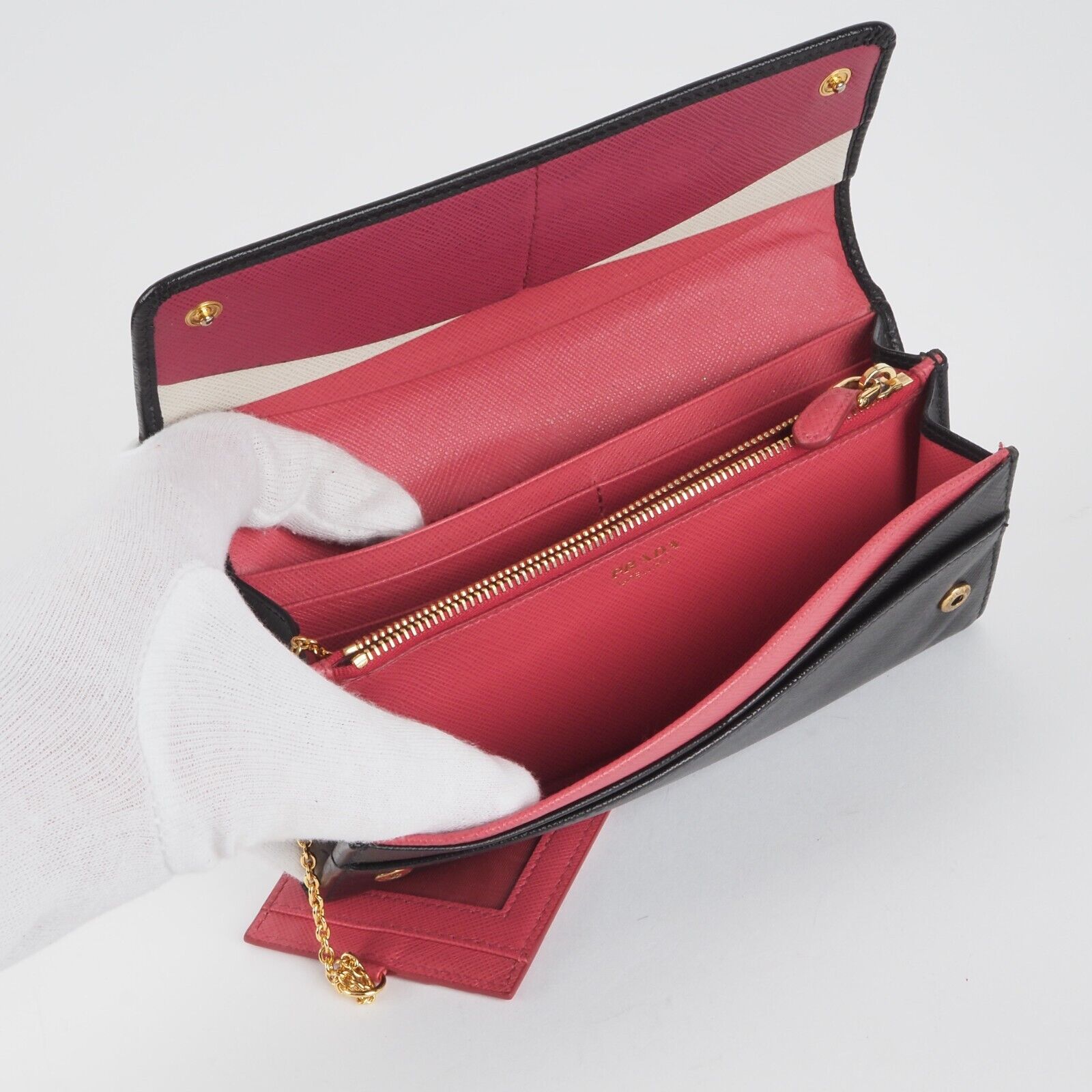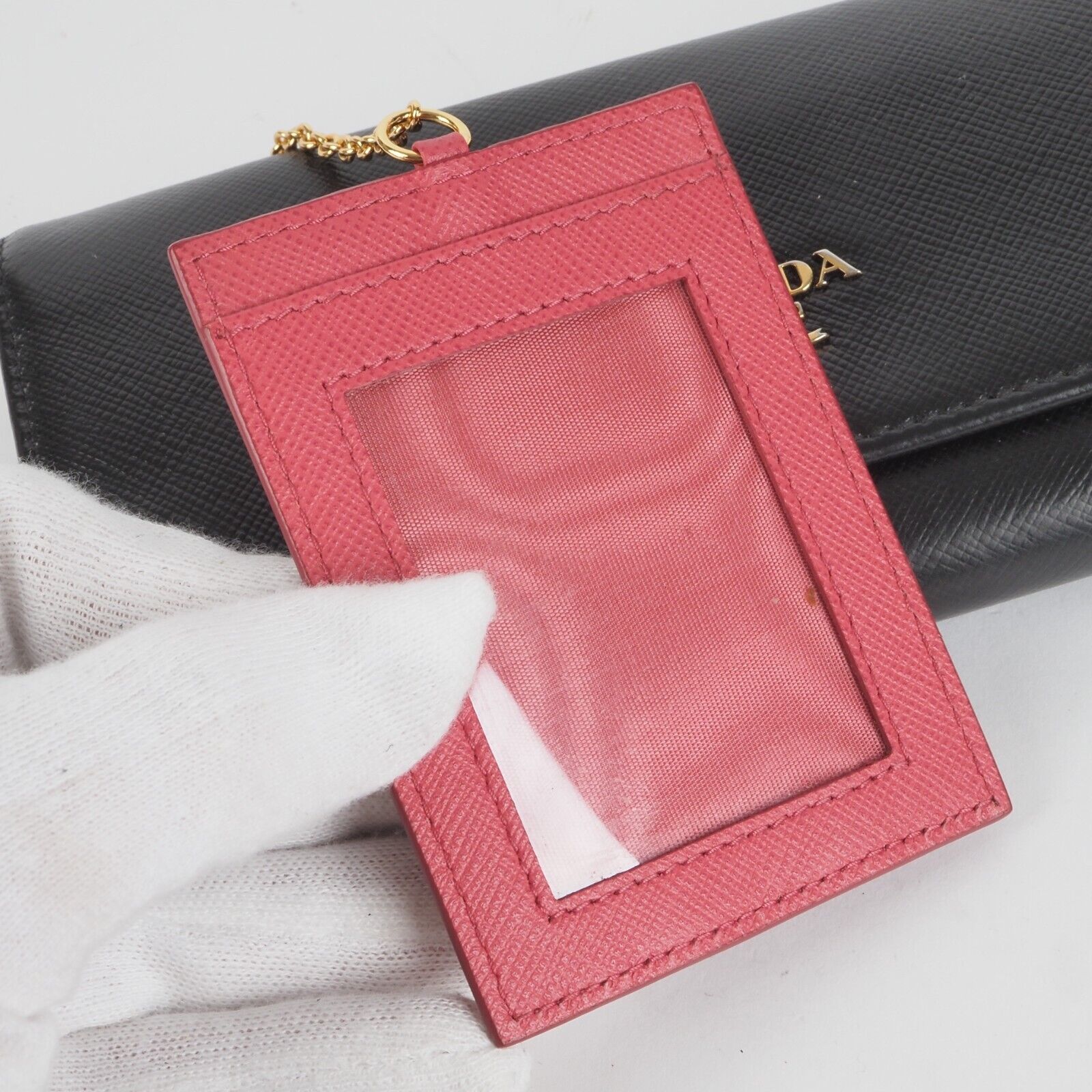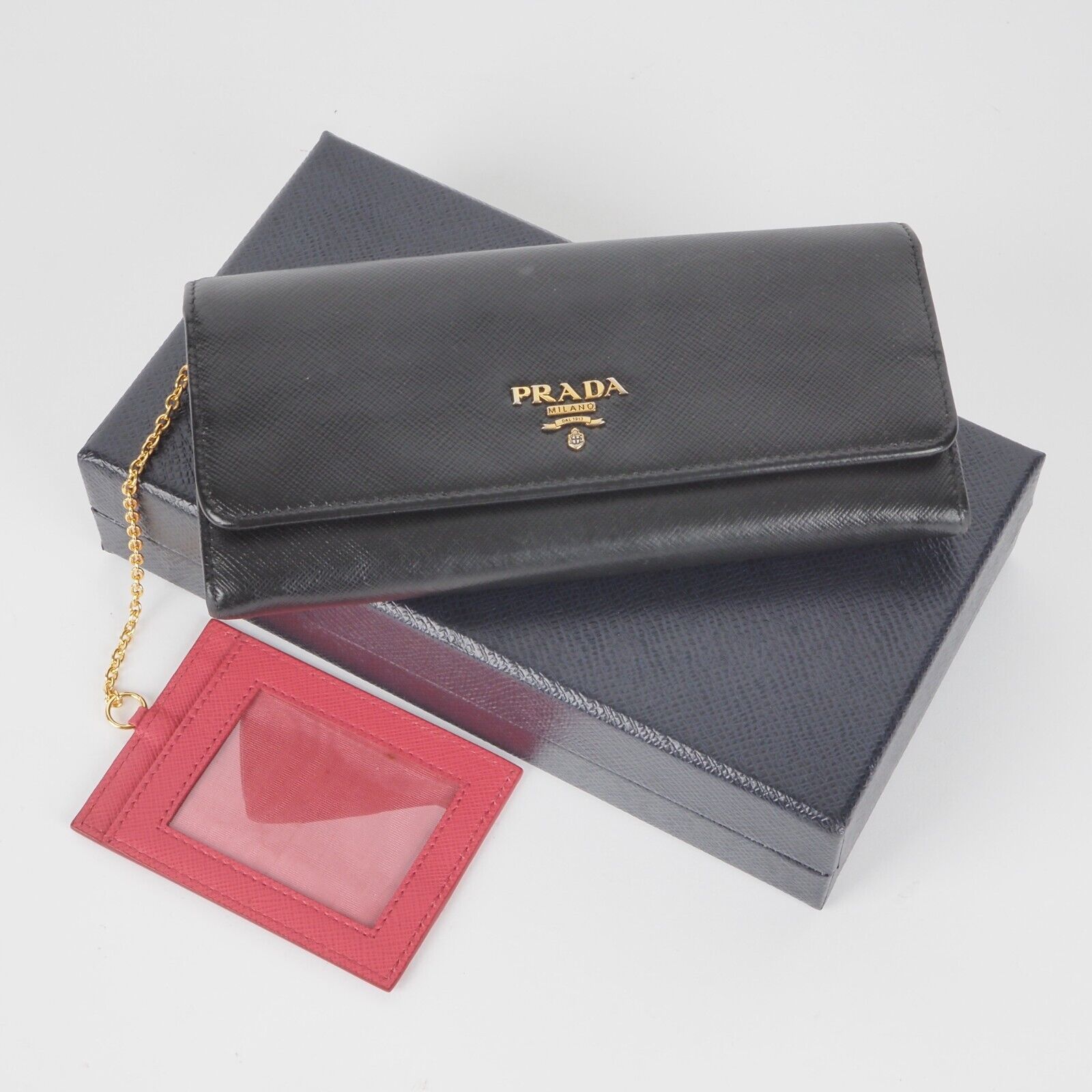 Dieses wunderschöne PRADA Portemonnaie wurde aus Saffiano Leder in Italien gefertigt. In gutem gepflegten Zustand. Innen und außen absolut sauber und frei von Gerüche. 13 Kartenfächer und Extra Kartenetui mit Kette.