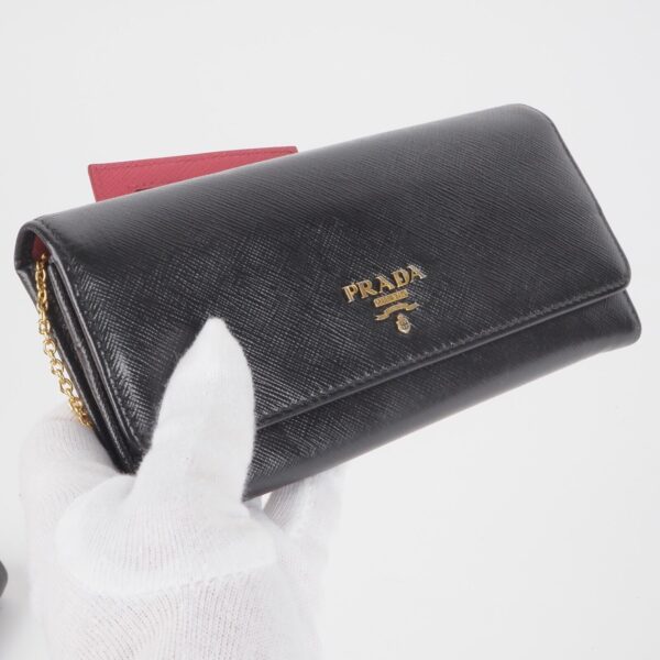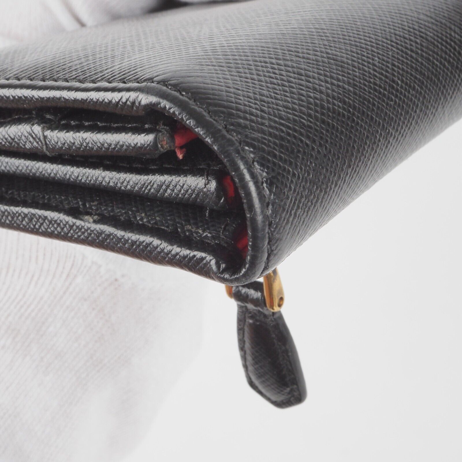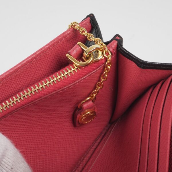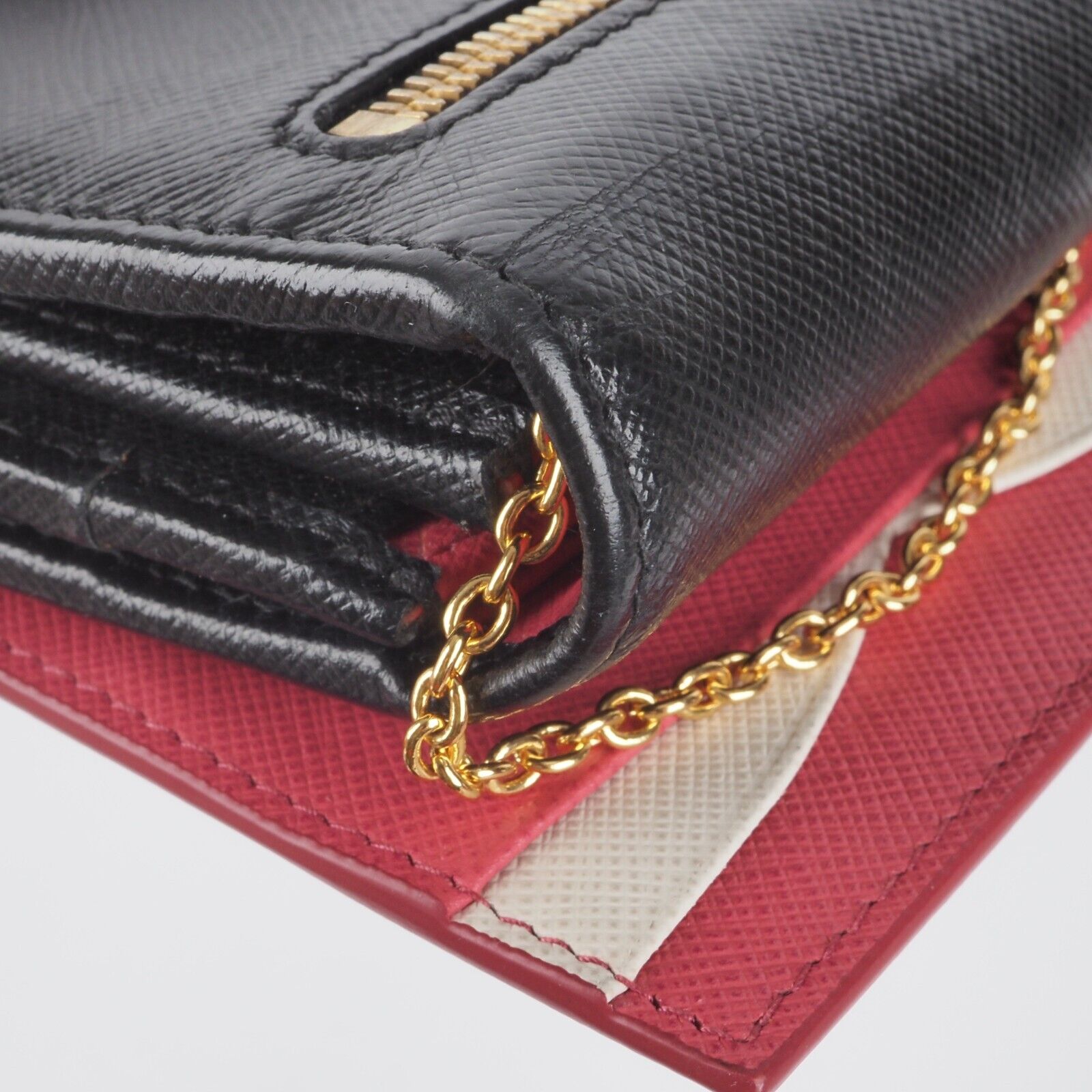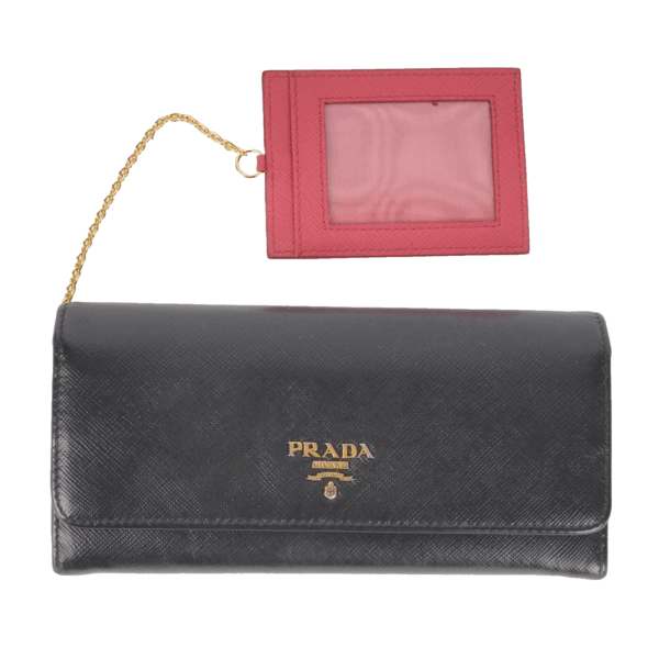 Dieses wunderschöne PRADA Portemonnaie wurde aus Saffiano Leder in Italien gefertigt. In gutem gepflegten Zustand. Innen und außen absolut sauber und frei von Gerüche. 13 Kartenfächer und Extra Kartenetui mit Kette.