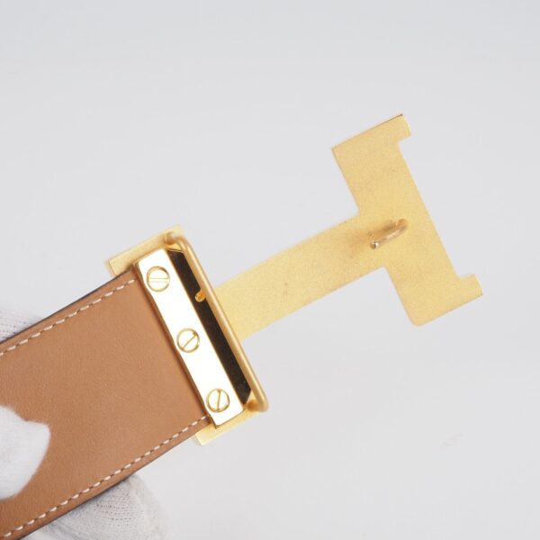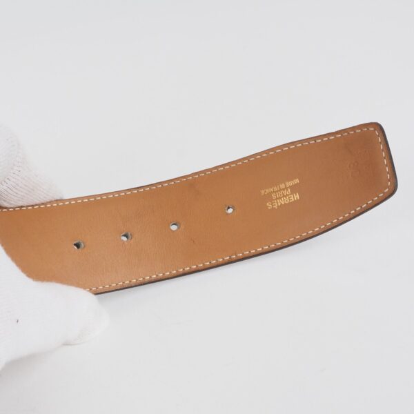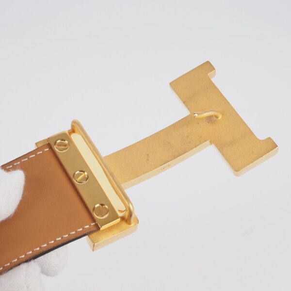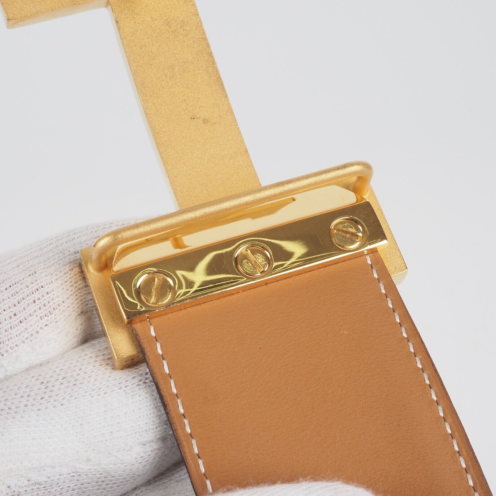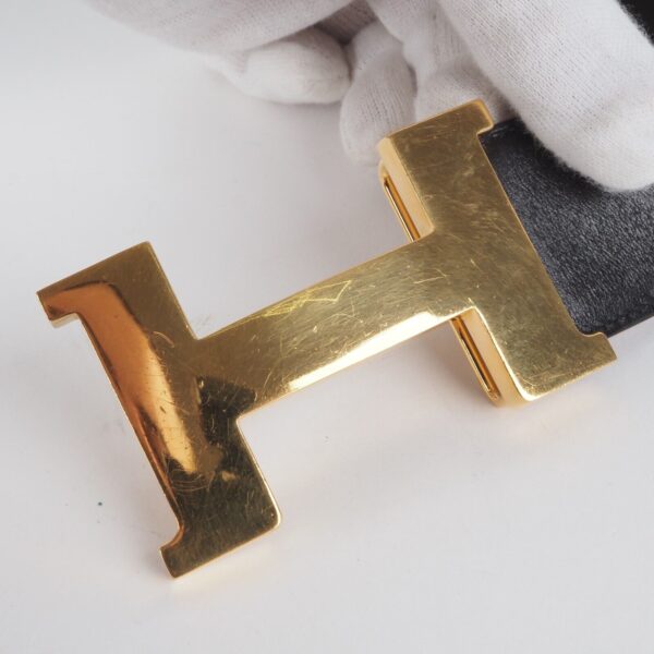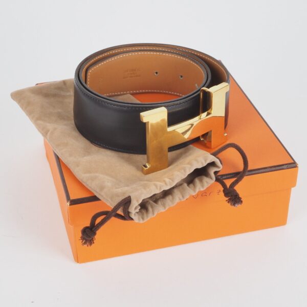 Wunderschönder breiter Gürtel von HERMÈS. Mit Lederriemen schwarz / goldbraun beidseitig aus Boxcalf Kallbsleder – nicht wendbar. Mit Constance H-Schnalle glänzend. In gutem gepflegtem Zustand mit leichten Gebrauchspuren und haarfeinen Kratzer an der Schnalle. Ein Extra Loch wurde gestochen, ist es aber nicht auffällig da es original nur 3 Löcher gab,