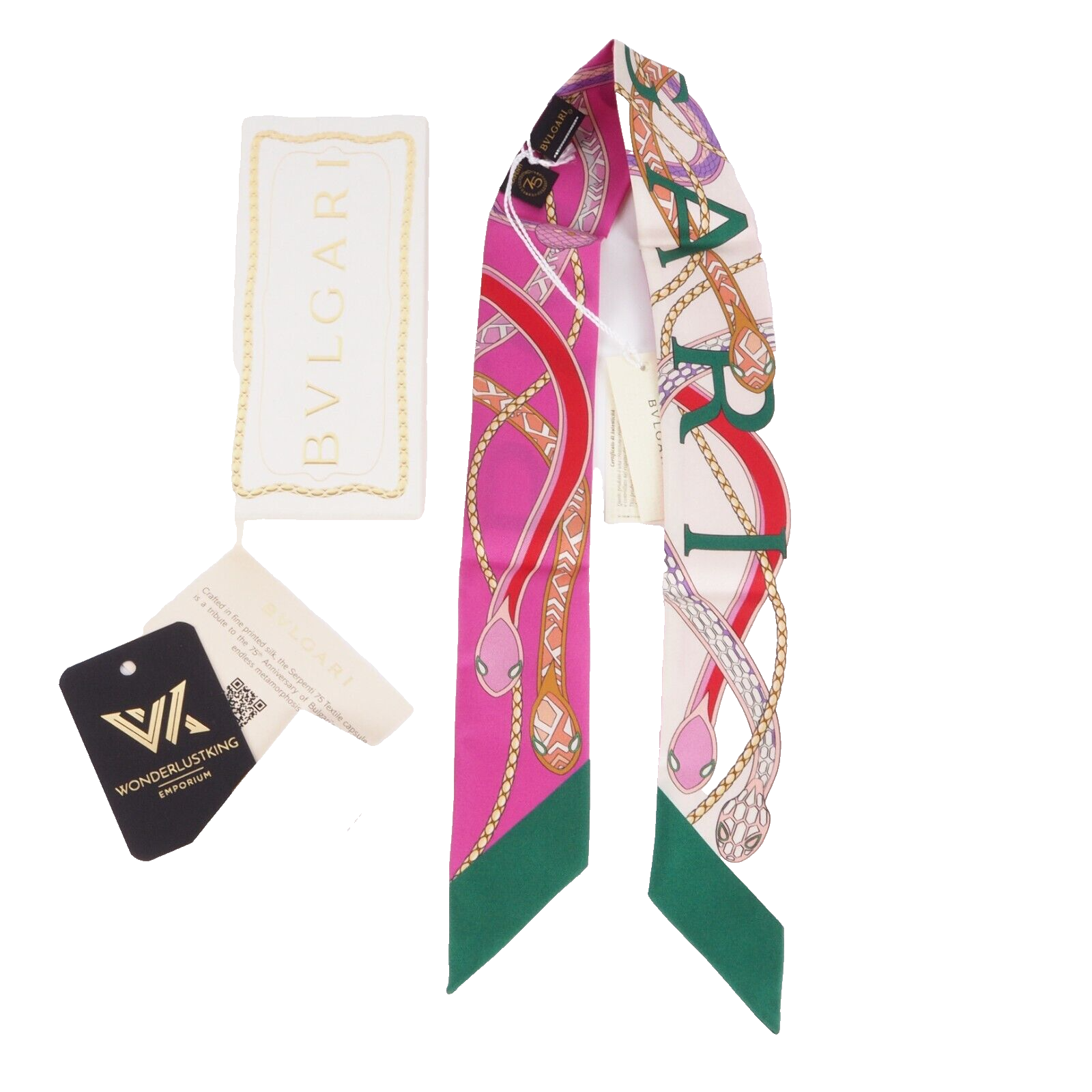 Dieses wunderschöne Halstuch von Bulgari wurde in Italien aus feiner Seidentwill handgefertigt. 75th Anniversary Edition.