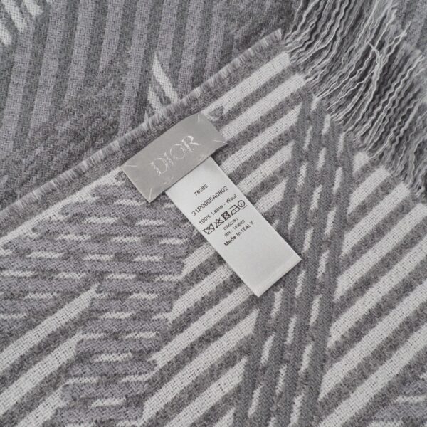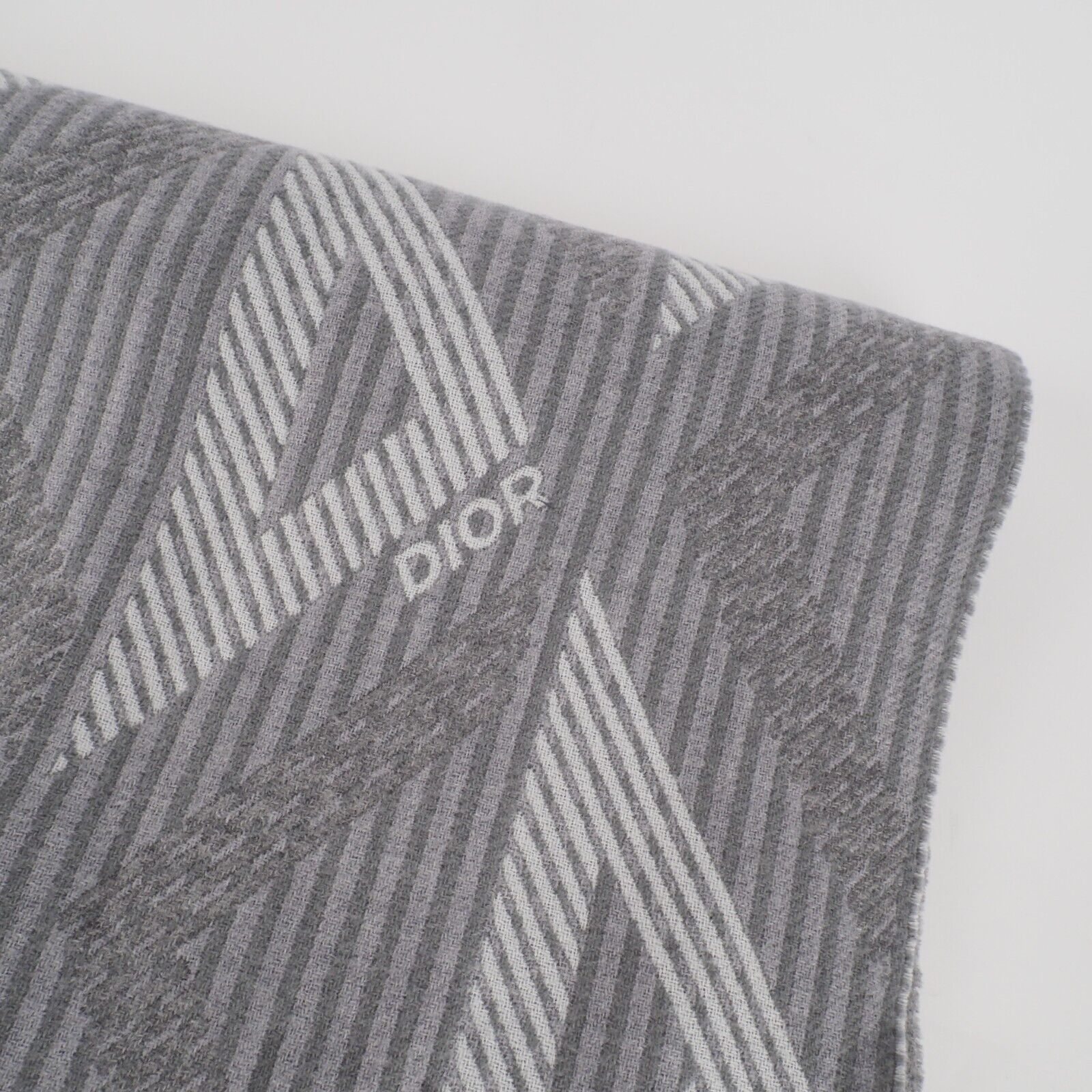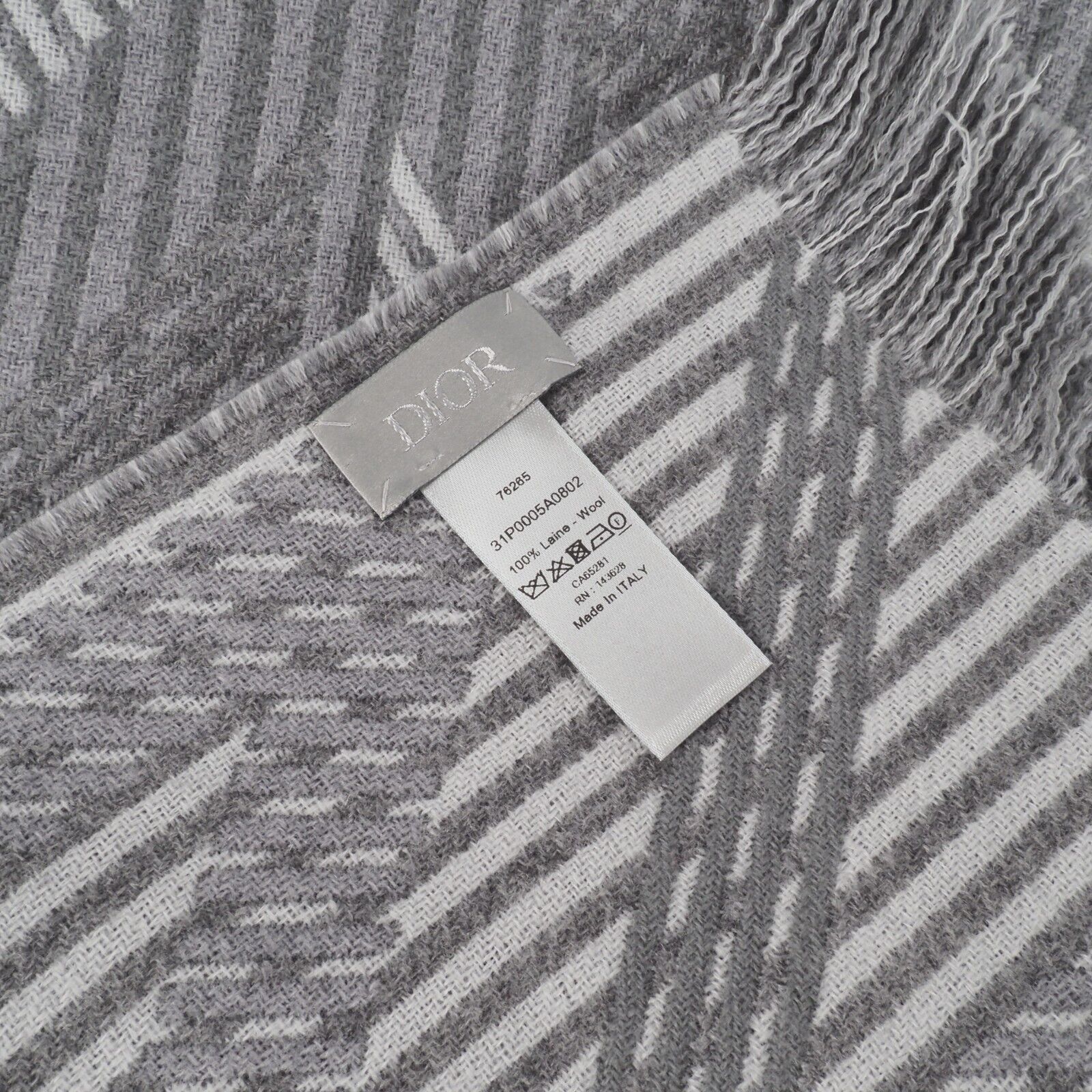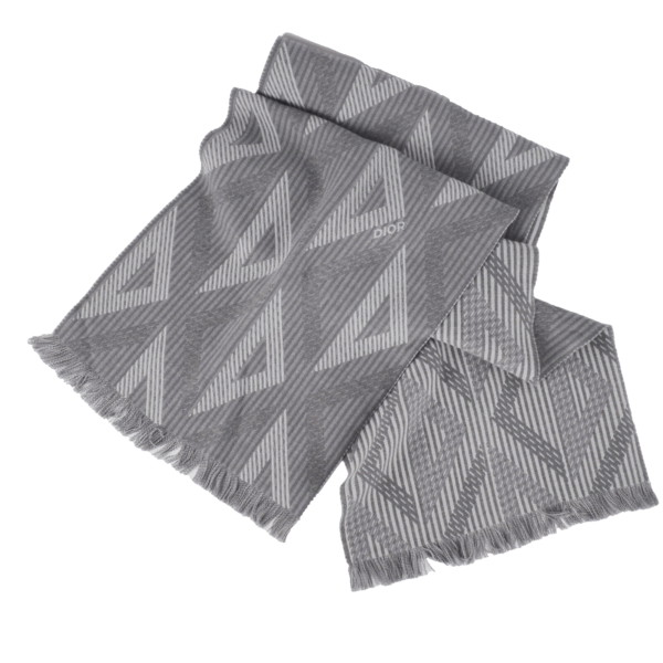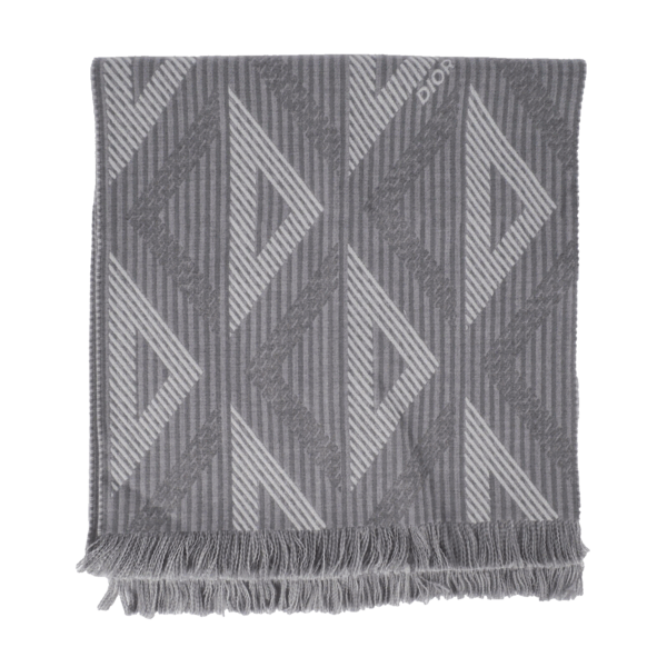 Dieser Schal präsentiert sich mit dem CD Diamond Motiv. In Anlehnung an frühere Kreationen der Maison ist das Design aus grauem Wolljacquard mit Fransen verziert. Tragen Sie den Schal klassisch um den Hals oder einfach als Schultertuch.. Neu. Größe 195x45 cm