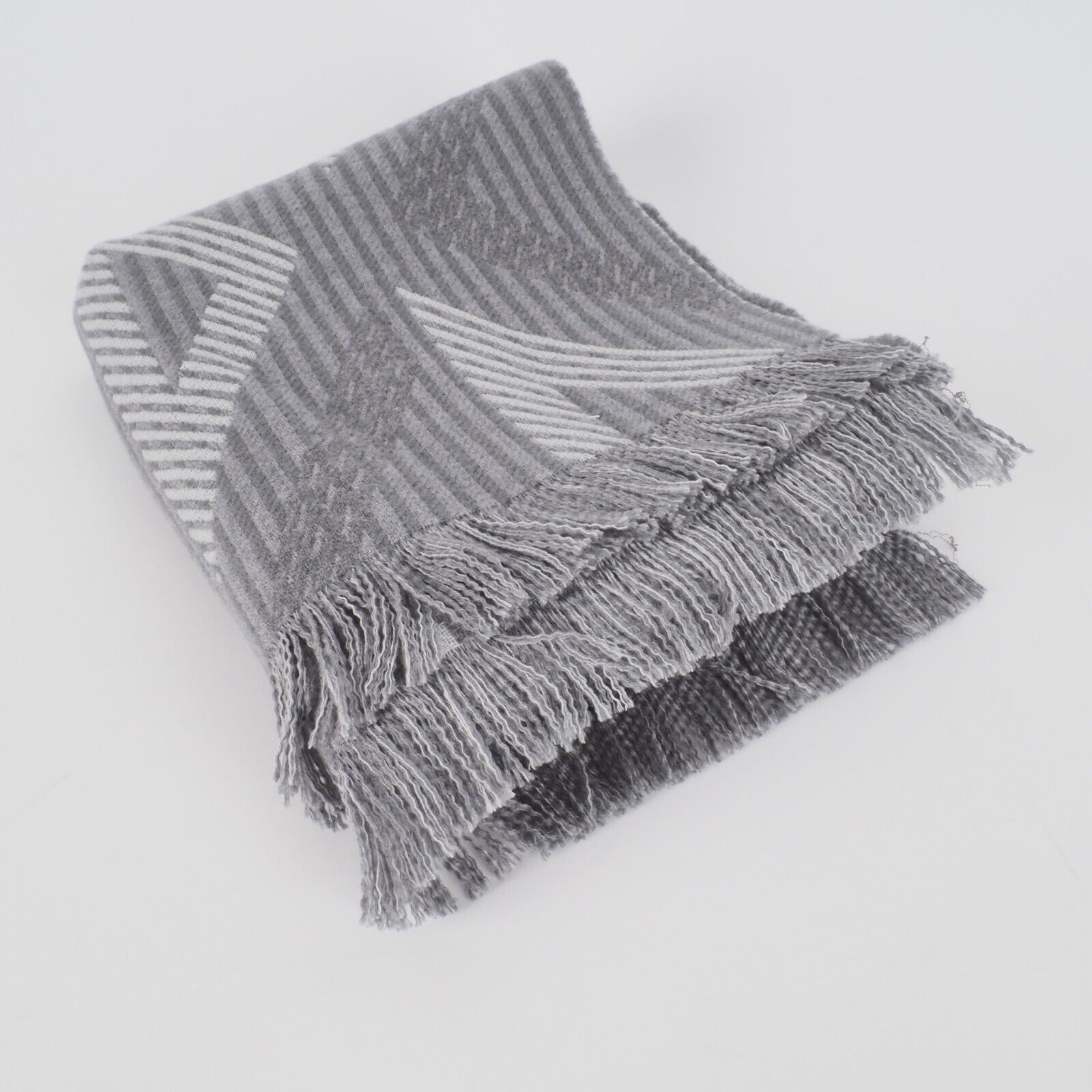 Dieser Schal präsentiert sich mit dem CD Diamond Motiv. In Anlehnung an frühere Kreationen der Maison ist das Design aus grauem Wolljacquard mit Fransen verziert. Tragen Sie den Schal klassisch um den Hals oder einfach als Schultertuch.. Neu. Größe 195×45 cm