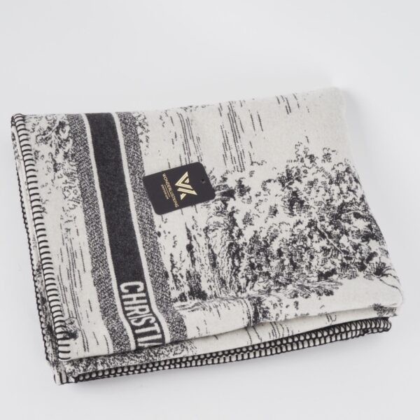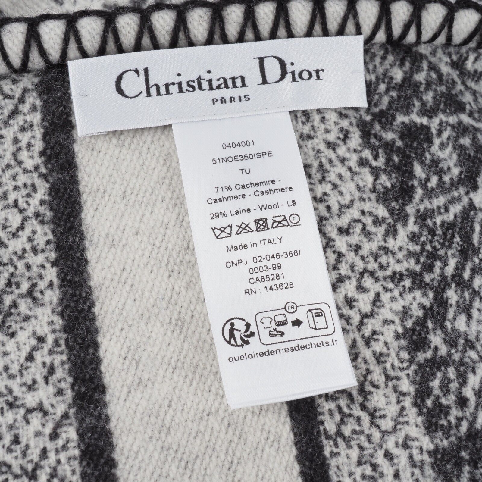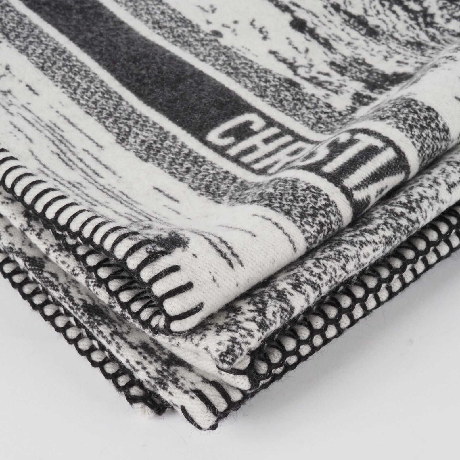 Schwarze und cremefarbene Kaschmirmischung Christian Dior Toile de Jouy Scotland-Decke mit durchgehendem schottischem Folkloremotiv, Kanten mit Zierstichen und Markenetikett an der Rückseite. Hergestellt in Italien 71% Kaschmir 29% reine Schnurwolle. Neu.