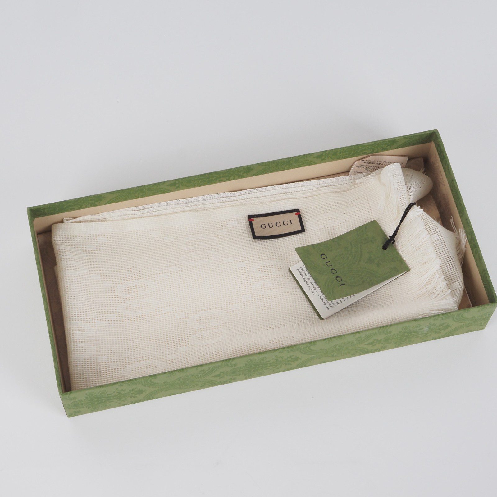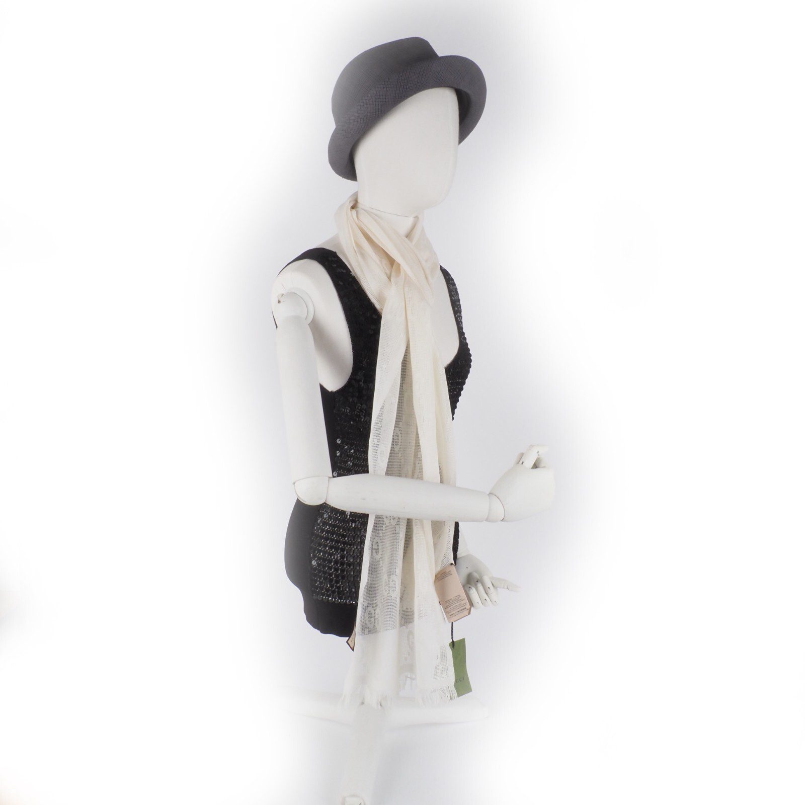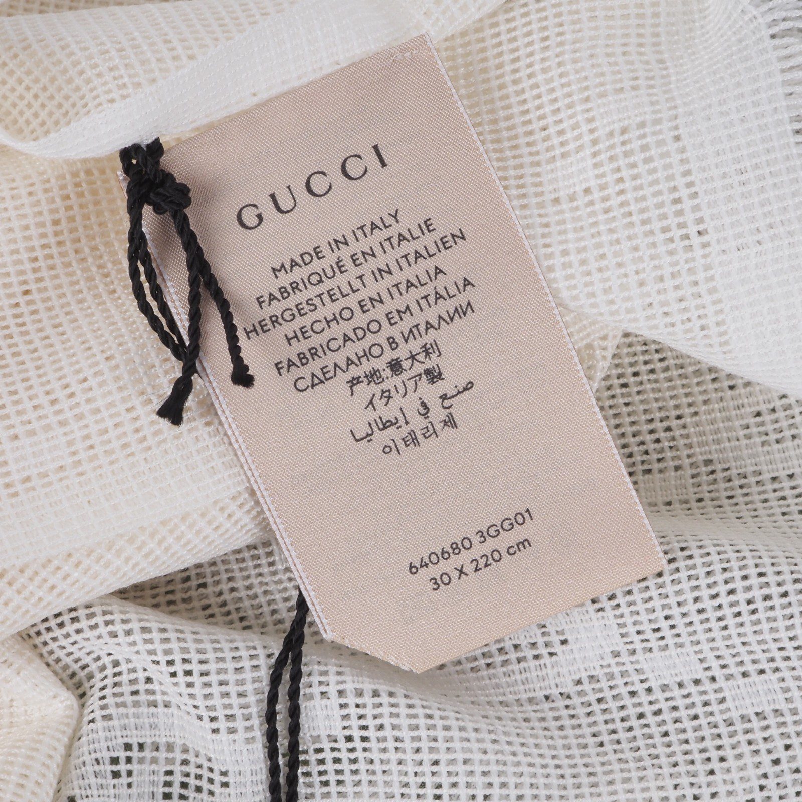 Dieses wunderschöne seltene Ecru Schal von Gucci wurde in Italien aus Seide und Wolle gefertigt. Neu im OVP Mit Etikett. 30 x 220 cm.