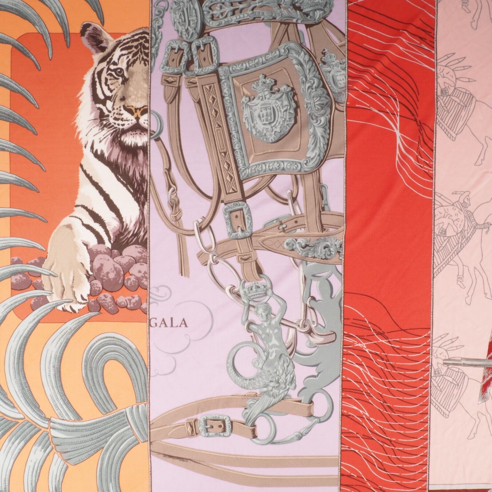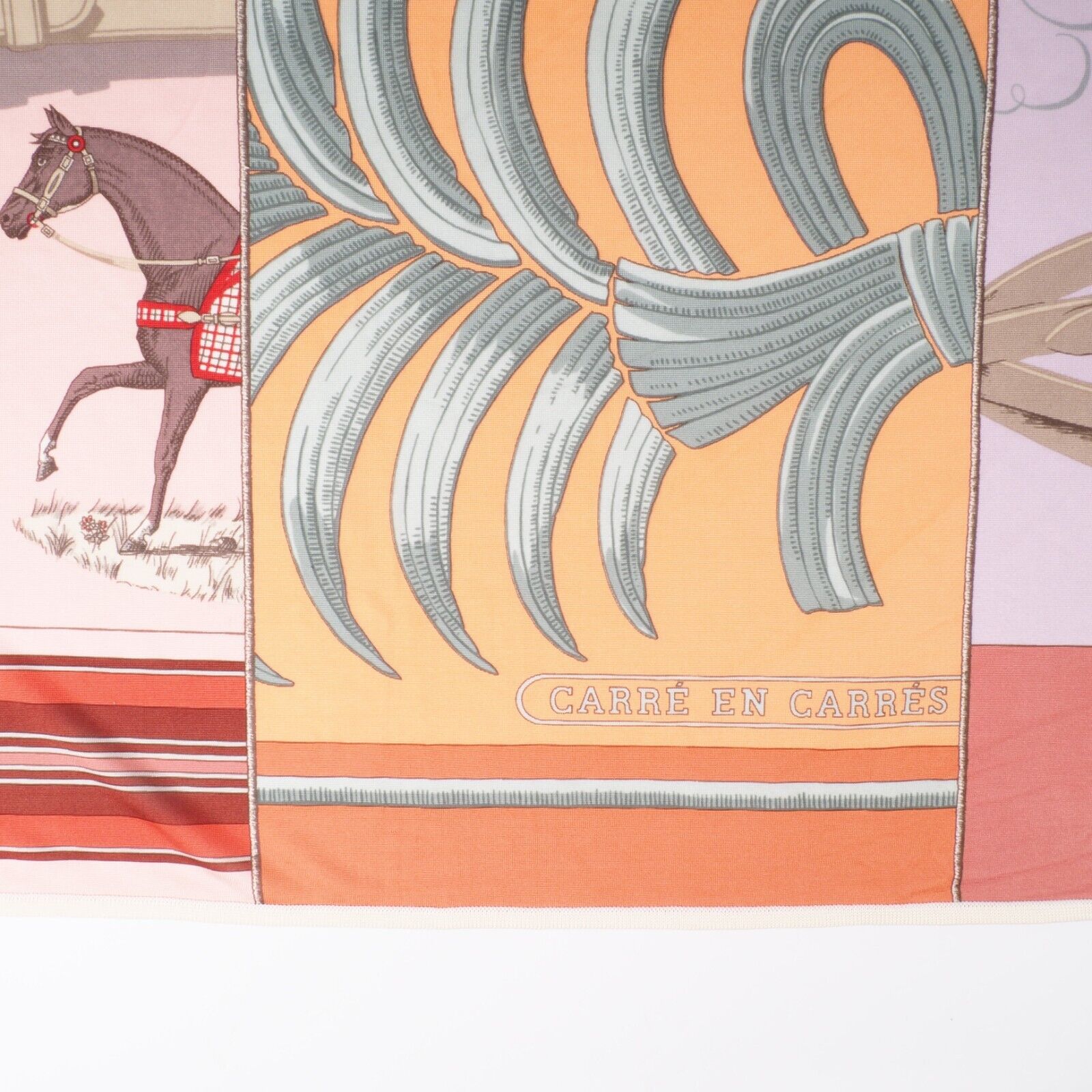Diese wunderschöne Seiden Carré „Carré en Carrés“ von Hermes wurde aus 100% reine Seide in Frankreich handgefertigt. Seltenes Modell, ein Patchwork von 5 Carrés. Größe: 90×90.