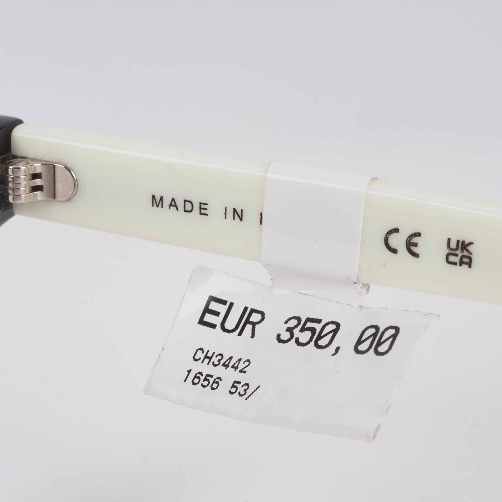 Diese stylische Brillenfassung von CHANEL ist unbenutzt, Ausstellungstück. Leichte Lagerungspuren sind möglich. Breite Rahmen für größeren Köpfe.Demo-Gläser NEU – Ohne Etui.