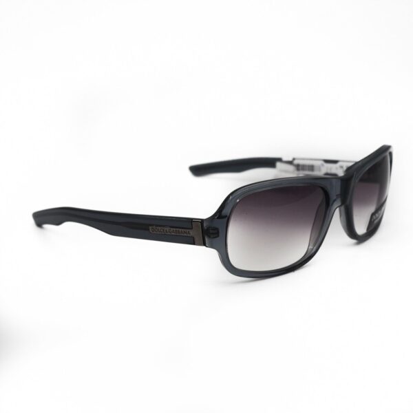 Stylische Designerbrille im Blau – Schwarz transparente Farbkombination und helle schwarz – fading Gläser. Metalleinlage mit Dolce Gabbana Schriftzug am Bügel. Als neu ist selten zu finden. Mit Originaletui, Box und Tuch.
