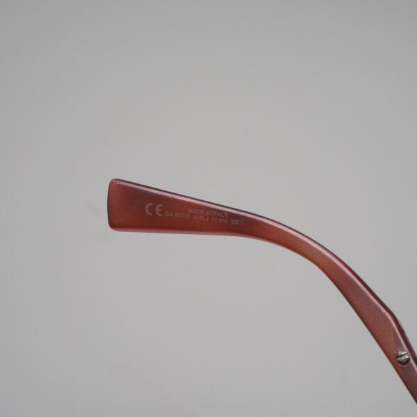 Seltene Sonnenbrille von Giorgio Armani mit Halbtransparentem Rahmen im Bordeauxfarbe. Kommt mit Etui ( Kratzer am Etui möglich ) und Tuch.