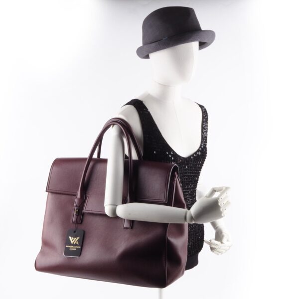 Diese stylische große Wesper Tote bag von BALLY wurde in Italien aus feinem Leder handgefertigt. Die Tasche ist wirklich riesen Groß mit 5 große und mehrere kleine Innenfächer. Perfekt als Business-Tasche geeignet, A4 Dokumentenmappen oder Notebooks passen auch rein. Mit die Tasche kann beidseitig benutzt werden, Eine Seite des Flaps schließt mit Magnetverschluss, die andere Seite mit Druckknöpfe. Da die Tasche beidseitig zu önnen ist, kann man den Flap auch komplett abnehmen und auch als eine offene Tasche benutzen. Die Tasche ist in sehr gepflegtem Zustand aber mit leichten Kratzer an der Leder-Oberfläche und leichten Abschürfungen an den unteren Ecken. Innen und außen sauber und frei von Gerüche. Eine wirklich seltene und edle Tasche die auch an Herren sehr gut steht.