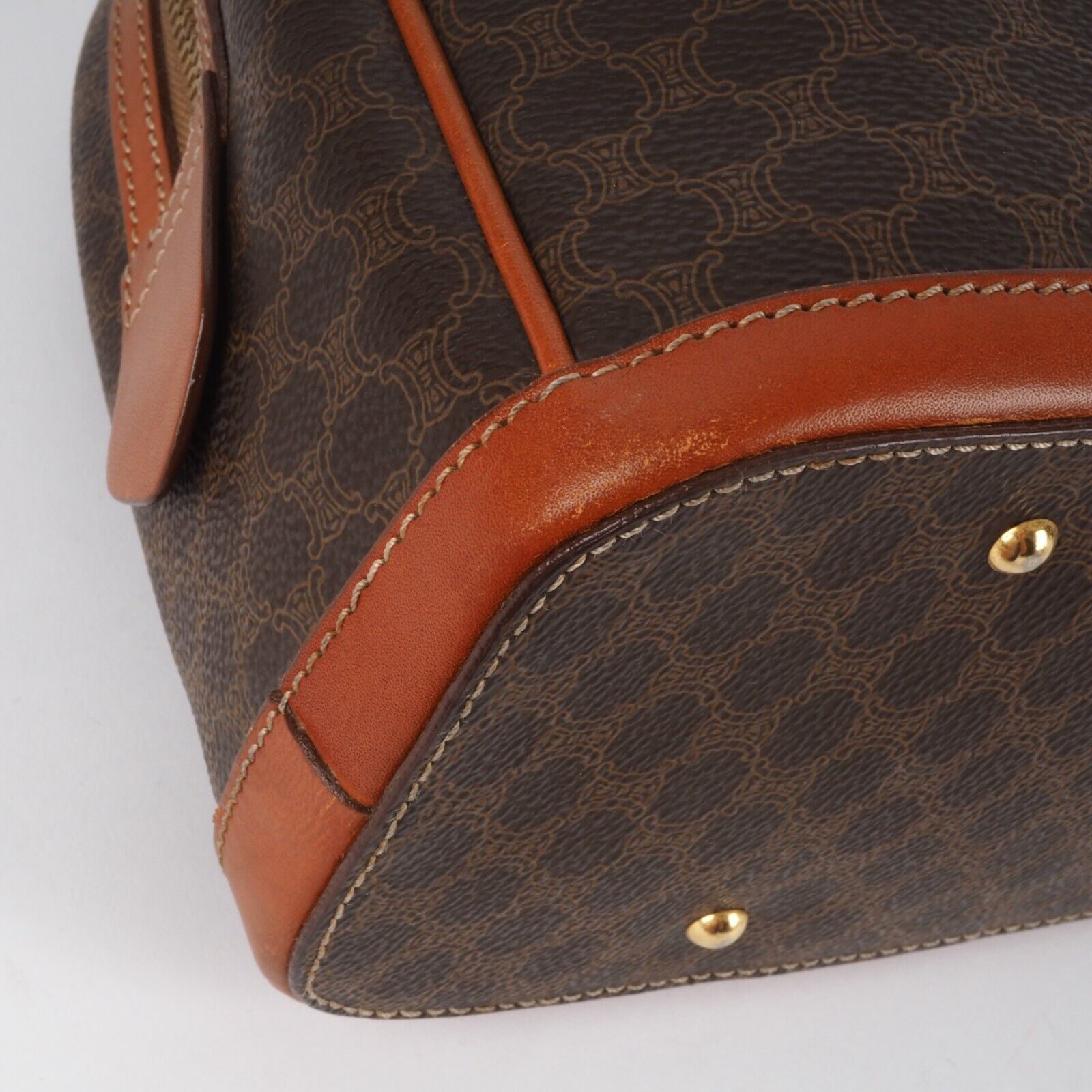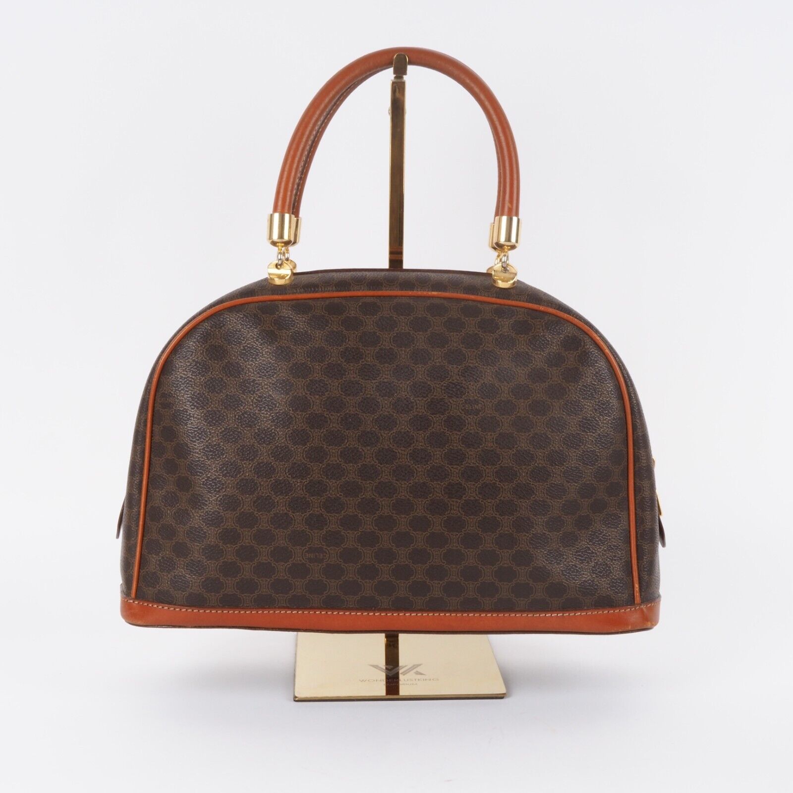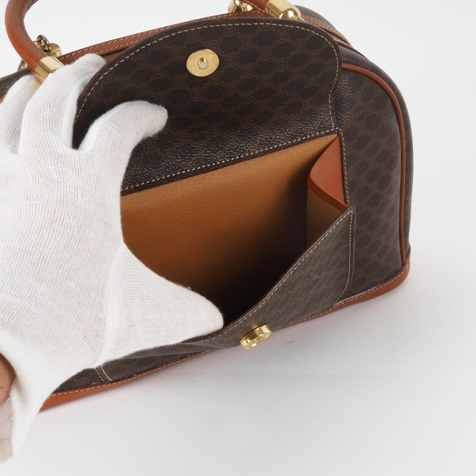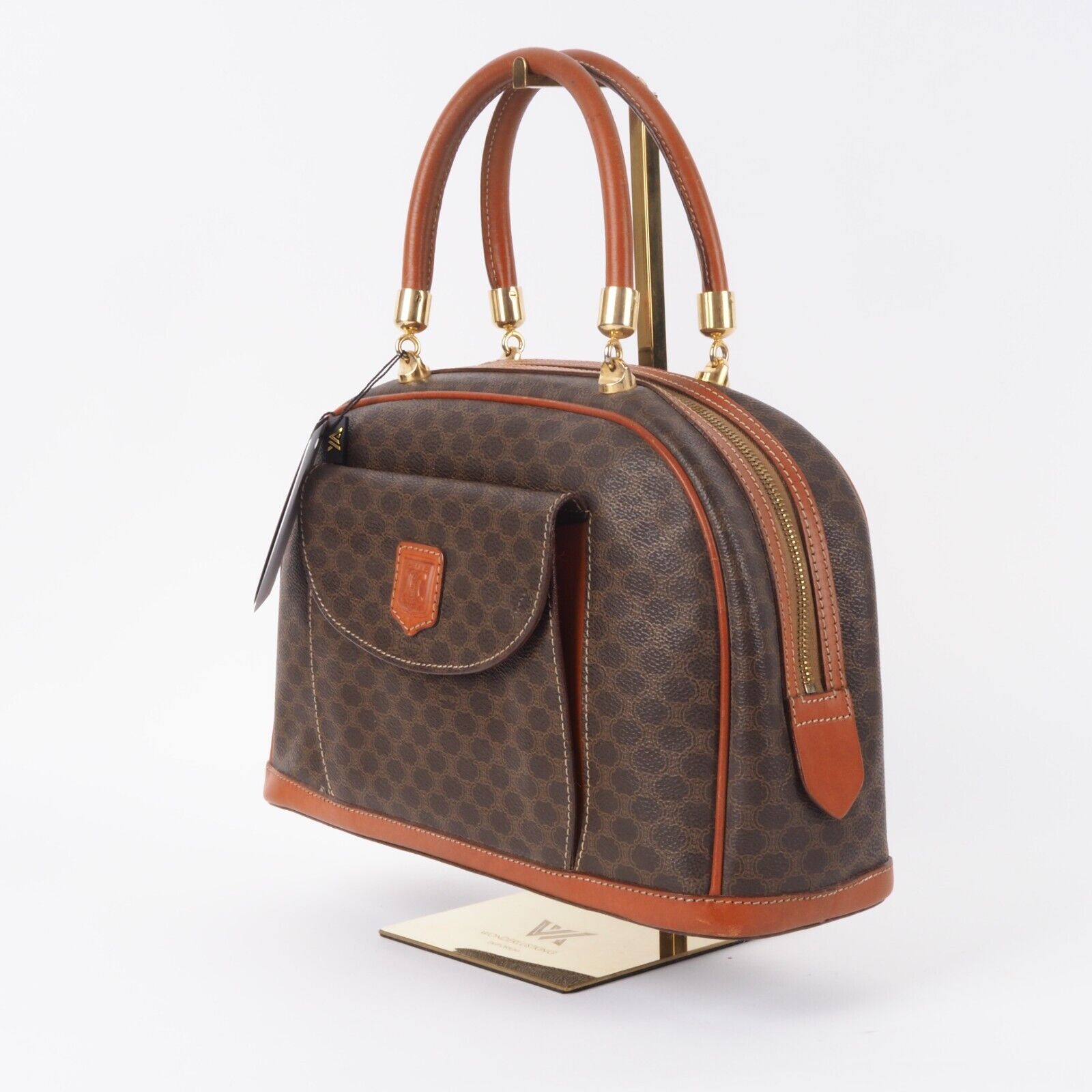 Diese stylische Dome Tasche von Celine wurde in Italien gefertigt. Mi klassischem Macadam Logo Motiv. Taschenboden, Handgriffe und Innenfutter aus Leder. Innen und außen sauber, gepflegt und frei von Gerüche. In einem sehr gutem Zustand.