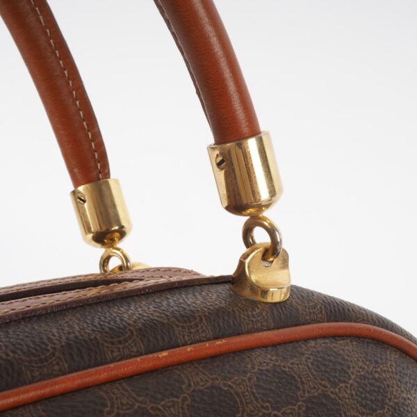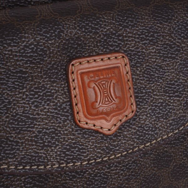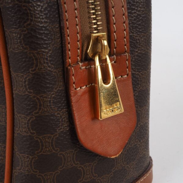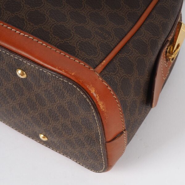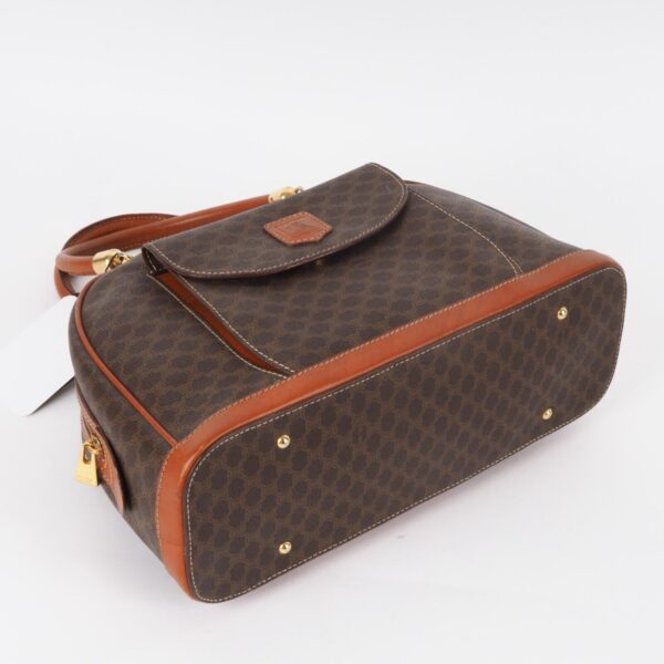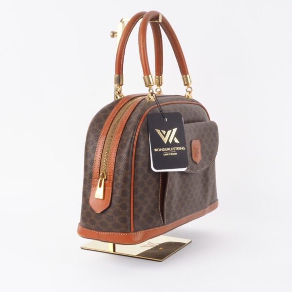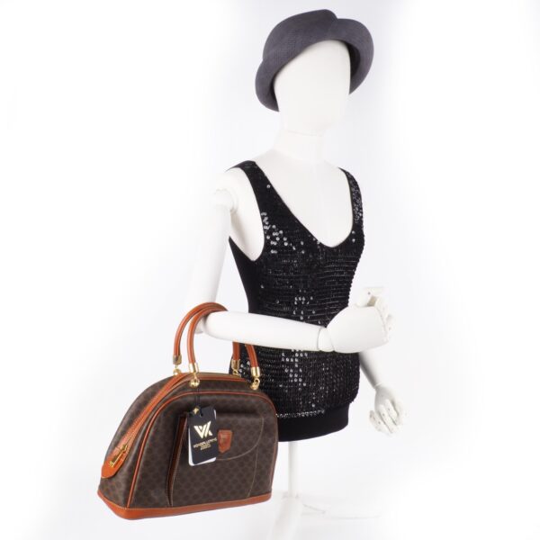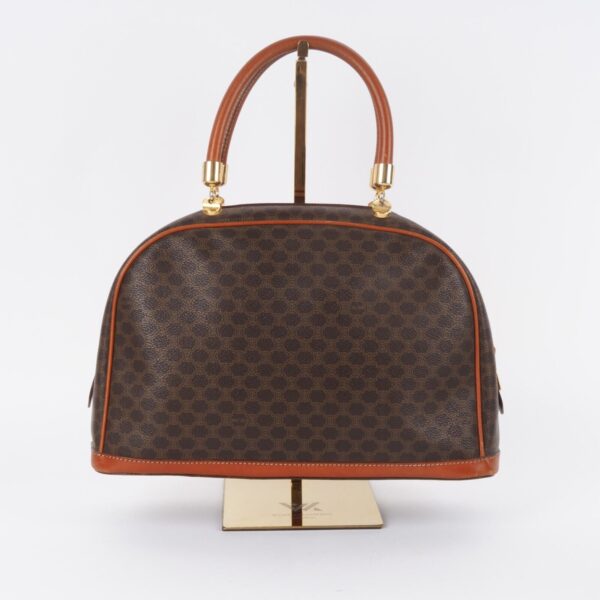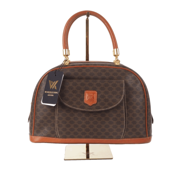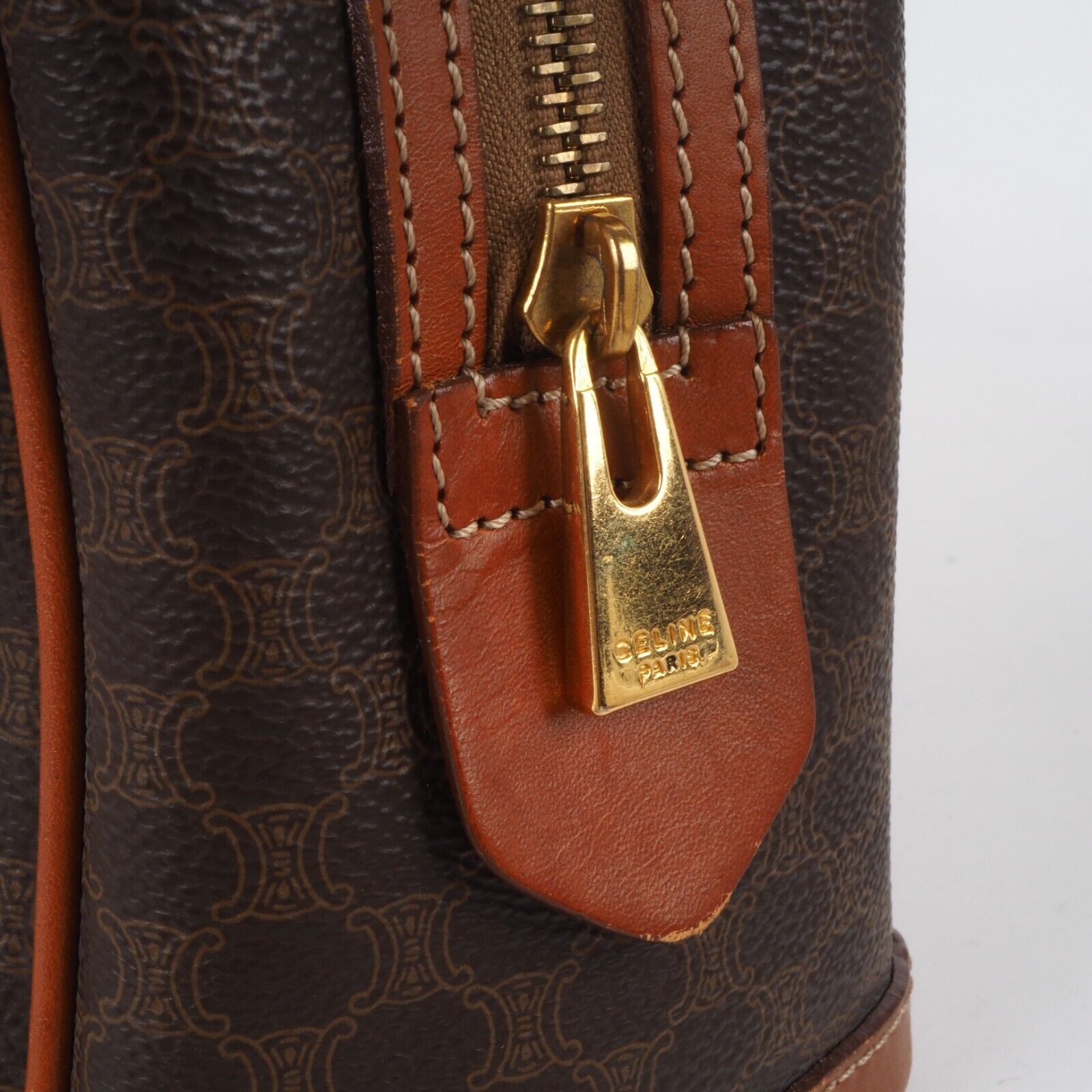 Diese stylische Dome Tasche von Celine wurde in Italien gefertigt. Mi klassischem Macadam Logo Motiv. Taschenboden, Handgriffe und Innenfutter aus Leder. Innen und außen sauber, gepflegt und frei von Gerüche. In einem sehr gutem Zustand.