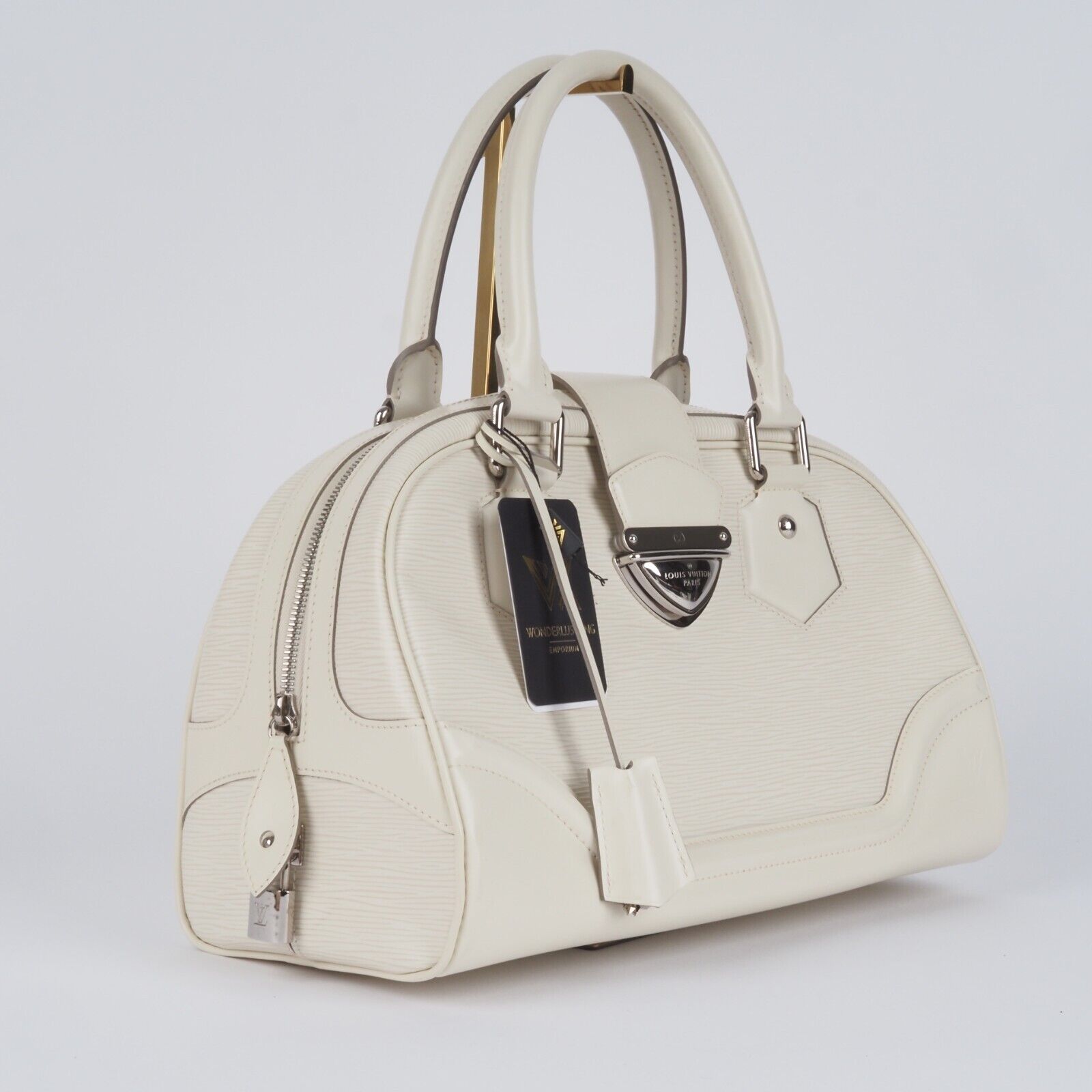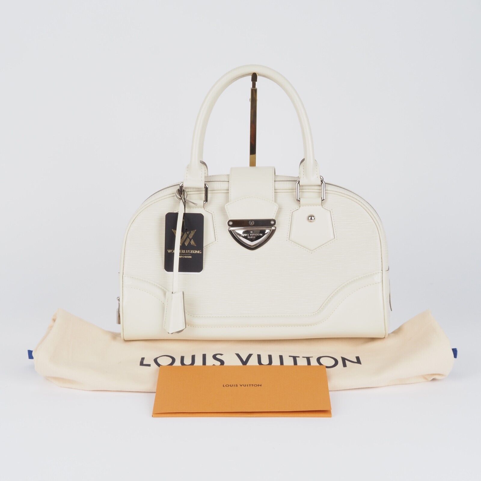 Diese wunderschöne Bowling Montaigne GM Tote Tasche von Louis Vuitton wurde im 2006 in Frankreich aus Epi-Leder handgefertigt. Die Tasche ist in einem sehr gepflegten Zustand mit minimalen Gebrauchspuren. Innen und außen absolut sauber und frei von Gerüche. Kommt mit einem Staubbeutel, Clochette, Hängeschloss und zwei Schlüssel.