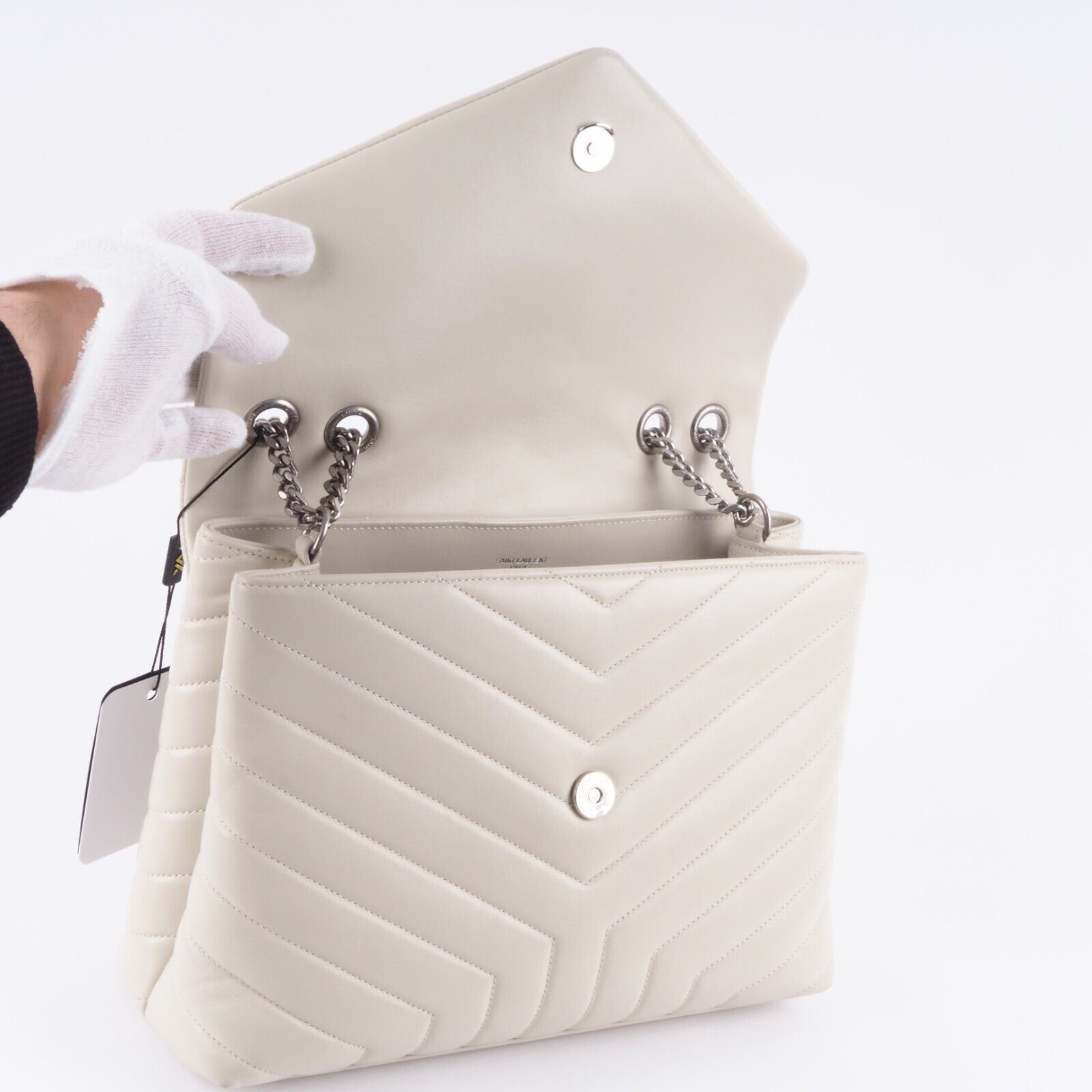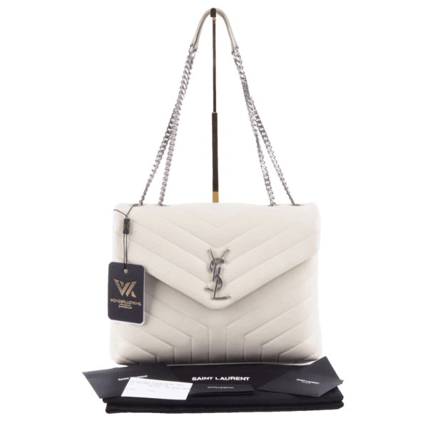 Diese wunderschöne LouLou Medium Schultertasche von Saint Laurent wurde im 2019 in Italien aus feinem Kalbsleder handgefertigt. Die Tasche ist die größte der Modellreihe. In sehr gepflegtem Zustand mit minimalem Abrieb an einer Ecke. Innen und außen sauber und frei von Gerüche. Kommt mit Staubbeutel und Echtheitsprüfung.