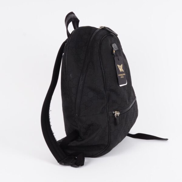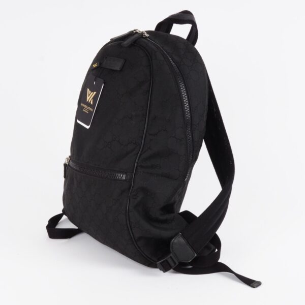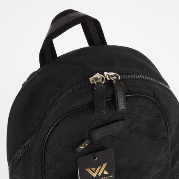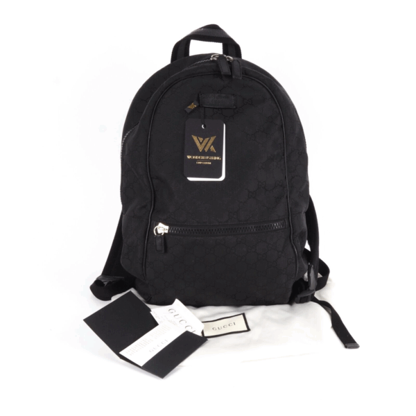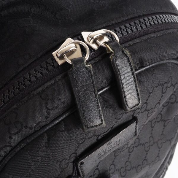 Dieser Stylischer Rucksack von Gucci wurde in Italien gefertigt. Aus Nylon Material mit Guccissima Logomuster. In gebrauchtem Zustand mit leichtem Abrieb an den Kanten, an den Reißverschlusszieher und ein Reißverschlusszieher innen wurde erneuert. Innen und außen sauber und frei von Gerüche.
