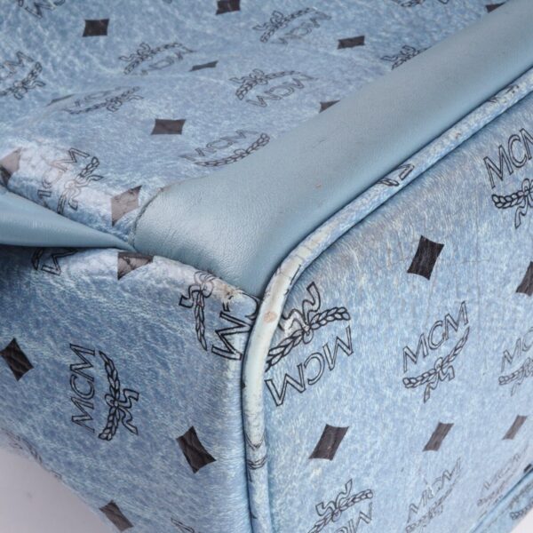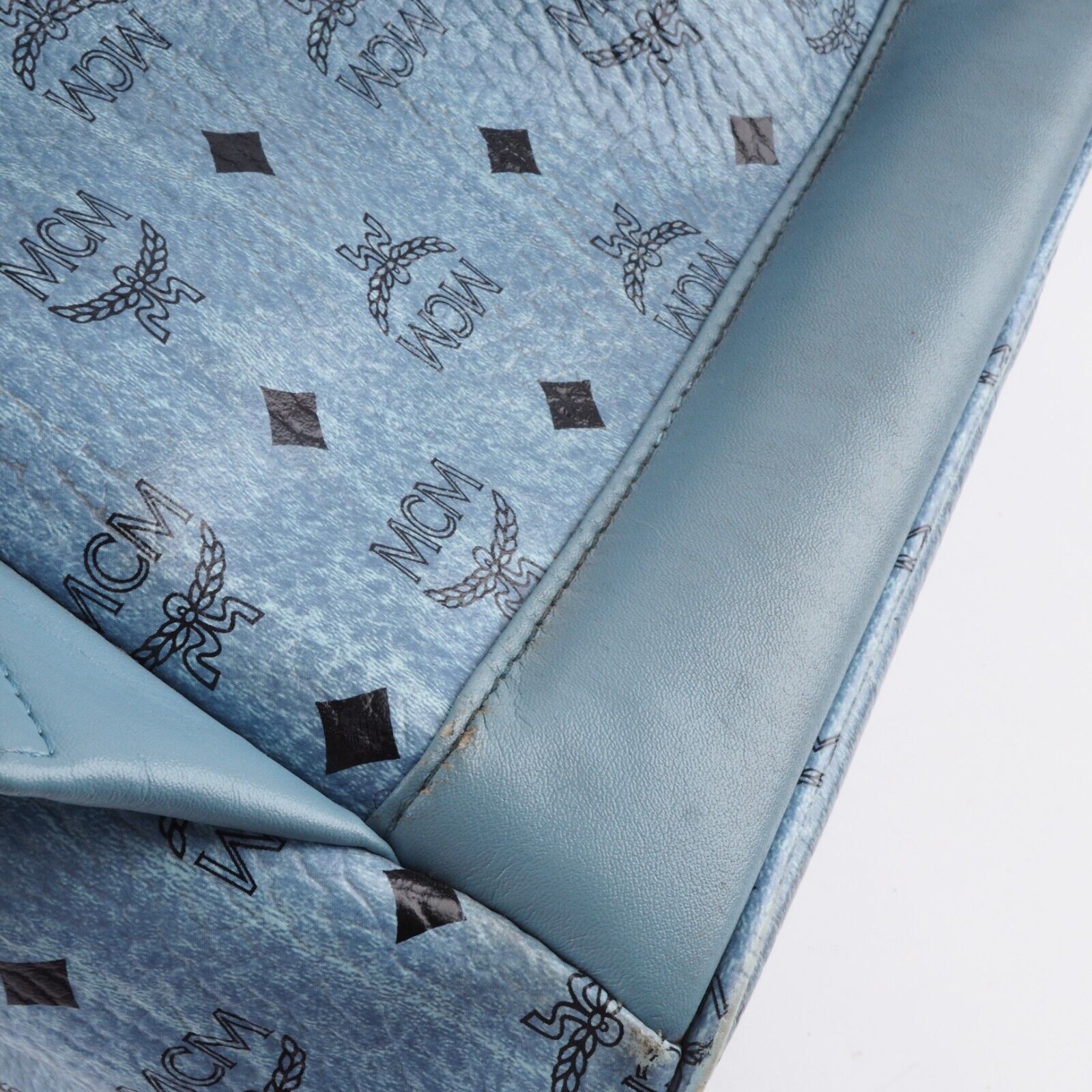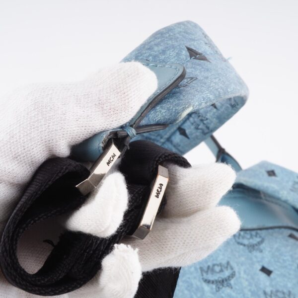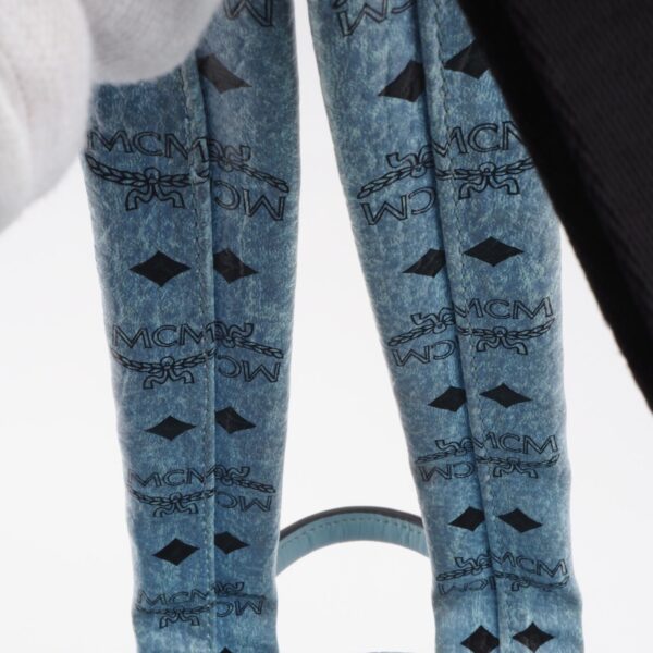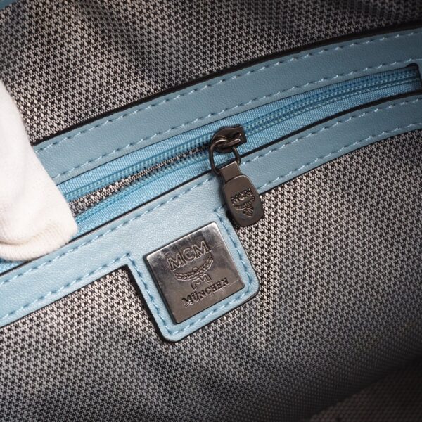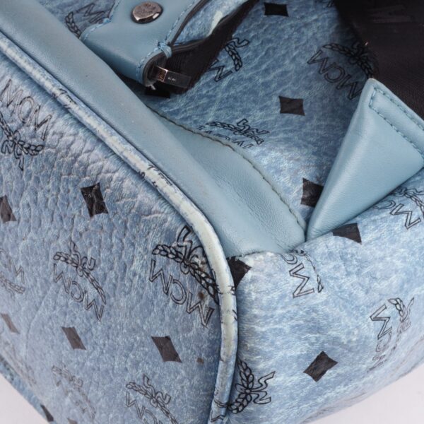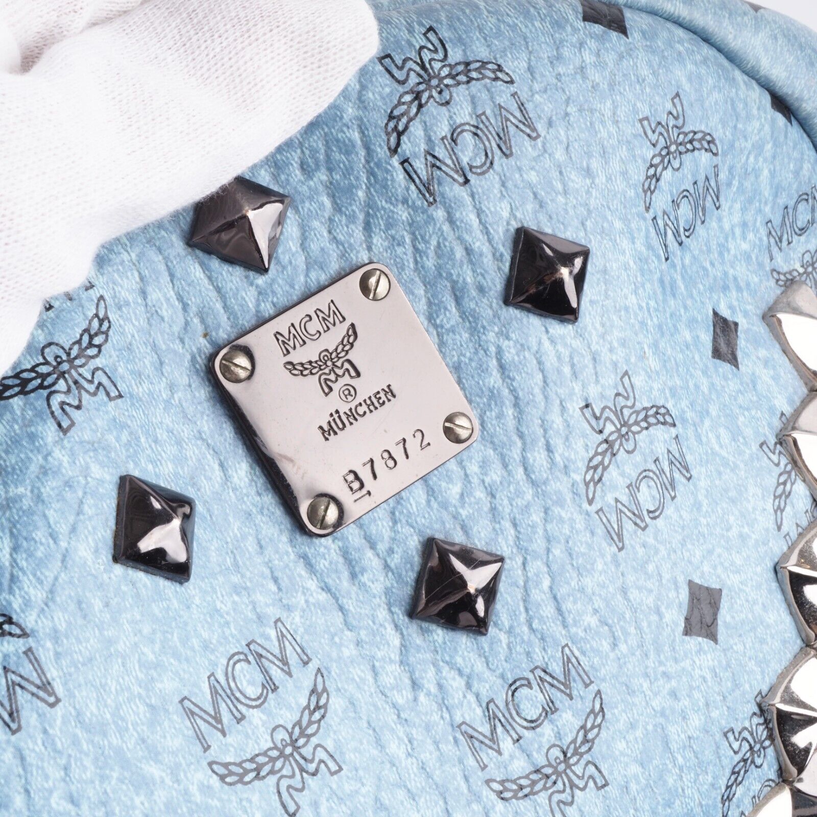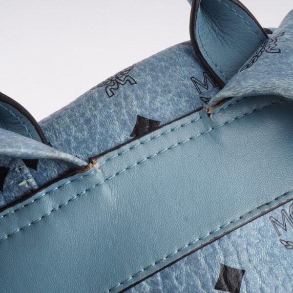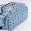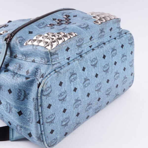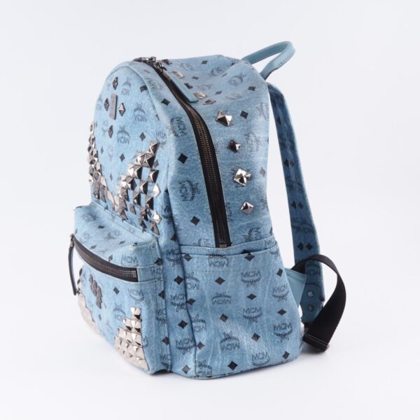 Diese stylische seltene Stark Rucksack bon MCM in distressed Hellblau mit silbernen Nieten ist in gebrauchtem Zustand mit einige Falten, Abreibungen siehe Bilder. Der Rucksack ist geräumig und sehr praktisch. Zwei Seitenfächer außen für zB Trinkflaschen. Eine Außentasche mit Reißverschluss. 3 Innenfächer, davon eine mit Reißverschluss. + Ein großes Innenfach für Notebooks bis zu 14″ größe. Der Rucksack ist für Herren gedacht von der größe her, aber steht für Frauen auch gut, wenn man größere Rucksäcke mag.
