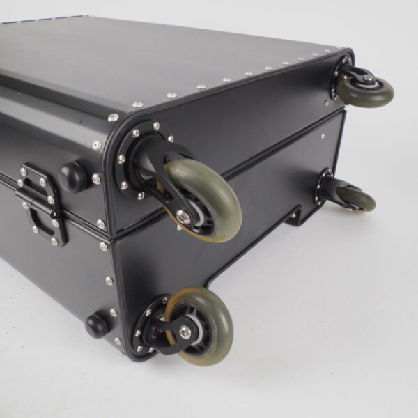 Kronos Black wird aus Titan in Luft- und Raumfahrtqualität gefertigt und bietet eine Korrosionsbeständigkeit auf Platin-Niveau sowie ein hervorragendes Verhältnis von Festigkeit zu Gewicht. Mit über 120 Nieten, leisen Rädern in Aluminiumgehäusen, einem Griff aus harter Kohlefaser und einer weichen Kohlefasertasche erhält es seine charakteristische schwarze Farbe durch Titaneloxierung.