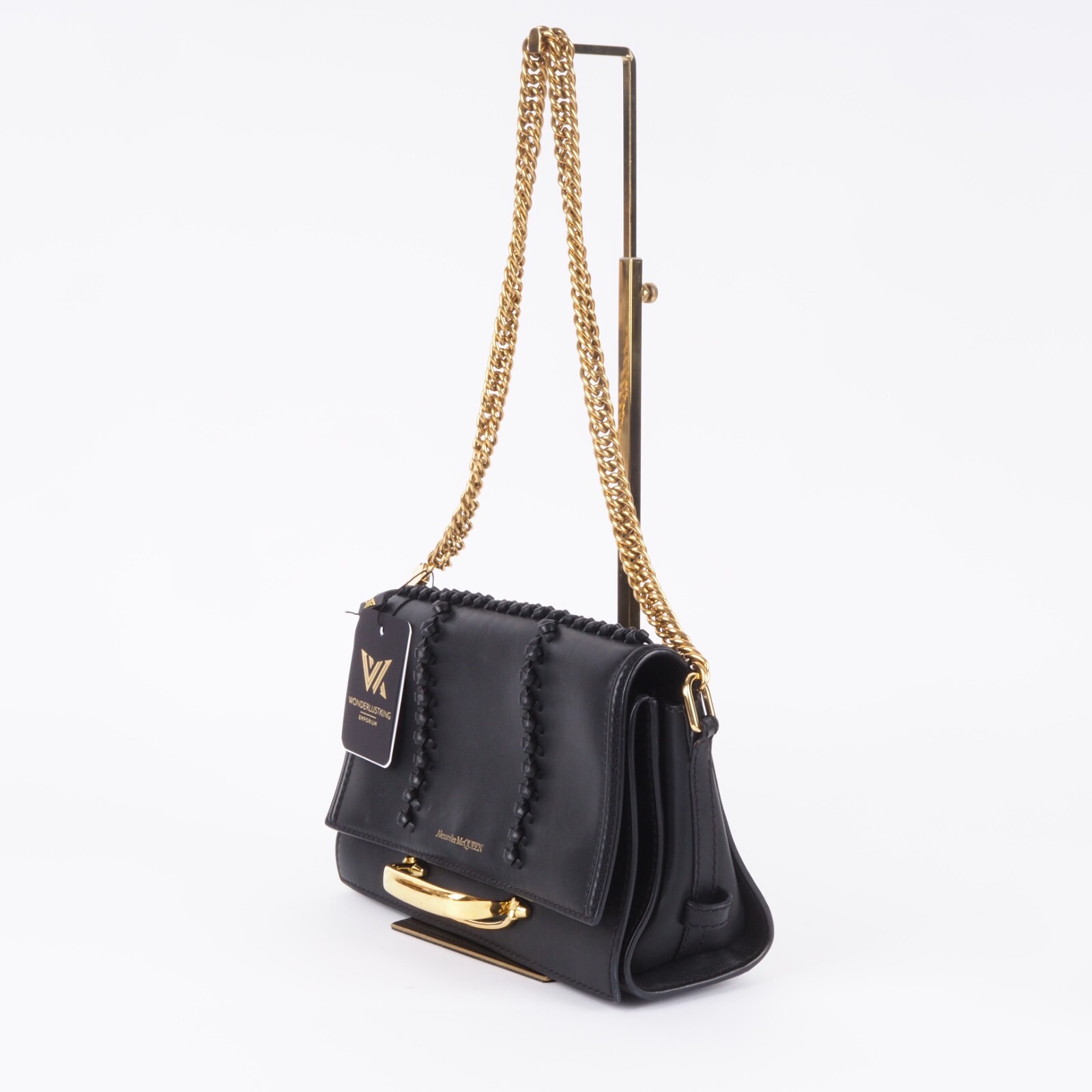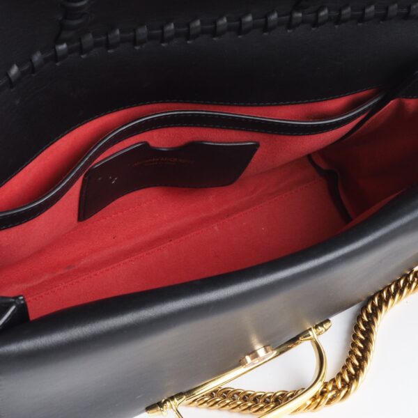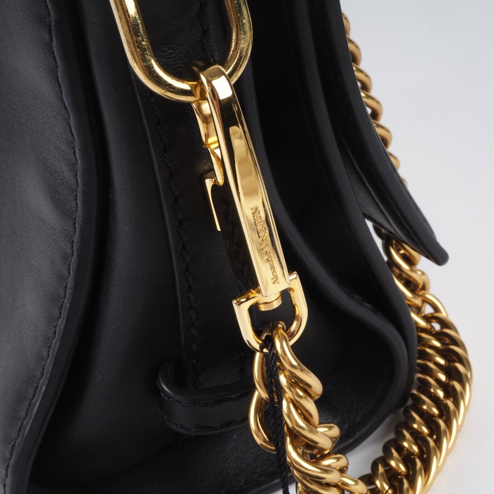 Diese wunderschöne The Story Schultertasche von Alexander McQueen wurde in Italien aus feinem Kalbsleder handgefertigt. Innenfutter aus rotem Veloursleder. Die Tasche ist mit einer goldene Schulterkette ausgestattet. Innen und außen sauber, und frei von Gerüche. In gepflegtem Zustand mit leichten Gebrauchspuren.