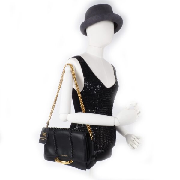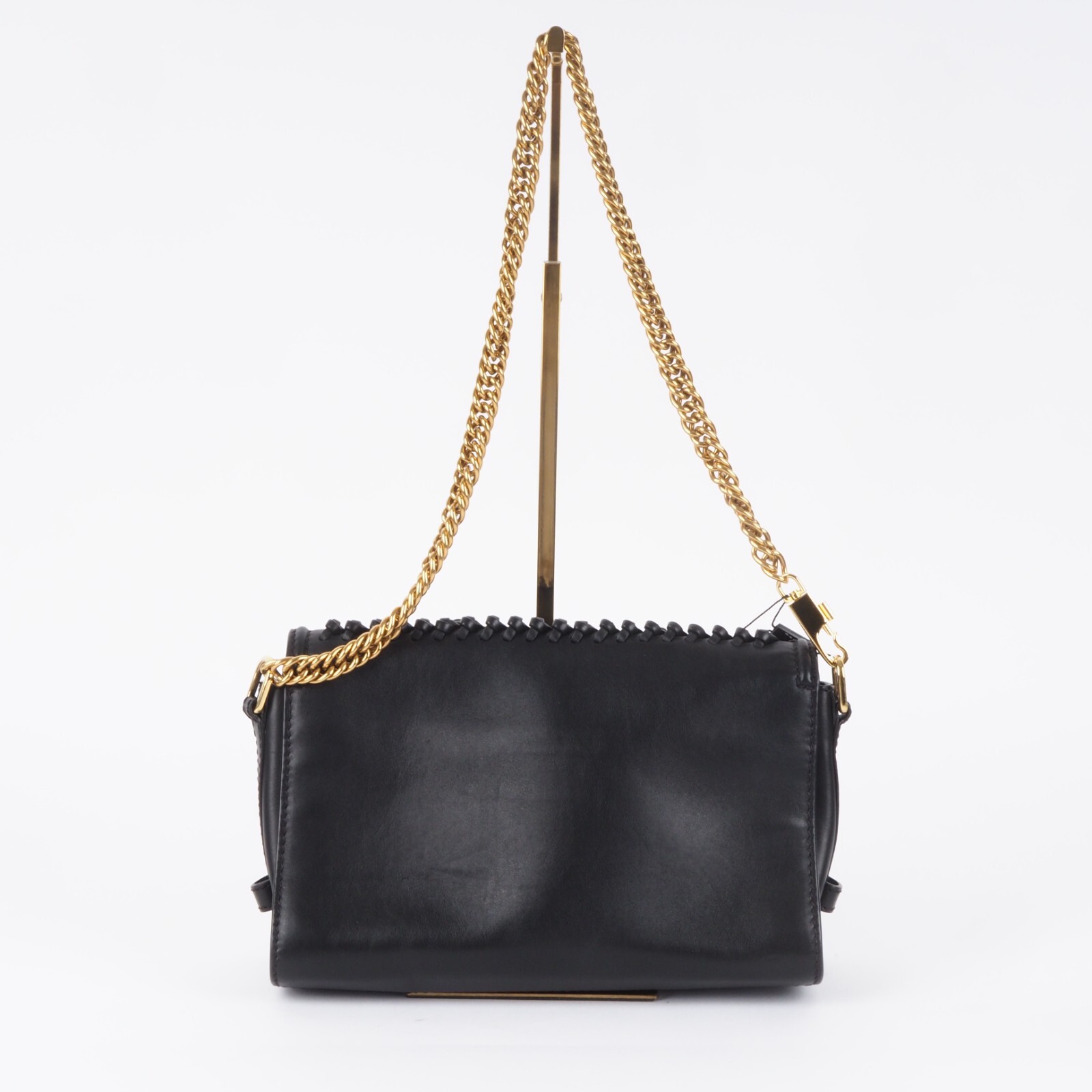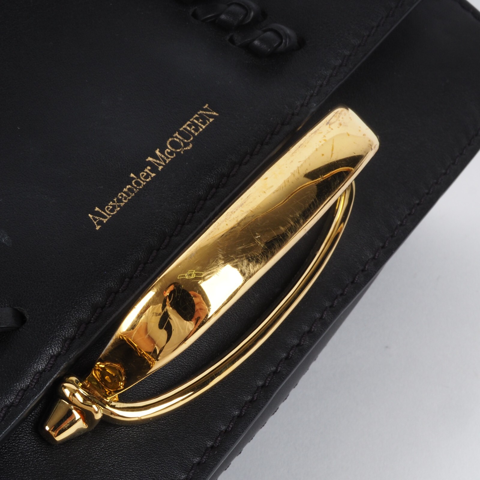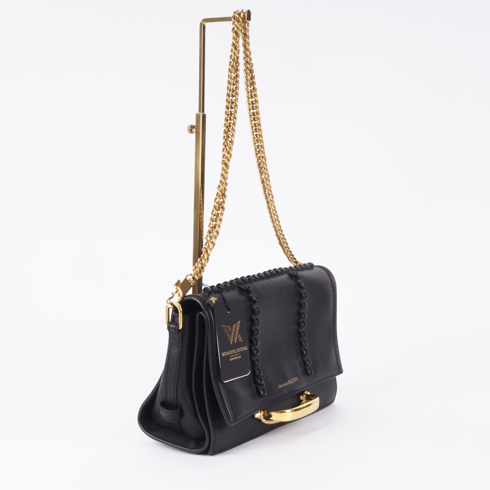 Diese wunderschöne The Story Schultertasche von Alexander McQueen wurde in Italien aus feinem Kalbsleder handgefertigt. Innenfutter aus rotem Veloursleder. Die Tasche ist mit einer goldene Schulterkette ausgestattet. Innen und außen sauber, und frei von Gerüche. In gepflegtem Zustand mit leichten Gebrauchspuren.