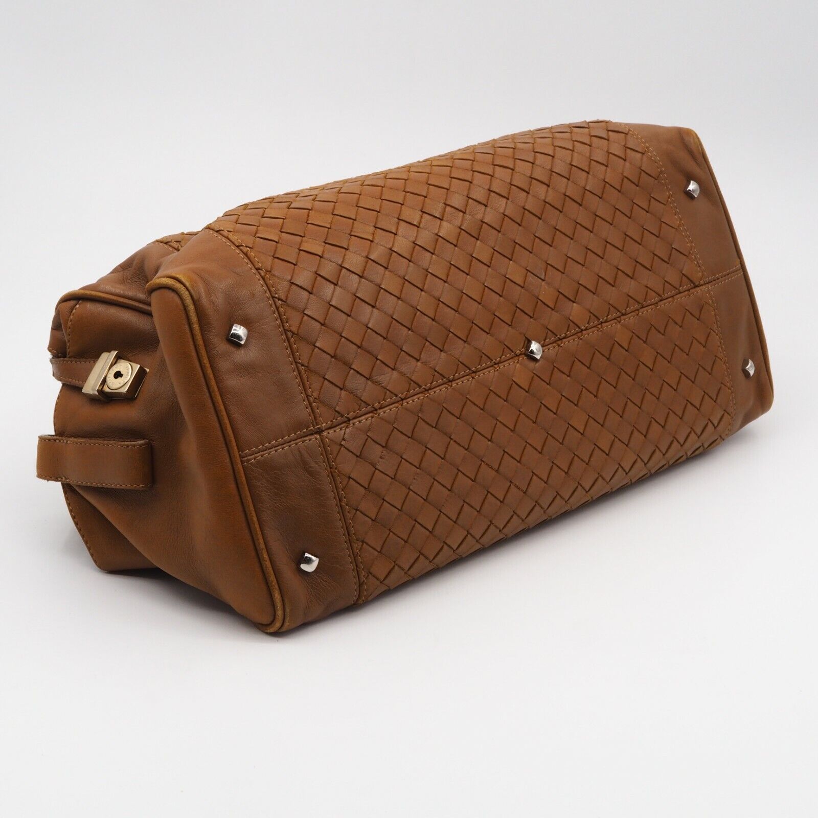 Diese wunderschöne BOTTEGA VENETA Luxus Lammleder Schultertasche im Intrecciato geflochtenem Style war nicht im Handel erhältlich. Es ist ein Prototyp / Ausstellungstück, deswegen keine Seriennummer. Originallabel ist Bianco siehe Bilder. Echtheit ist von Experten bestätigt. Die Tasche befindet sich in gutem Zustand, aber die Innenfutter eine Seite ist mit Tinte verschmutzt, siehe letztes Bild. Sonst keine Gerüche und Beschädigungen. (Die Schloss förmige Steckverschluss ist nicht mit Schlüssel abschließbar, es ist nur design.) Kommt mit Originalstaubbeutel.