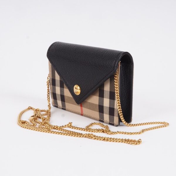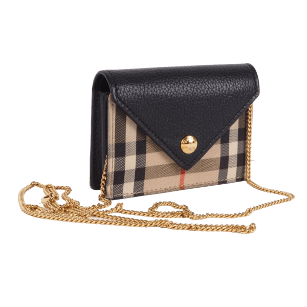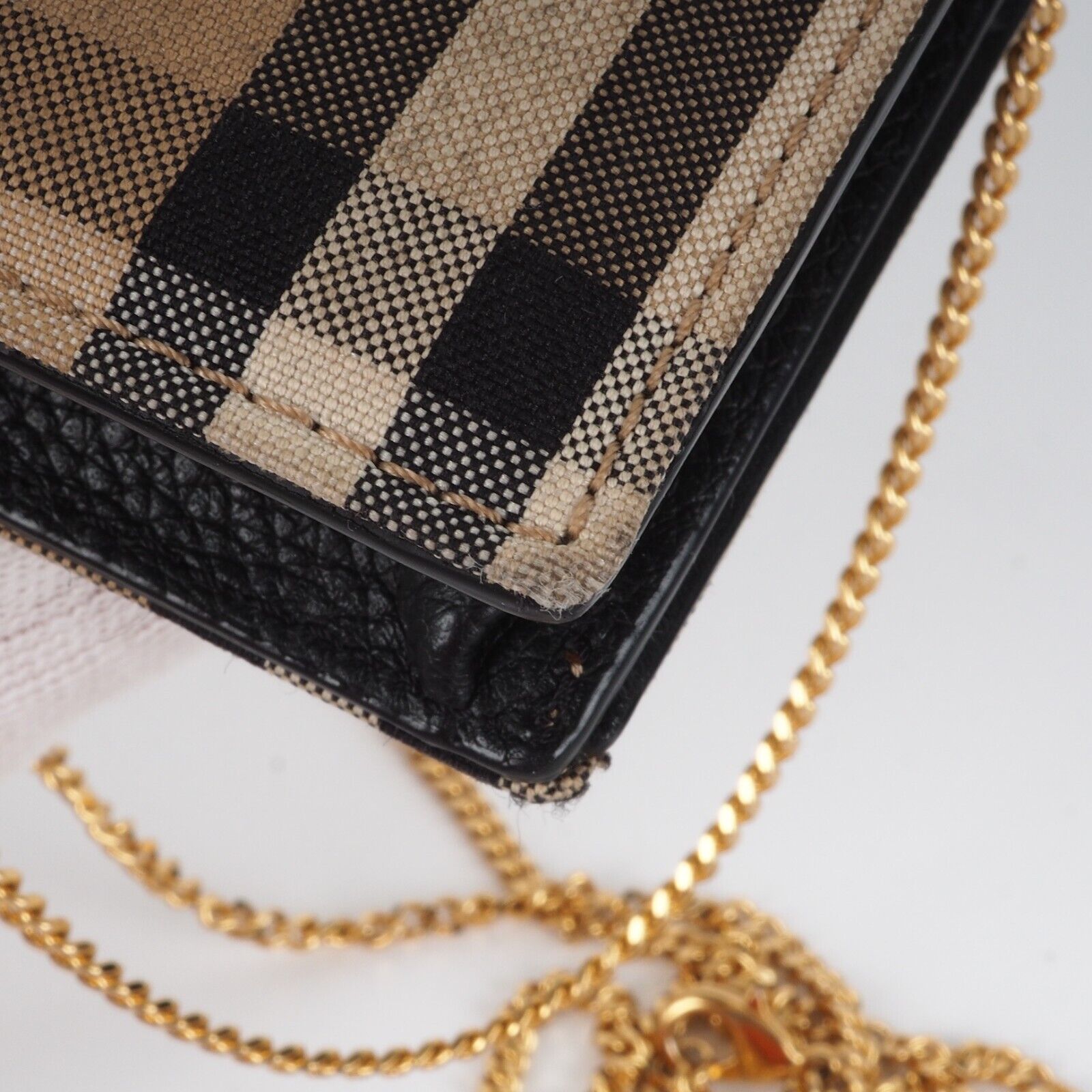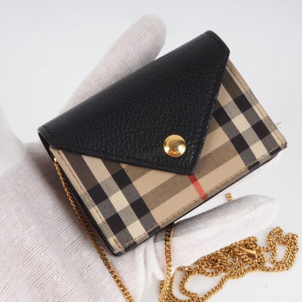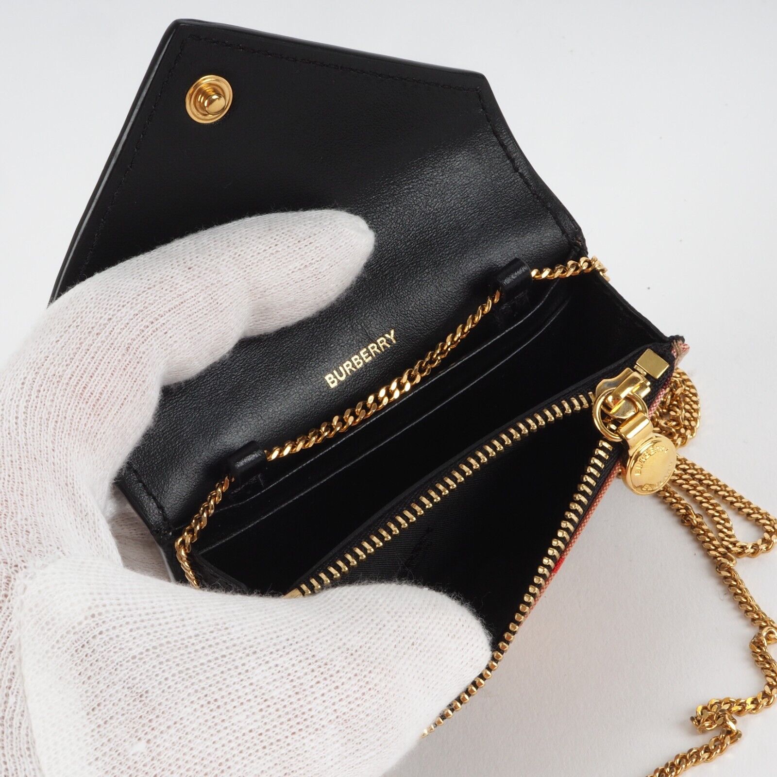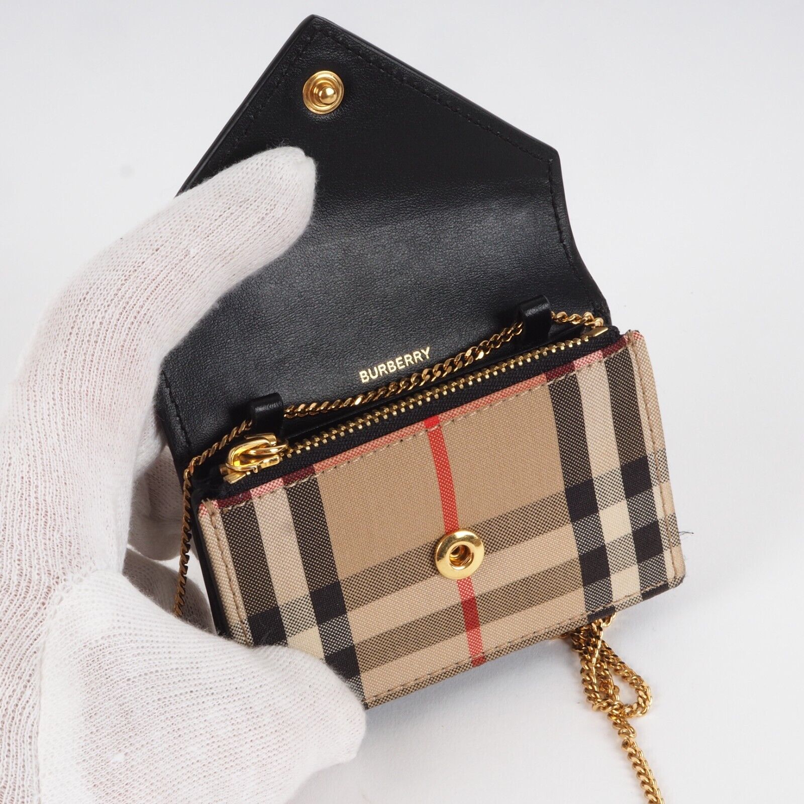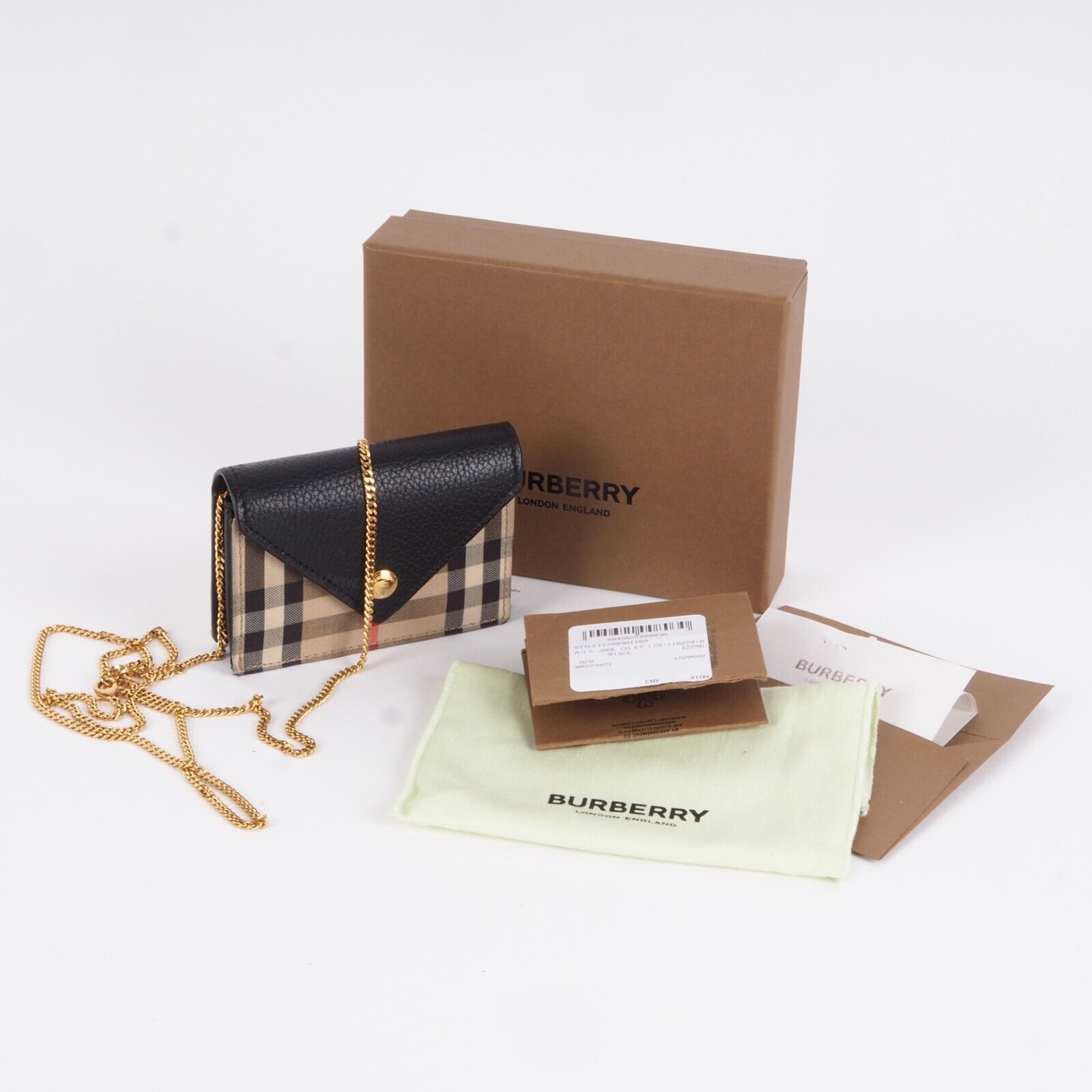Diese stylische mini Kartenetui / Geldbeutel von Burberry ist mit einer Kette ausgestettet, somit auch als Abendtasche tragbar. Fullset mit Originalrechnung und Karton.