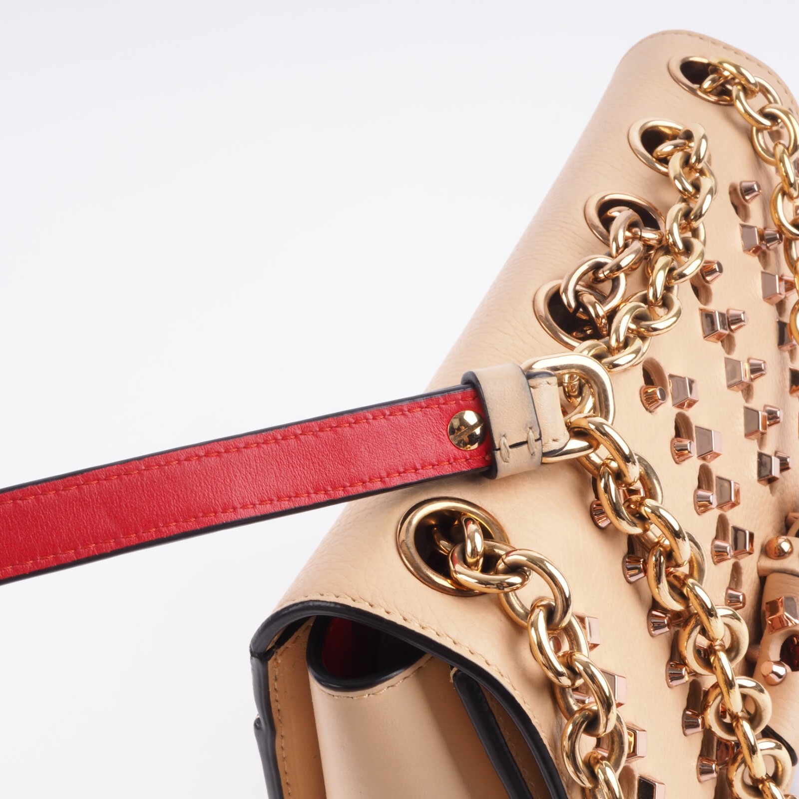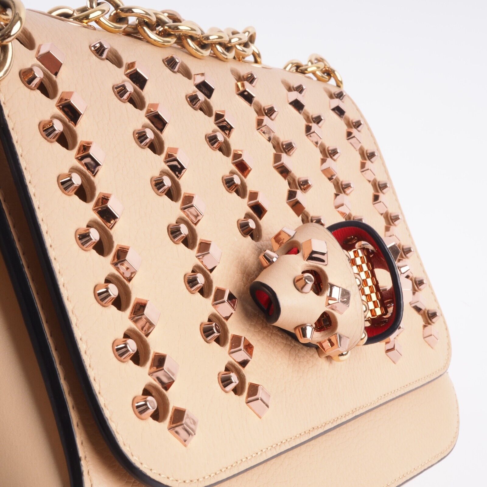 Diese wunderschöne auffällige Schultertasche von Christian Louboutin wurde im 2018 in Italien handgefertigt. Innen und außen aus Leder. Mit Hardware in Rosegold. Verstellbare Kette: Schulter oder Umhängetasche. Die Tasche ist sehr selten und in neuwertigem Zustand mit absolut minimalen Gebrauchspuren. Keine Flecken oder Gerüche. Kommt mit Staubbeutel und Originalrechnung.