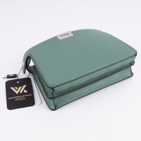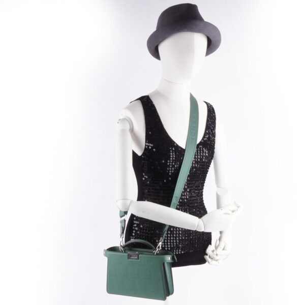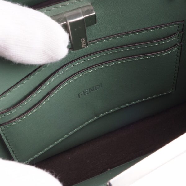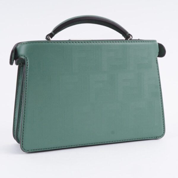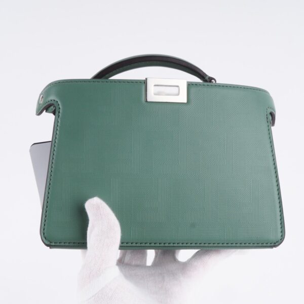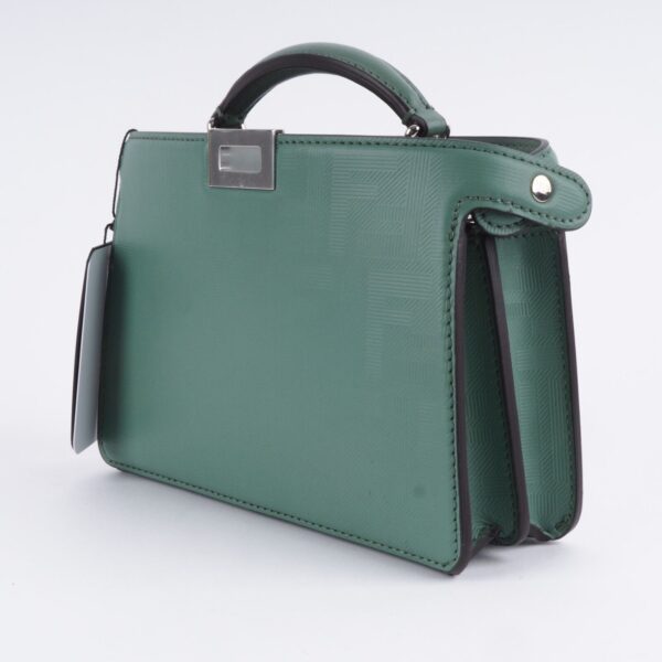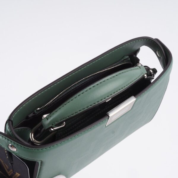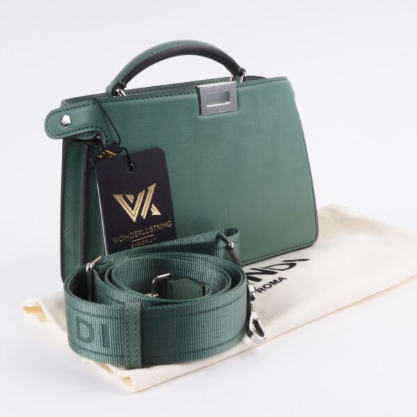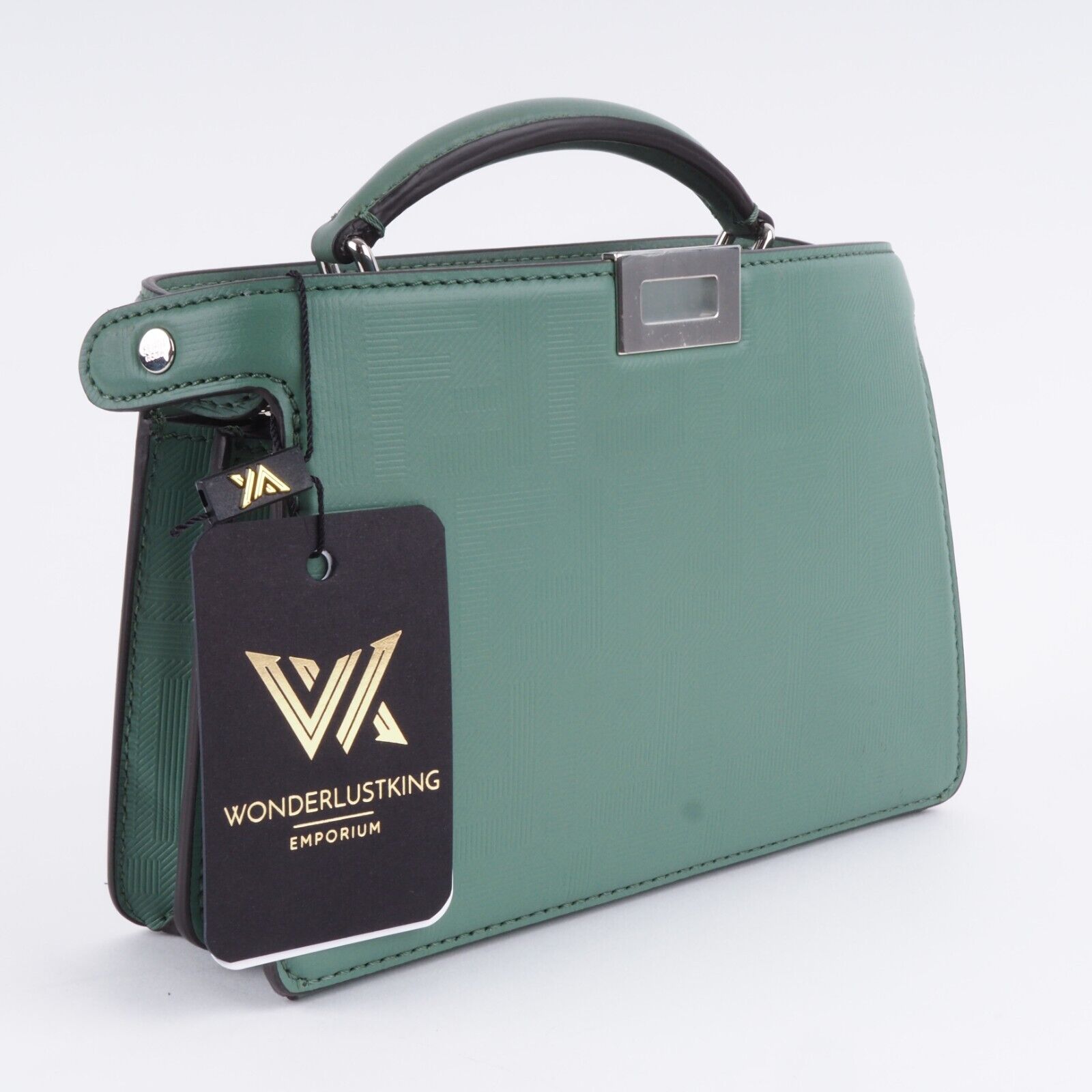 Ikonische Tasche Peekaboo ISeeU XCross aus „Fendi Shadow“-Leder in Grün mit geripptem FF-Muster ist Teil der gemeinsam mit dem Designer Stefano Pilati entworfenen Kollektion.Mit zwei Innenfächern, die durch eine feste Trennwand geteilt werden. Kultige Drehschließe auf Vorderseite und Reißverschluss hinten. Innenseiten gefüttert mit Leder im selben Farbton, zwei Innenfächer, die durch eine feste Trennwand getrennt sind, Kartenschlitz, Beschläge aus Metall mit Palladium-Finish.Dank des Griffs und des verstellbaren und abnehmbaren Schulterriemens aus Band mit „FENDI“-Schriftzug kann sie als Hand- oder Schultertasche getragen werden.Made in Italy