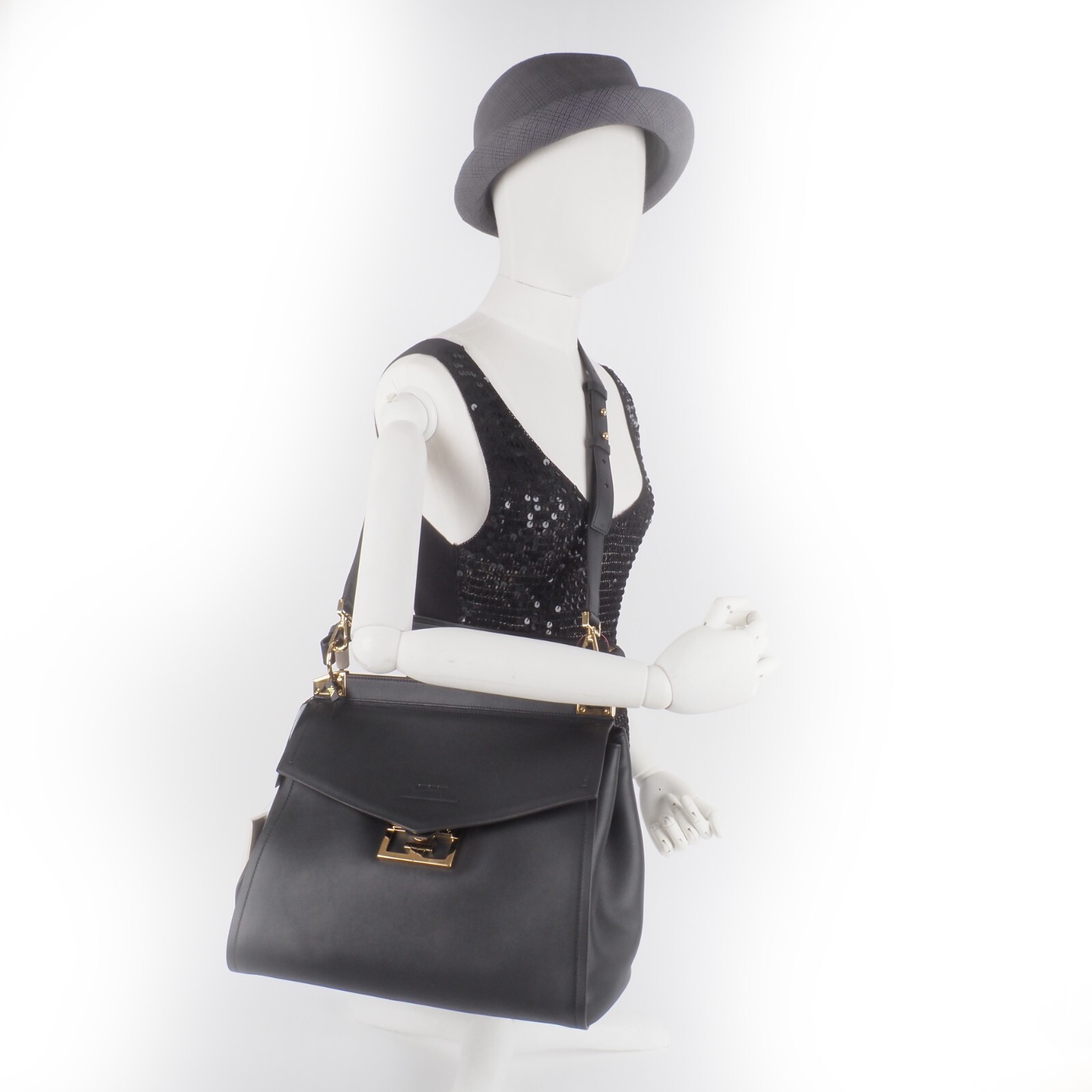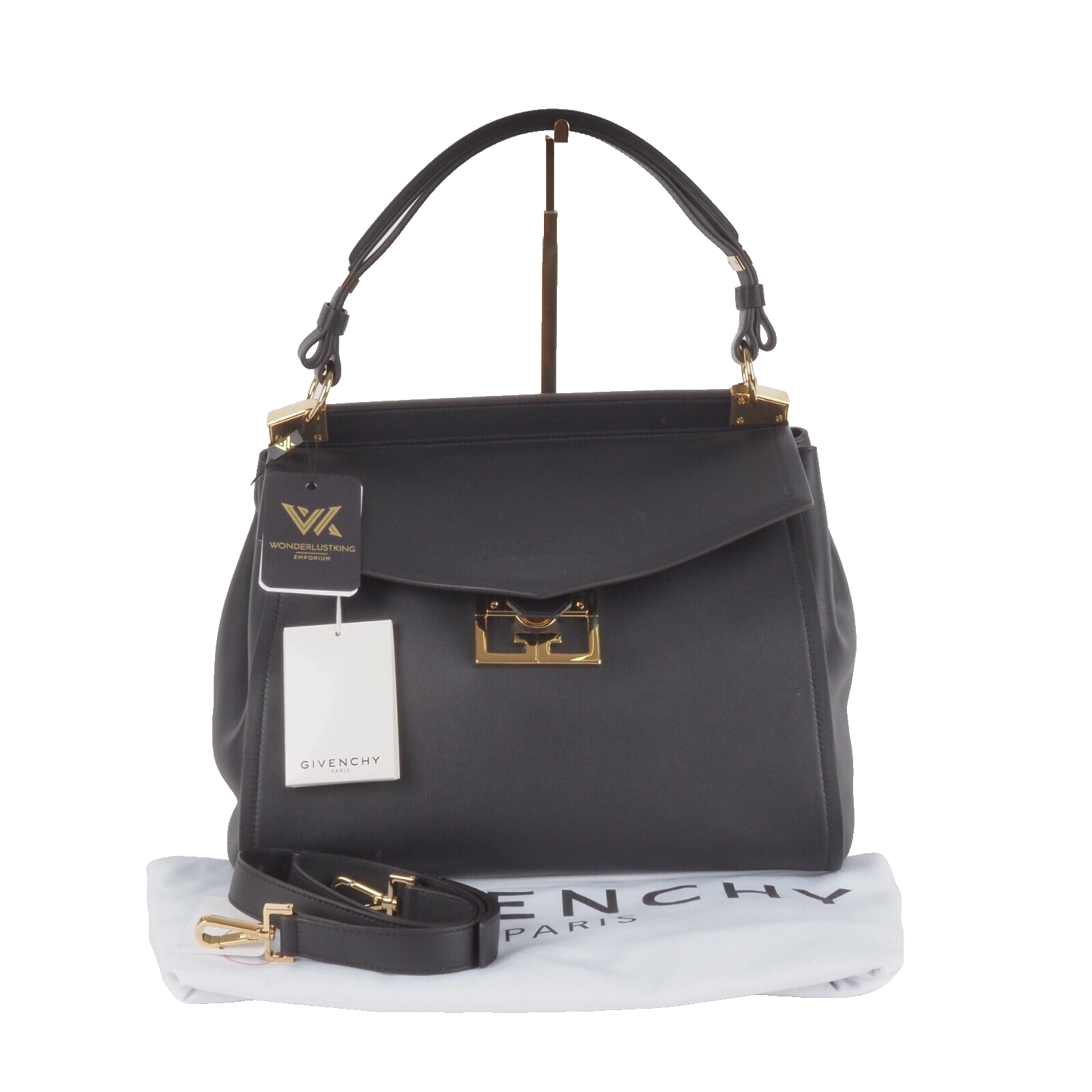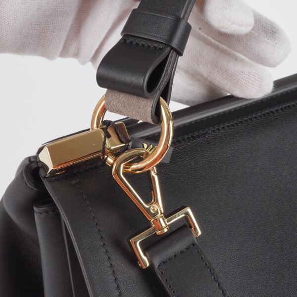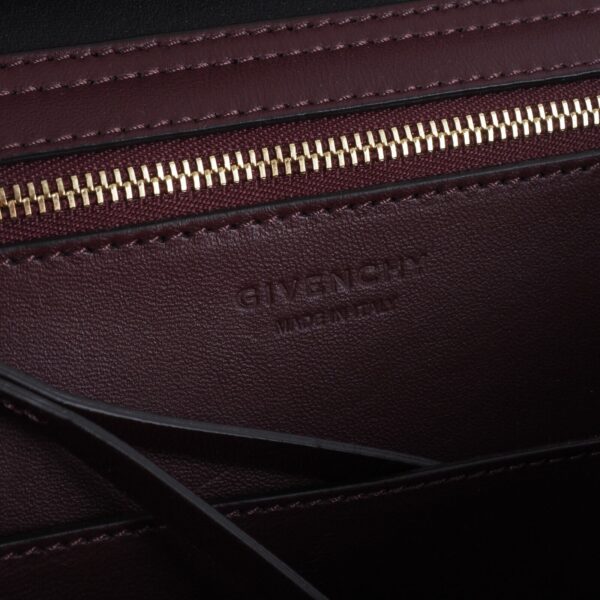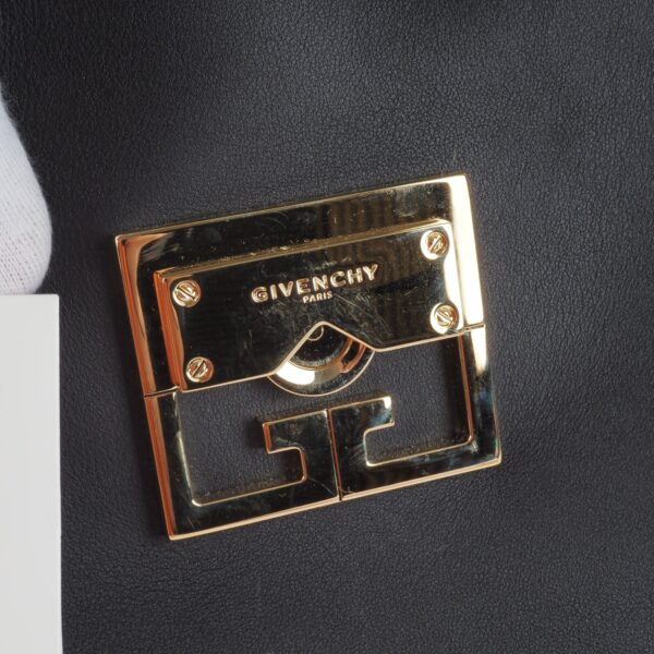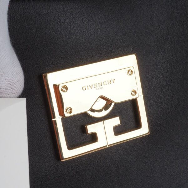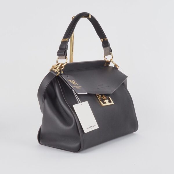Sie zeigt Stärke durch ihre klaren und strukturierten Linien, Eleganz durch ihre feminine und harmonische Silhouette, und Zeitlosigkeit durch ihr klassisches und unaufgeregtes Design: Givenchys neue It-Bag Mystic ist ein wahrer Allrounder – und versammelt die Charakteristika der Couture-Entwürfe Waight Kellers in nur einem Modell. Denn, was die Kollektion der britischen Designerin (als auch den Grundgedanken von Couture selbst) ausmacht, ist eben dieser Ansatz, kontrastierende Elemente zu vereinen, in die Perfektion zu proportionieren und ein facettenreiches Bild von Weiblichkeit zu zeigen. Kaum verwunderlich also, dass Givenchys neues Taschenmodell all das kann – und die Garderobe der modernen und charakterstarken Business-Frau ganz wunderbar ergänzt. Diese Tasche ist ungetragen mit leichten Lagerungspuren – ganz leichte Kratzer am Flap. Innen und außen sauber und frei von Gerüche.