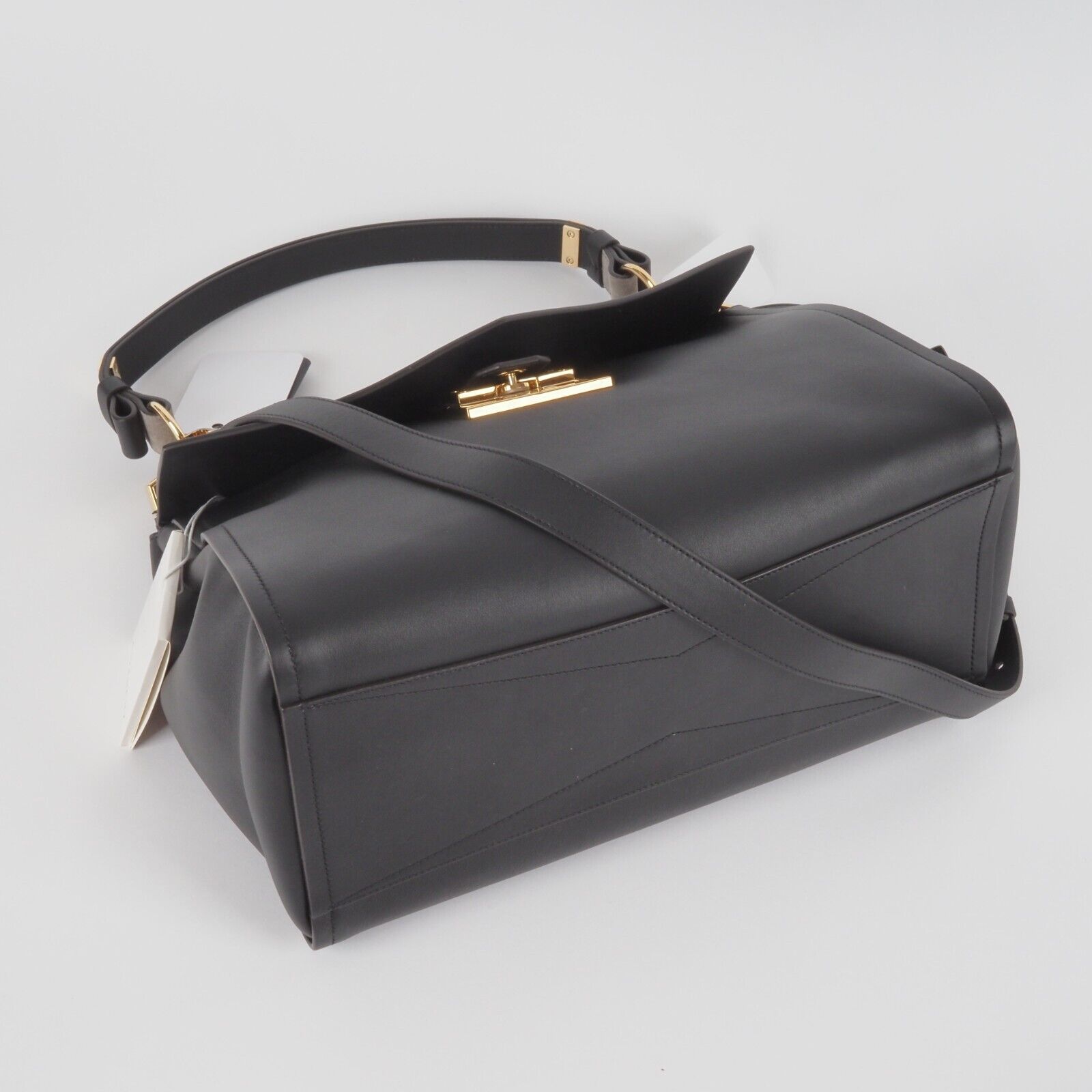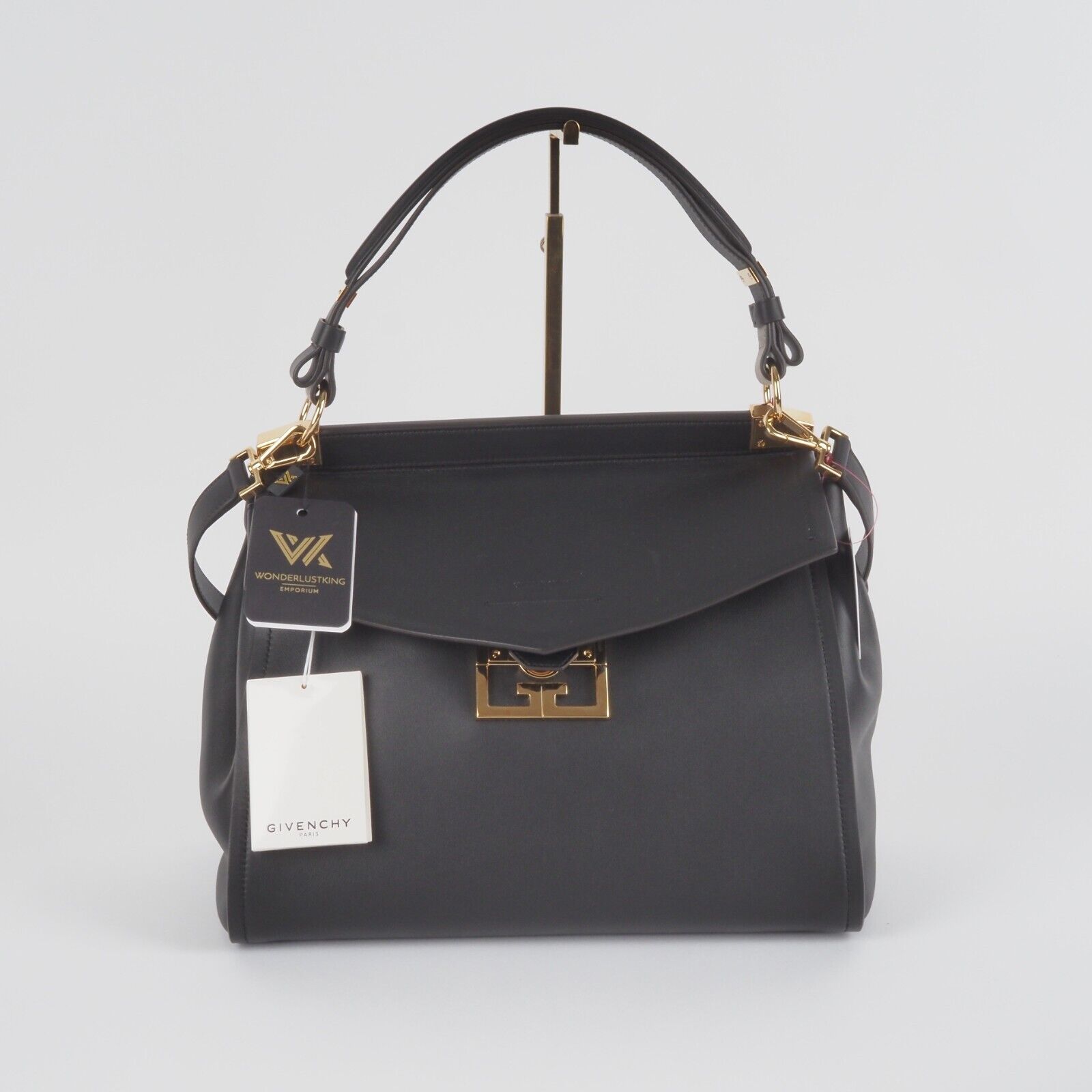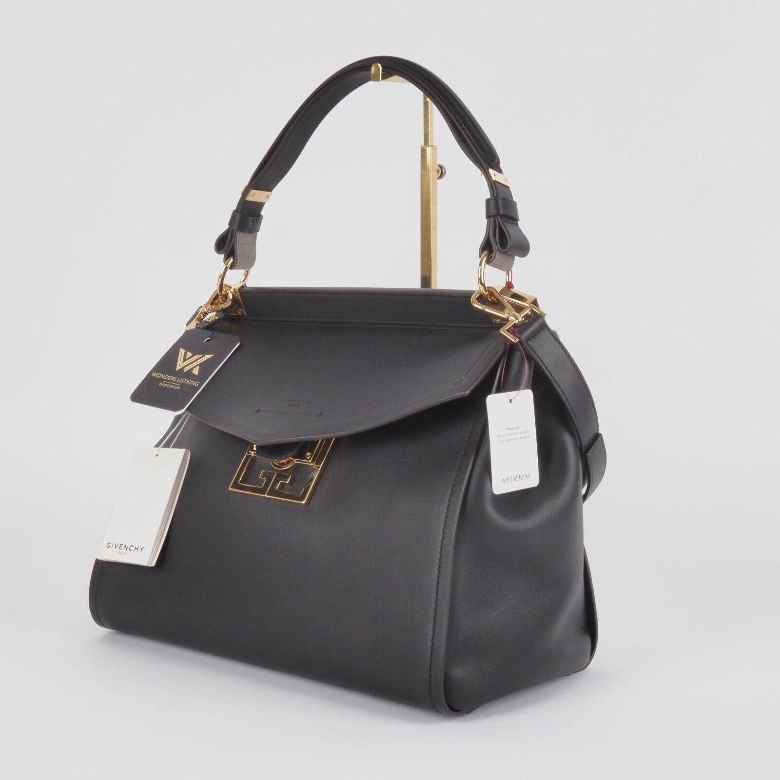 Sie zeigt Stärke durch ihre klaren und strukturierten Linien, Eleganz durch ihre feminine und harmonische Silhouette, und Zeitlosigkeit durch ihr klassisches und unaufgeregtes Design: Givenchys neue It-Bag Mystic ist ein wahrer Allrounder – und versammelt die Charakteristika der Couture-Entwürfe Waight Kellers in nur einem Modell. Denn, was die Kollektion der britischen Designerin (als auch den Grundgedanken von Couture selbst) ausmacht, ist eben dieser Ansatz, kontrastierende Elemente zu vereinen, in die Perfektion zu proportionieren und ein facettenreiches Bild von Weiblichkeit zu zeigen. Kaum verwunderlich also, dass Givenchys neues Taschenmodell all das kann – und die Garderobe der modernen und charakterstarken Business-Frau ganz wunderbar ergänzt. Diese Tasche ist ungetragen mit leichten Lagerungspuren – ganz leichte Kratzer am Flap. Innen und außen sauber und frei von Gerüche.