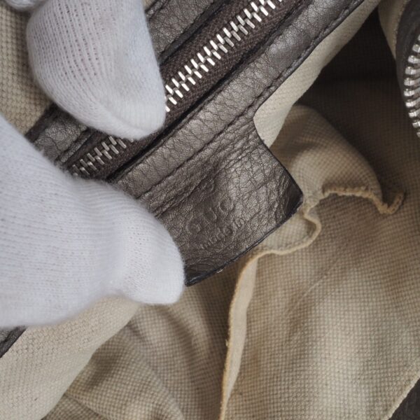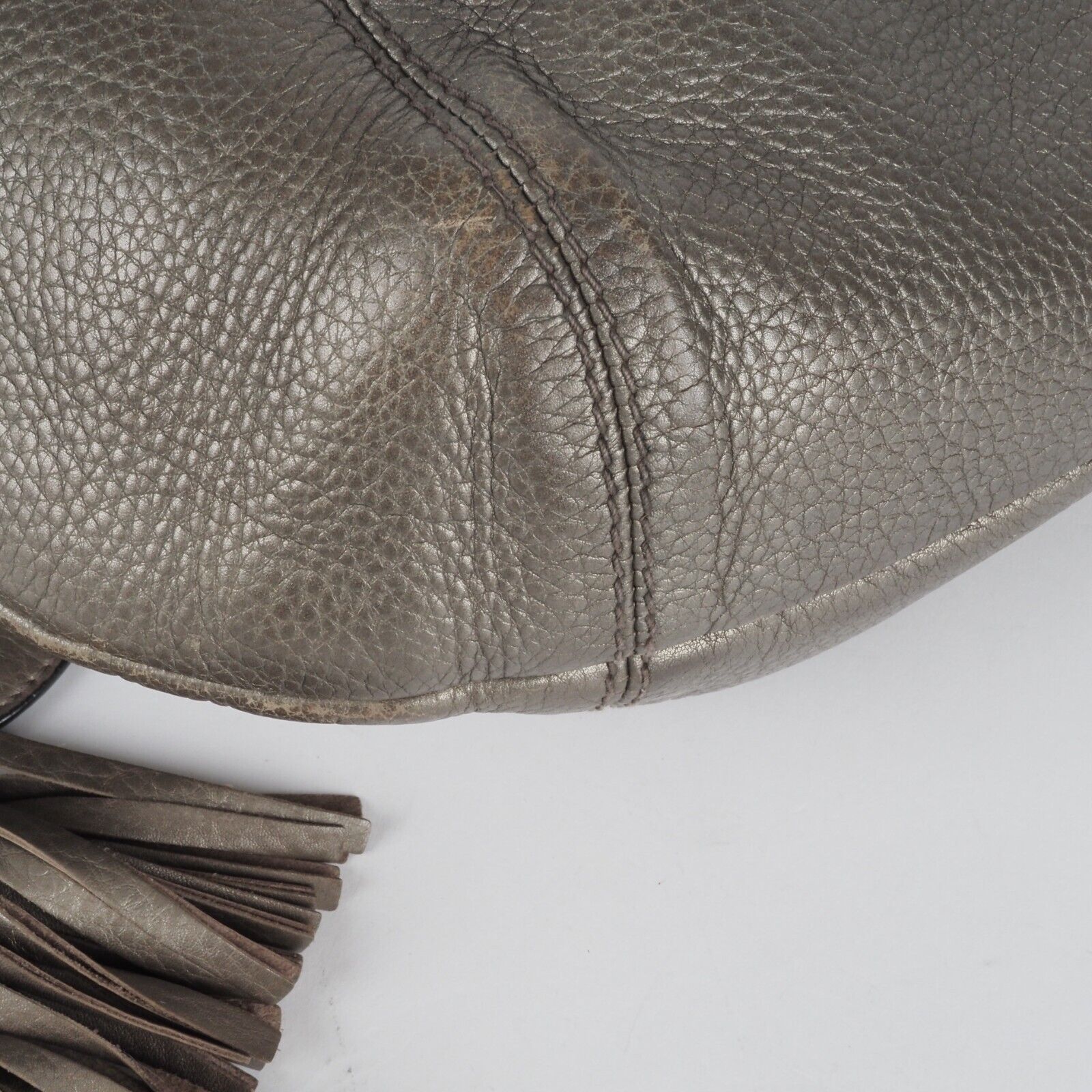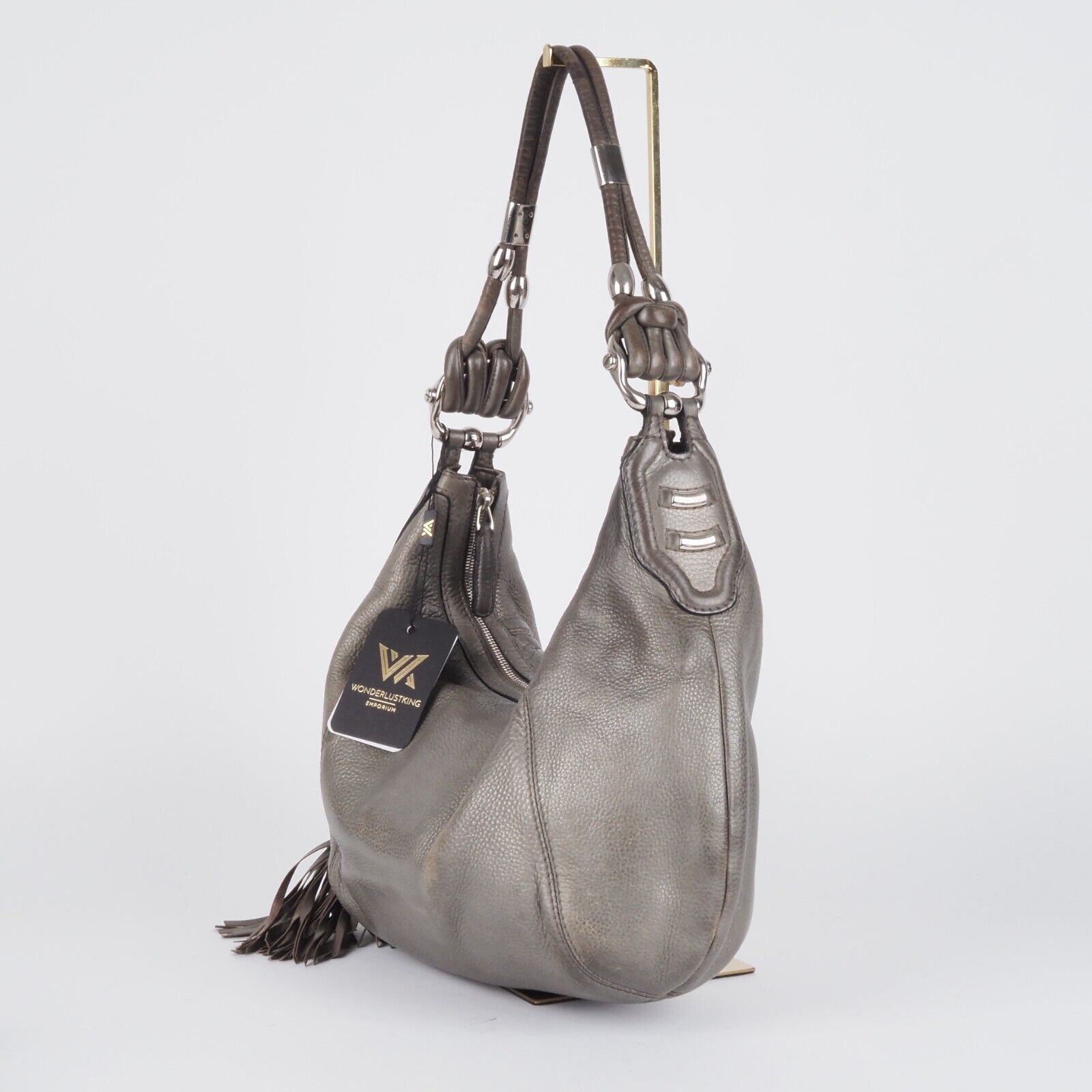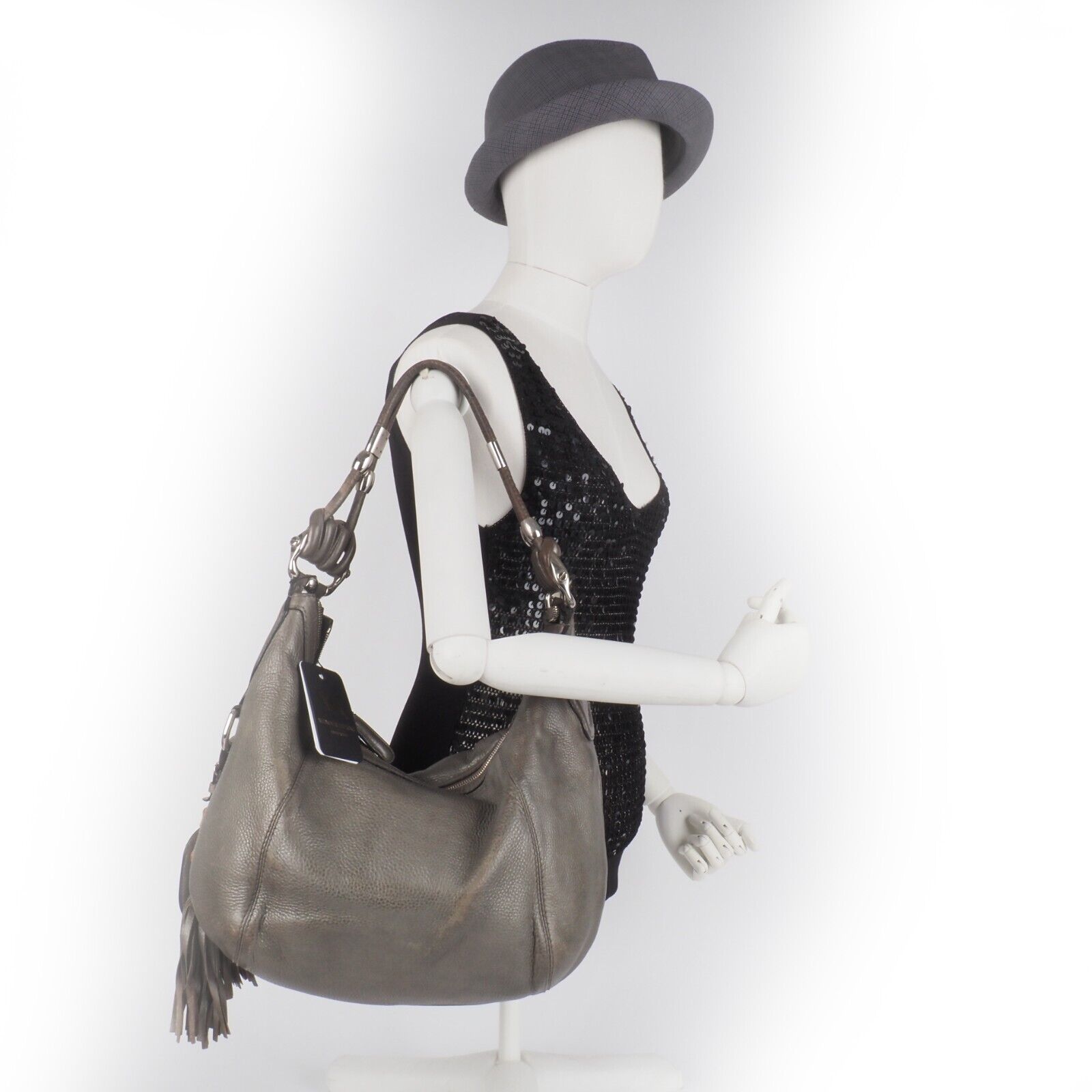 Diese stylische Techno Hobo Schultertasche von Gucci wurde in Italien aus Leder gefertigt. Die Tasche ist in ziemlich gebrauchtem Zustand mit deutlichen Gebrauchspuren so wie Abrieb, Kratzer, Flecken innen, Löcher innen. Riecht nach Waschmittel.