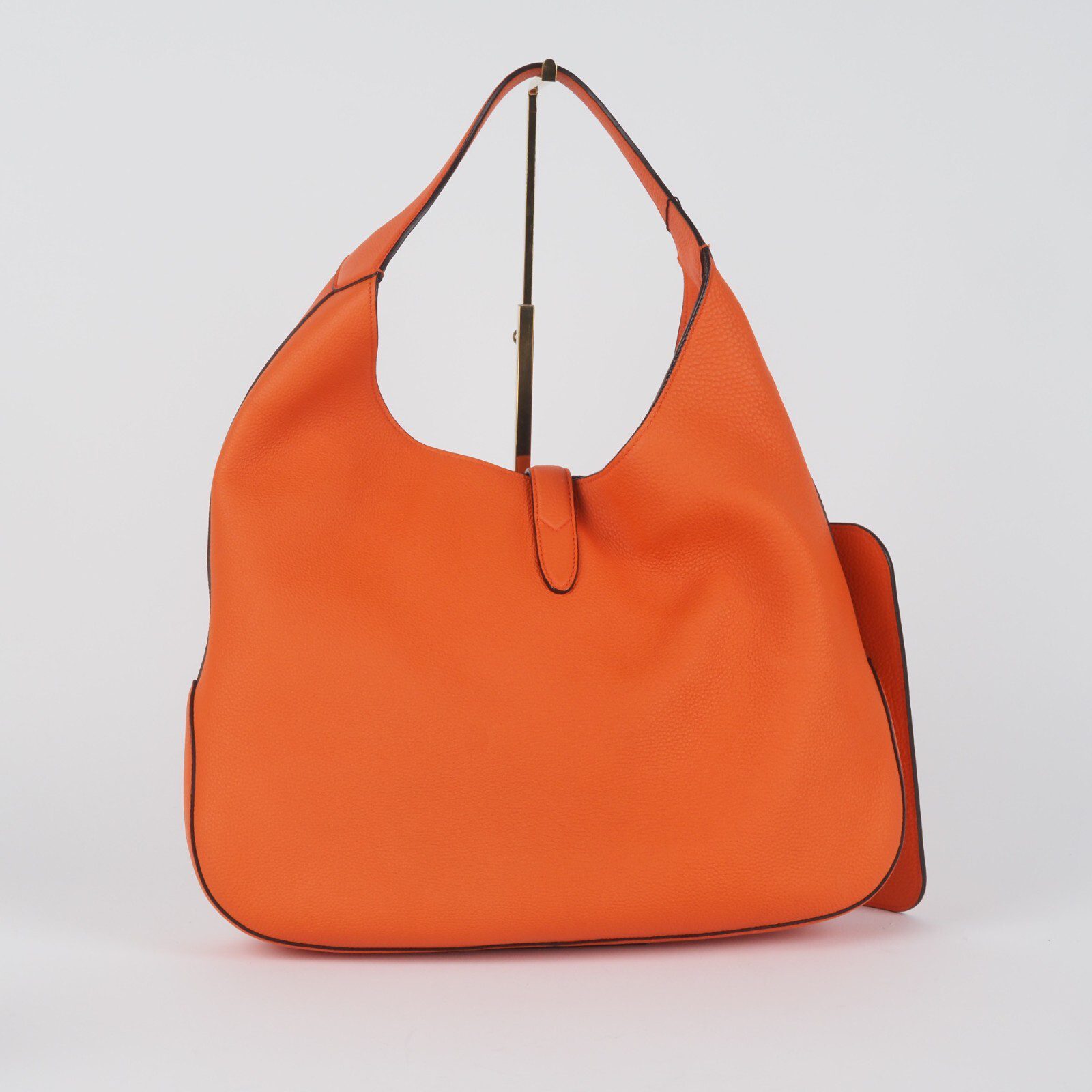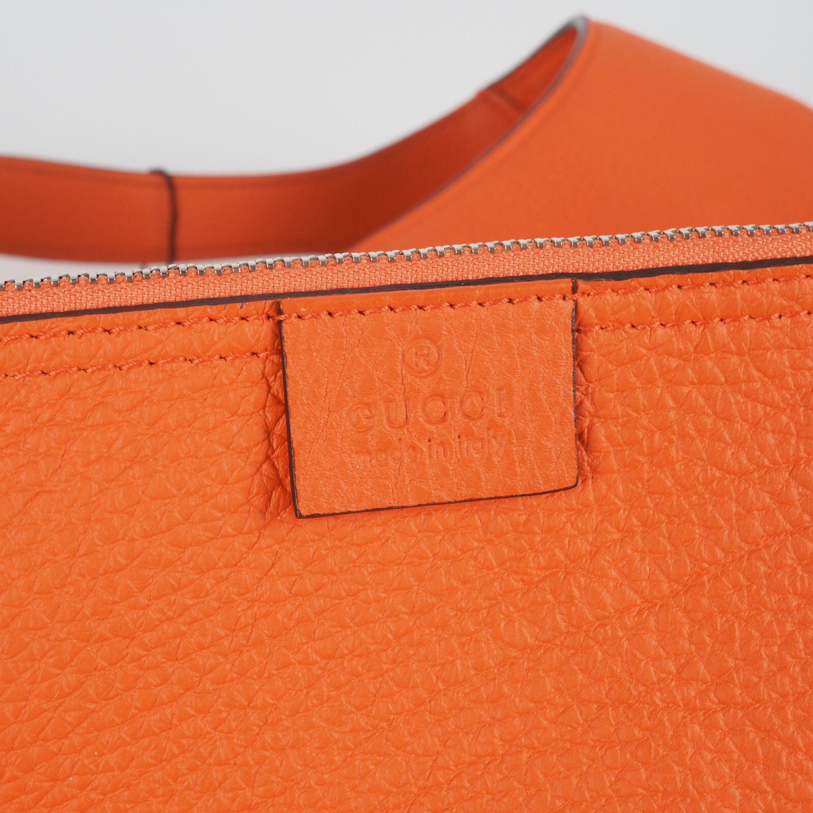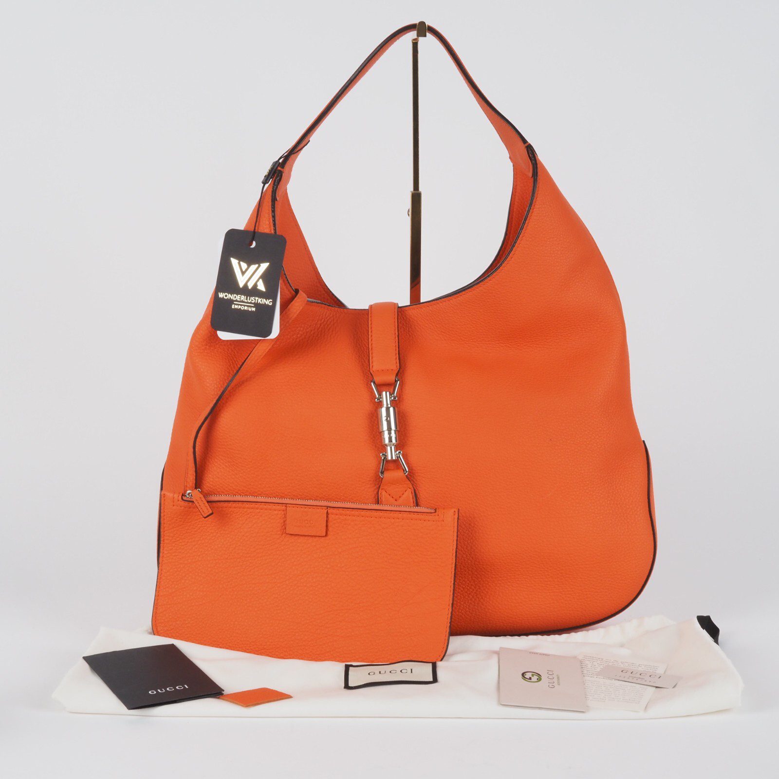 Diese wunderschöne Jackie Soft Hobotasche von Gucci ist ein neues Modell. Hergestellt aus weichem Kalbsleder in Italien in 2020. Orange mit silberner HArdware. Innenfutter aus Naurleder. In neuwertigem Zustand mit ganz leichten Gebrauchspuren. Innen und außen sauber und frei von Gerüche. Kommt mit Staubbeutel und Pochette.