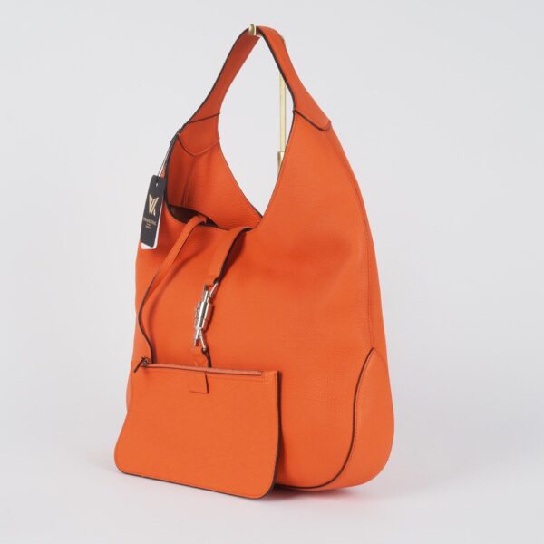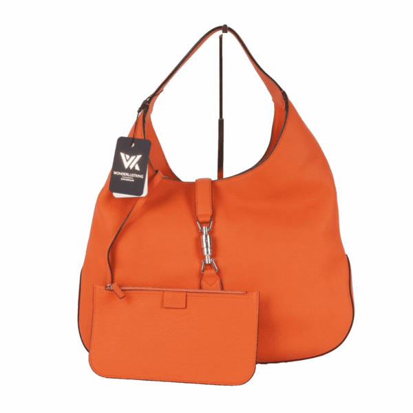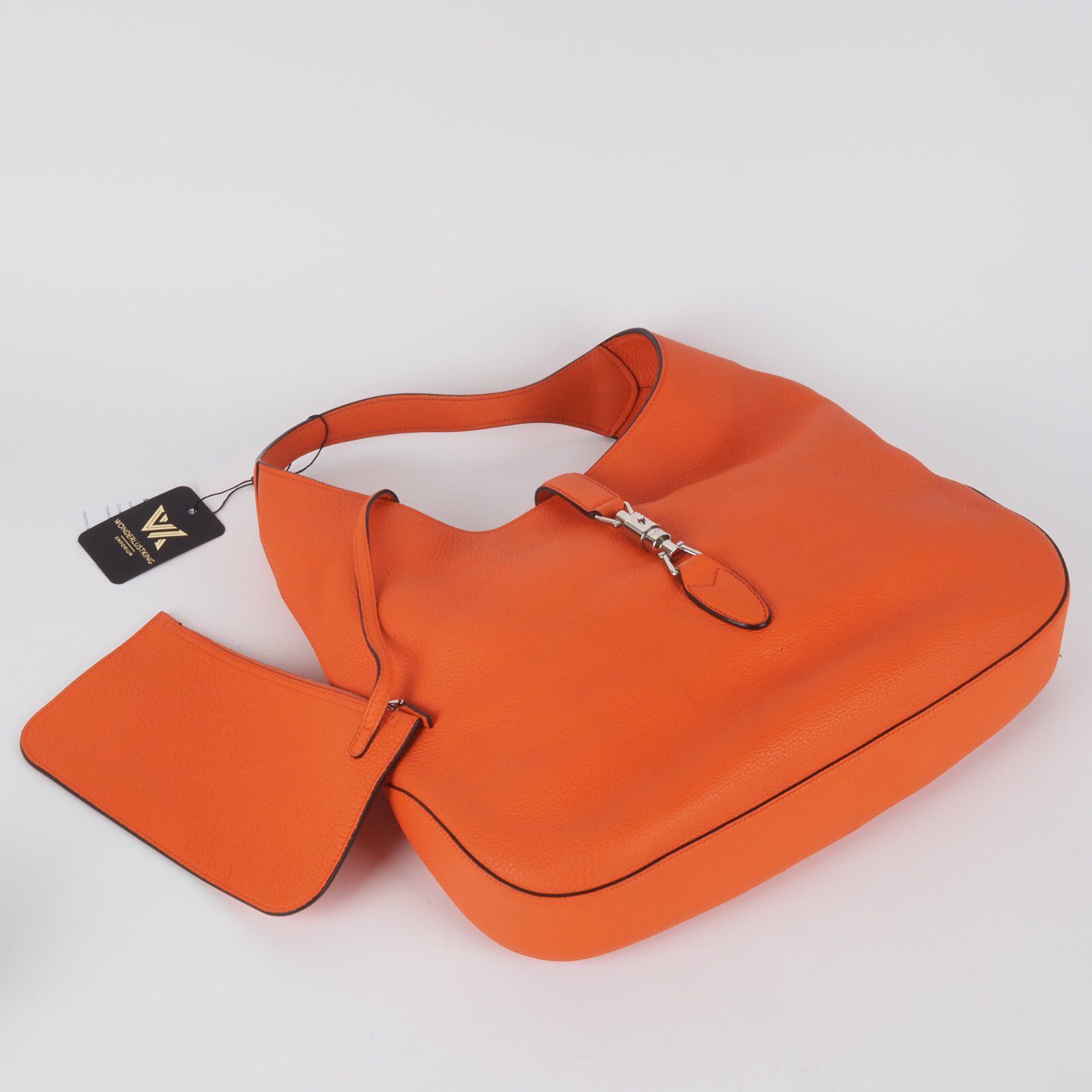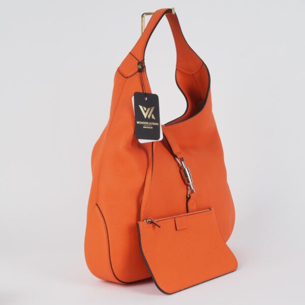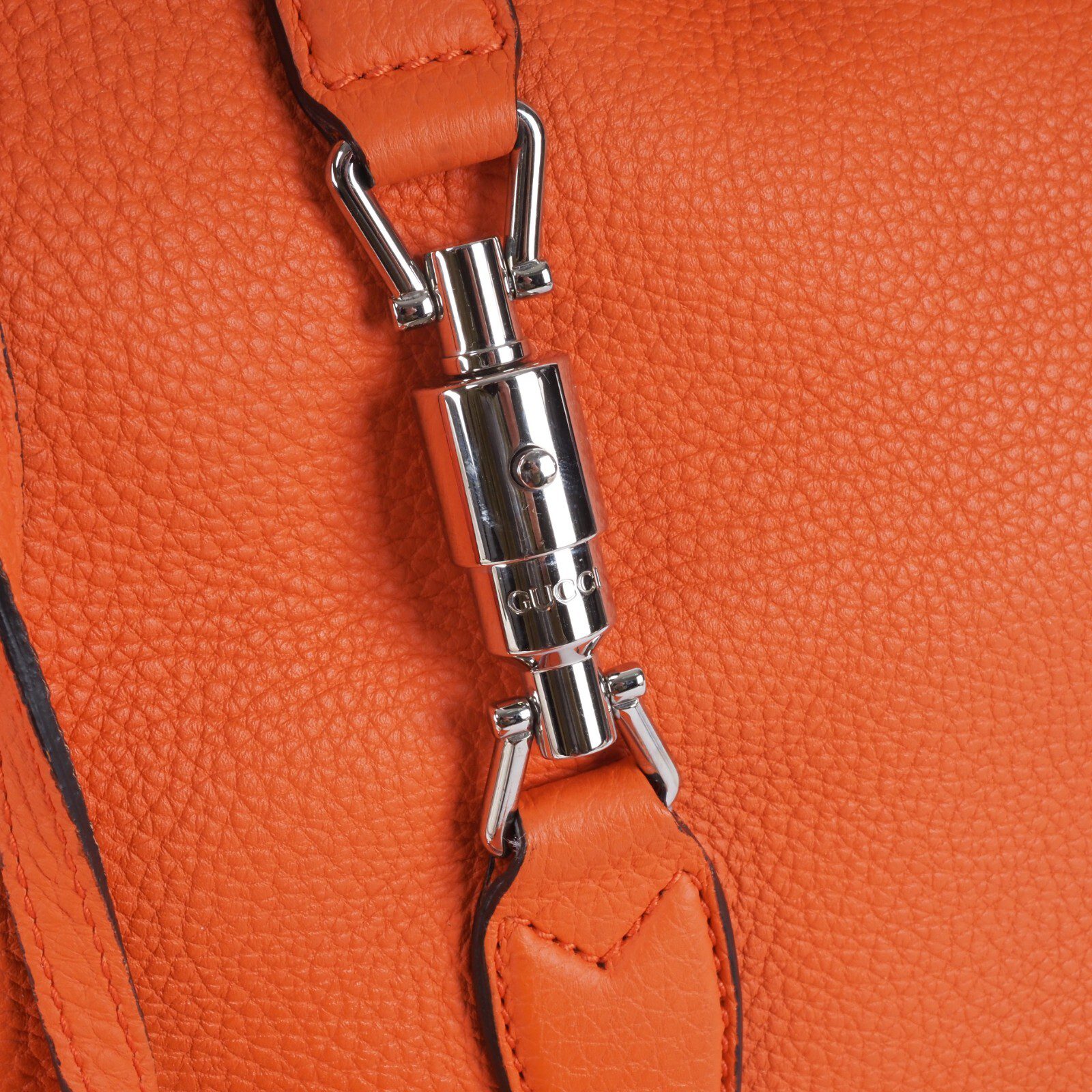 Diese wunderschöne Jackie Soft Hobotasche von Gucci ist ein neues Modell. Hergestellt aus weichem Kalbsleder in Italien in 2020. Orange mit silberner HArdware. Innenfutter aus Naurleder. In neuwertigem Zustand mit ganz leichten Gebrauchspuren. Innen und außen sauber und frei von Gerüche. Kommt mit Staubbeutel und Pochette.