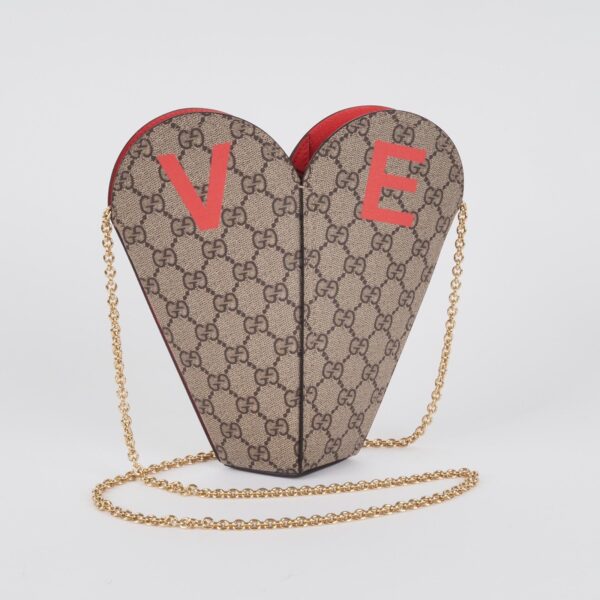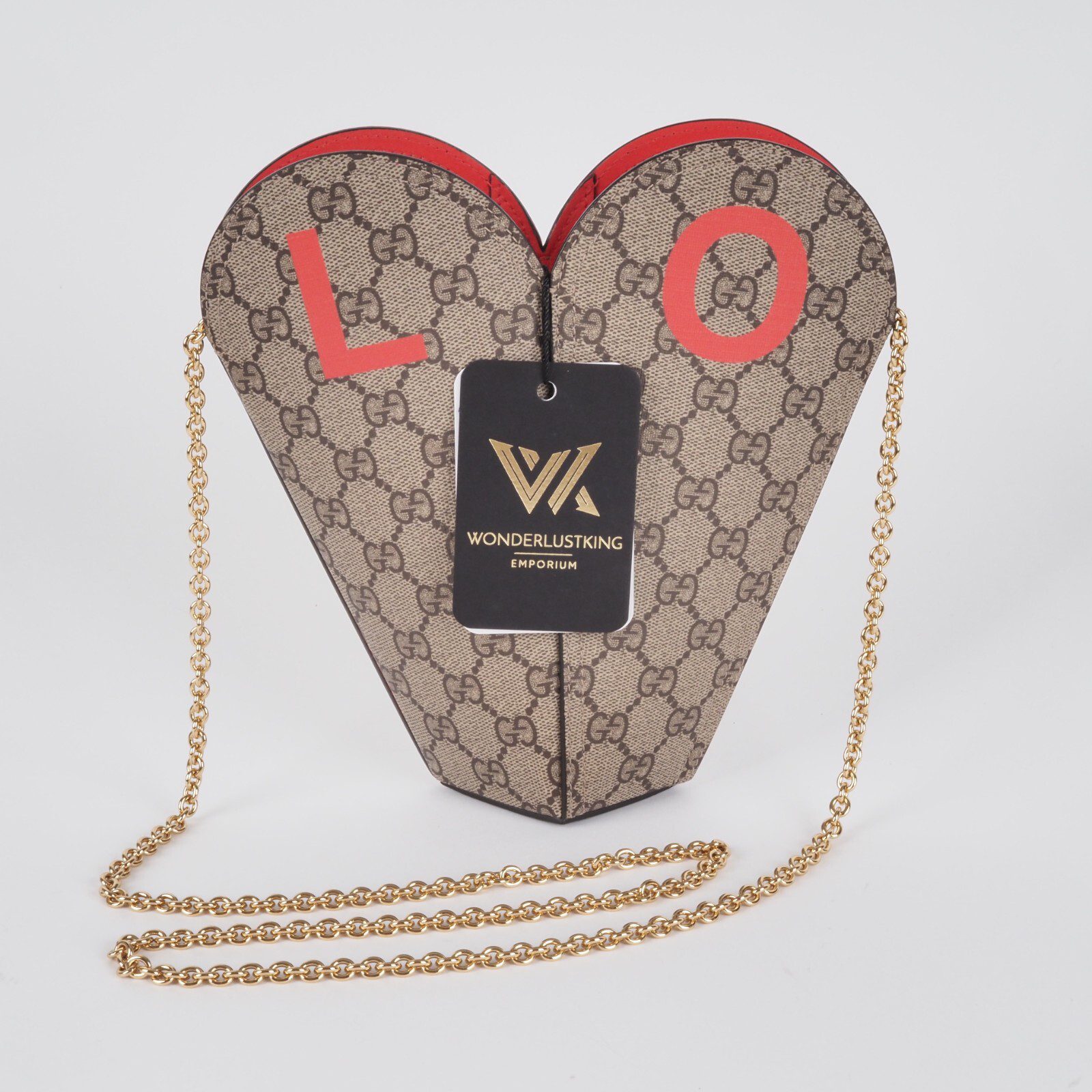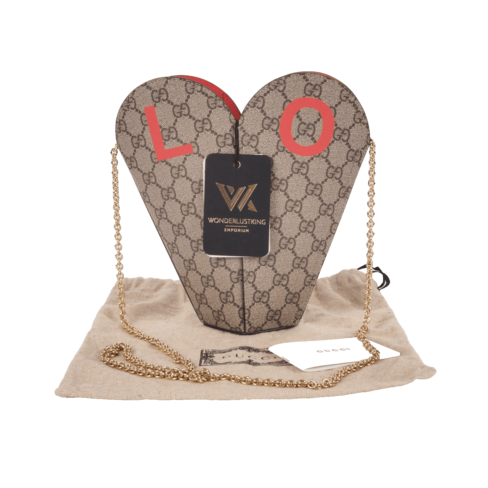 Diese wunderschöne kleine Schultertasche von GUCCI wurde in Italien gefertigt. Seltenes Sammlerstück. Außen GG Canvas mit LOVE Schriftzug, Innenfutter aus rotem Leder. Die Tasche ist unbenutzt, quasi neu, Ausstellungstück. Innen und außen sauber und frei von Gerüche.