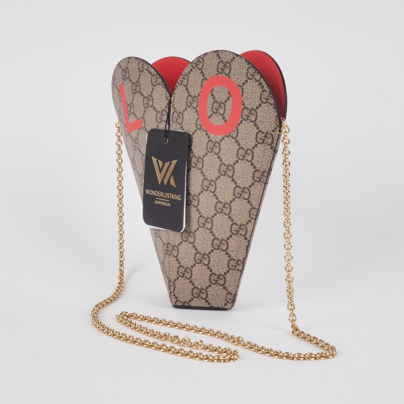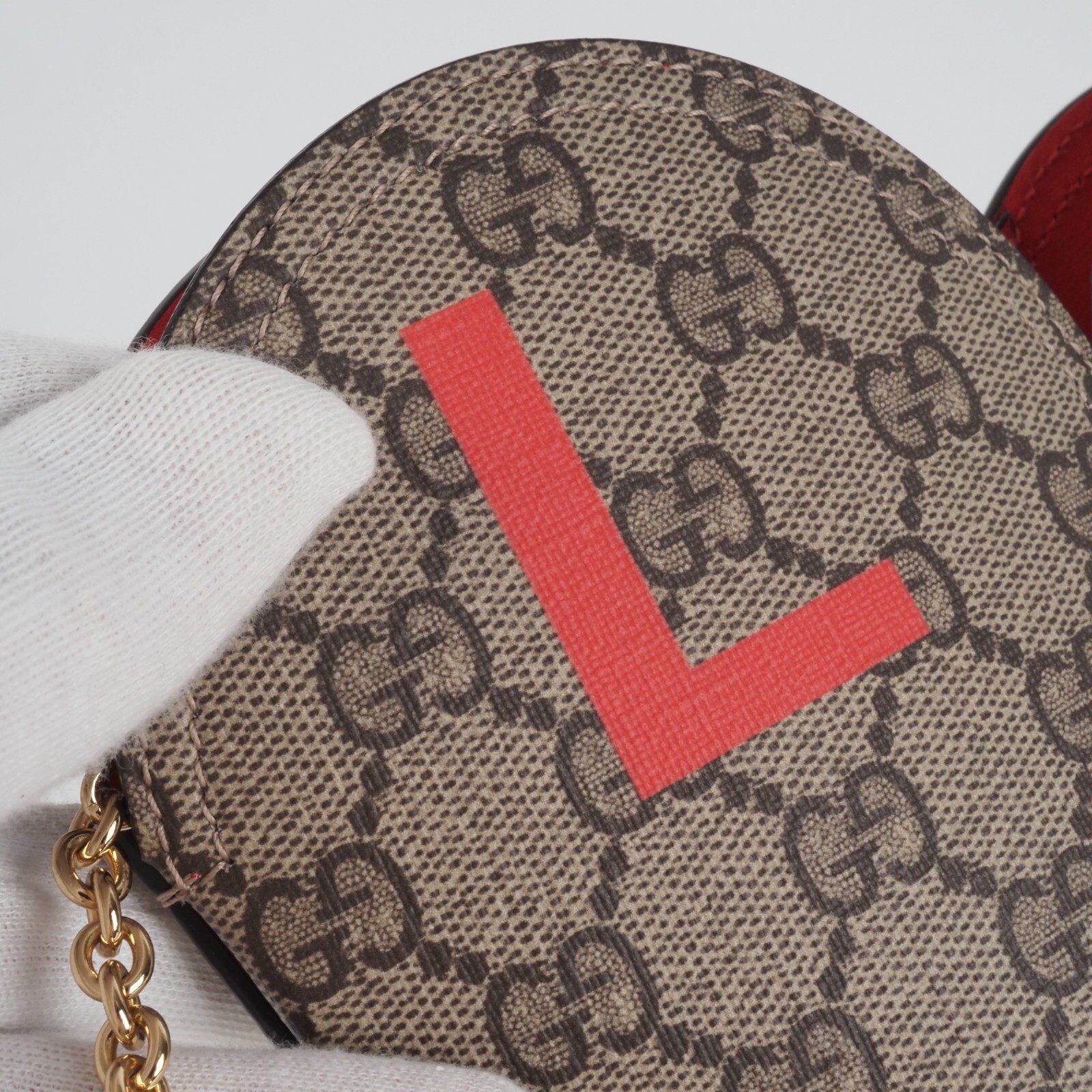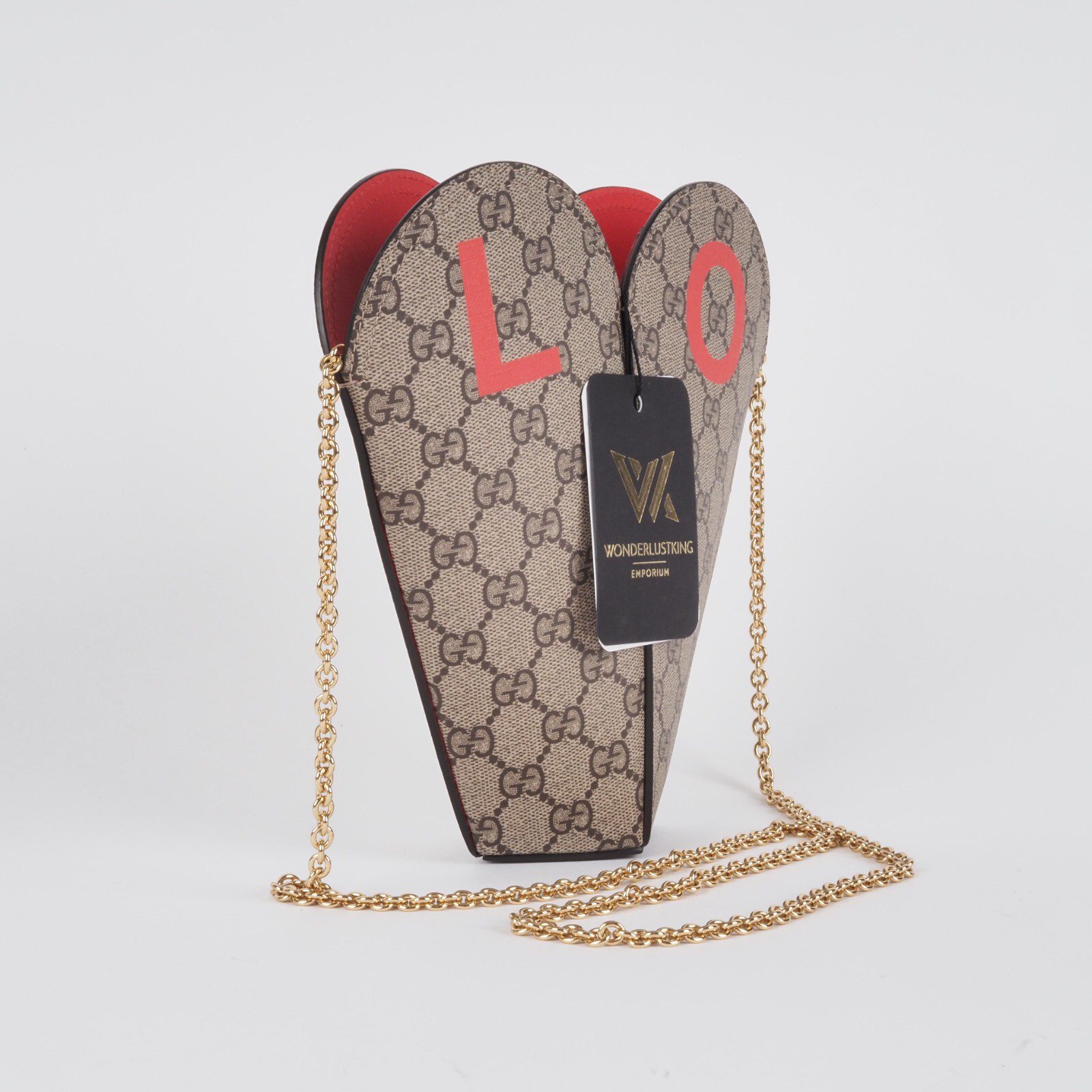Diese wunderschöne kleine Schultertasche von GUCCI wurde in Italien gefertigt. Seltenes Sammlerstück. Außen GG Canvas mit LOVE Schriftzug, Innenfutter aus rotem Leder. Die Tasche ist unbenutzt, quasi neu, Ausstellungstück. Innen und außen sauber und frei von Gerüche.