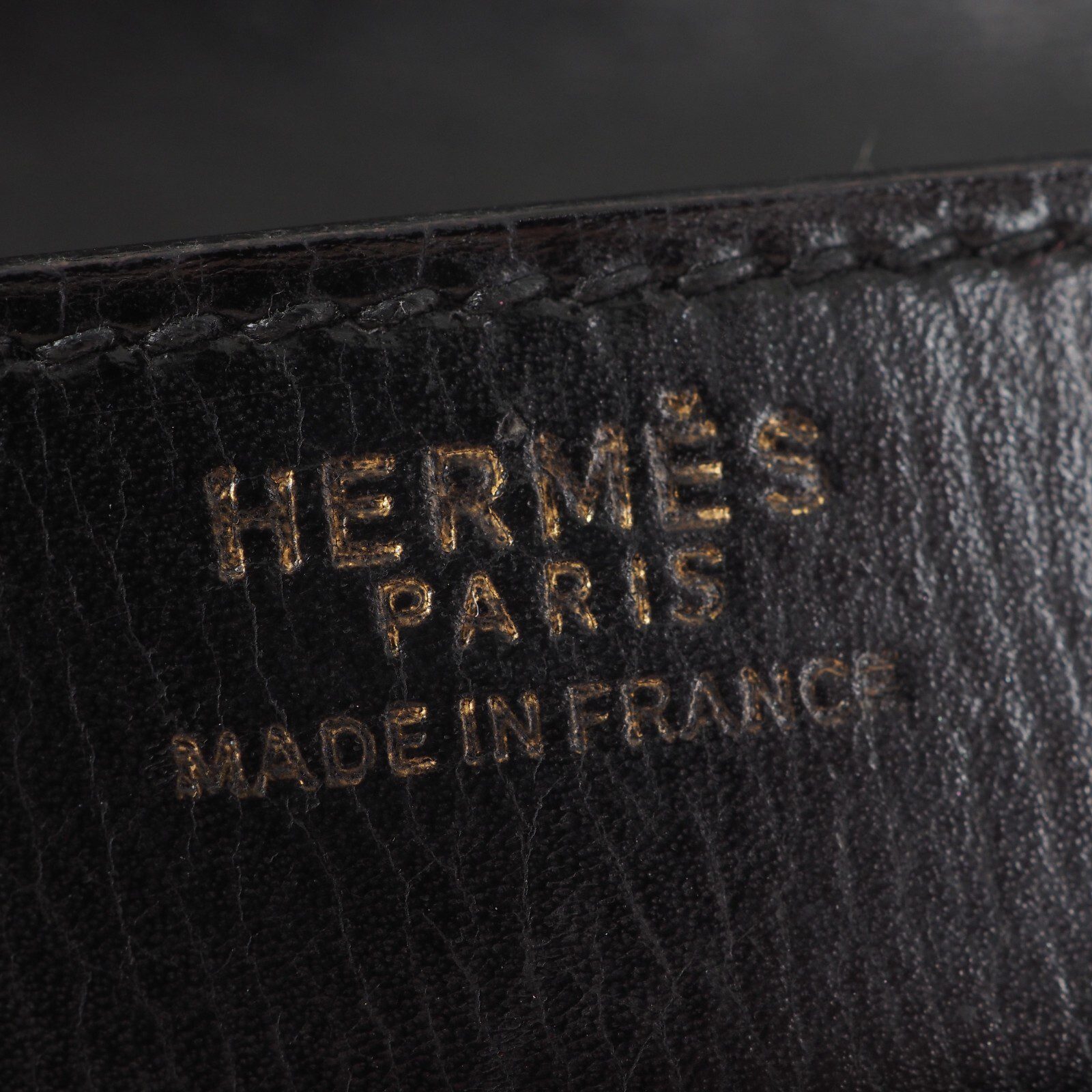 Diese wunderschöne vintage Ring bag von HERMÈS Paris wurde im 1974 in Frankreich aus Boxcalf Leder handgefertigt. Die Tasche ist in einem gepflegtem vintage - Zustand mit leichten Kratzer und Abrieb überall. Innen und außen sauber und frei von Gerüche. Die Lederteile sind leicht rissig. Die Schließe funktioniert einwandfrei.
