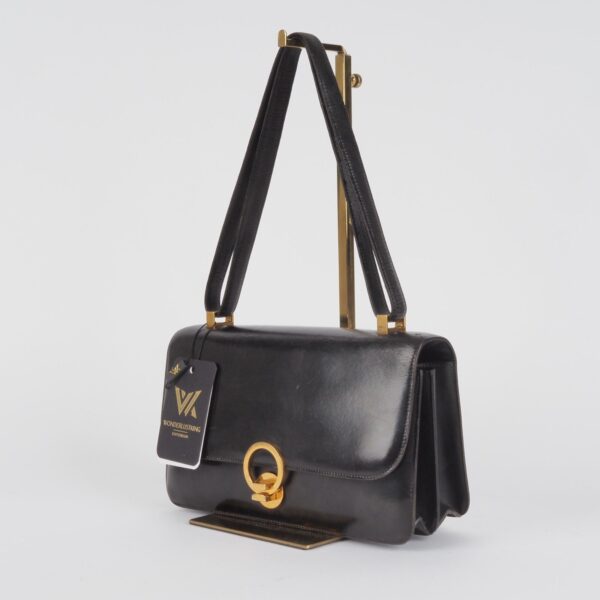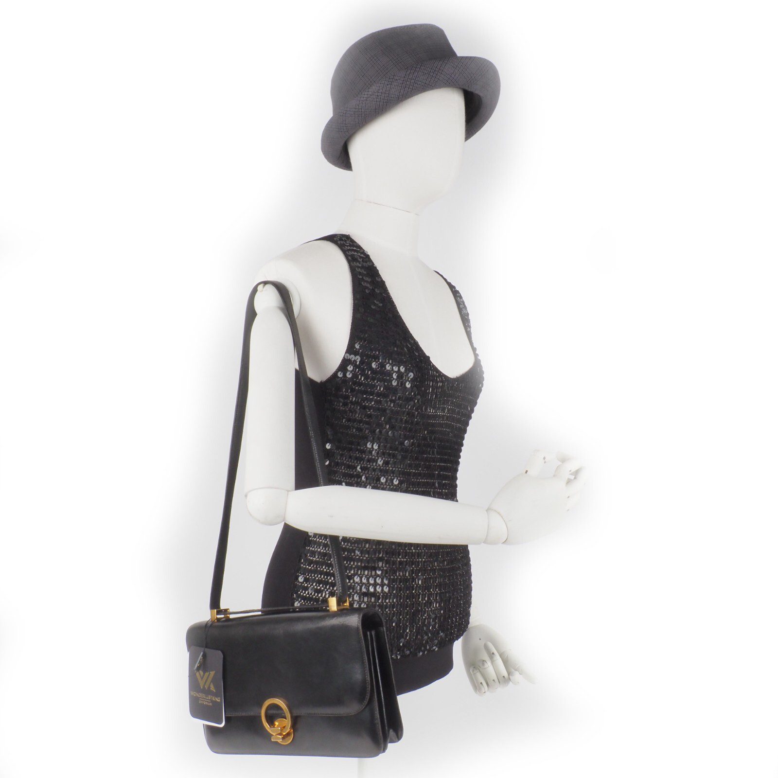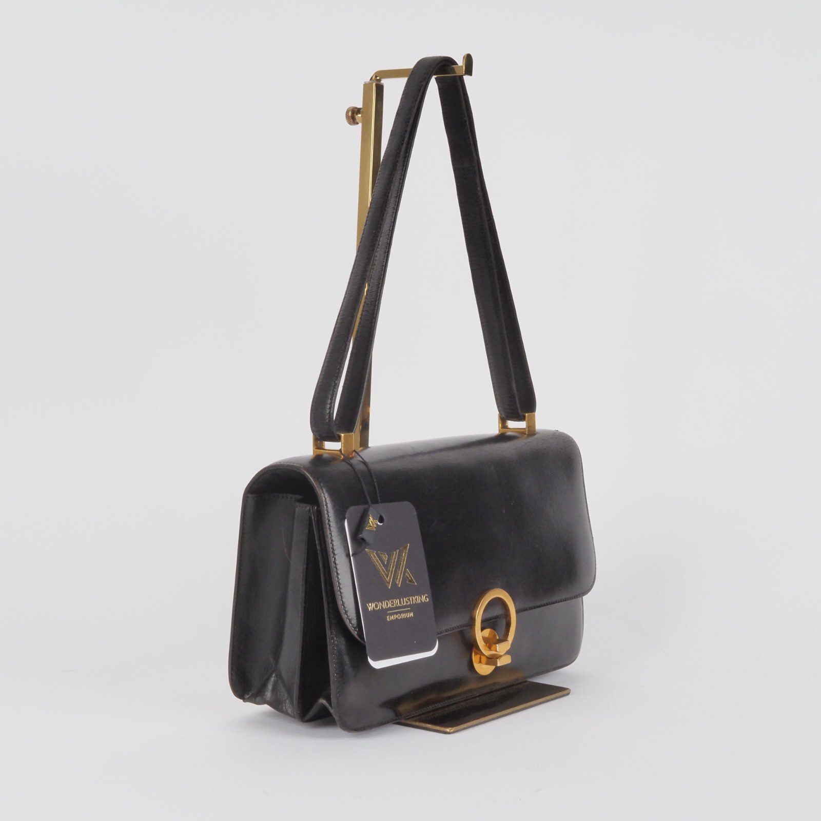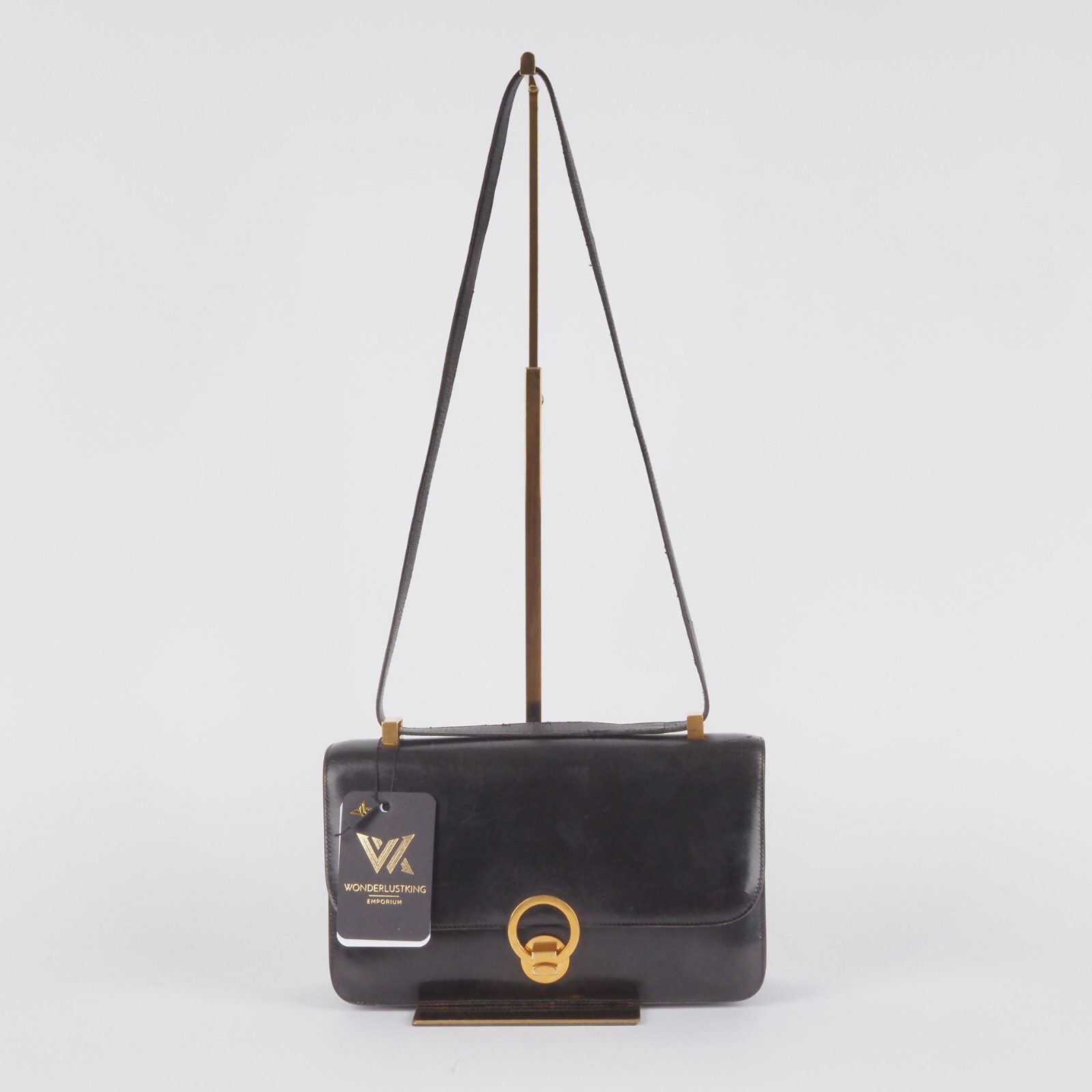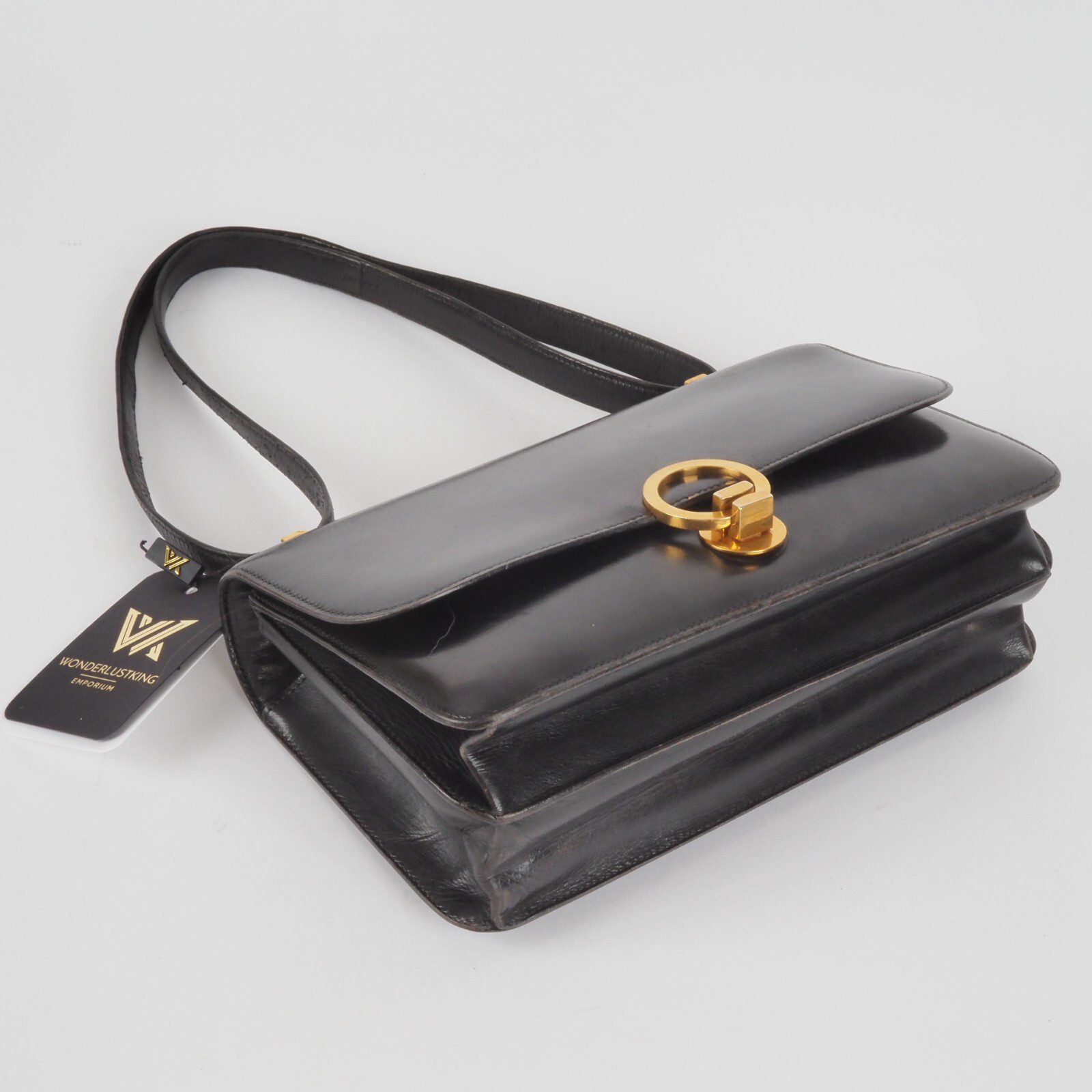Ring Luxus Designer Schultertasche Boxcalf / Gold 1974 Vintage