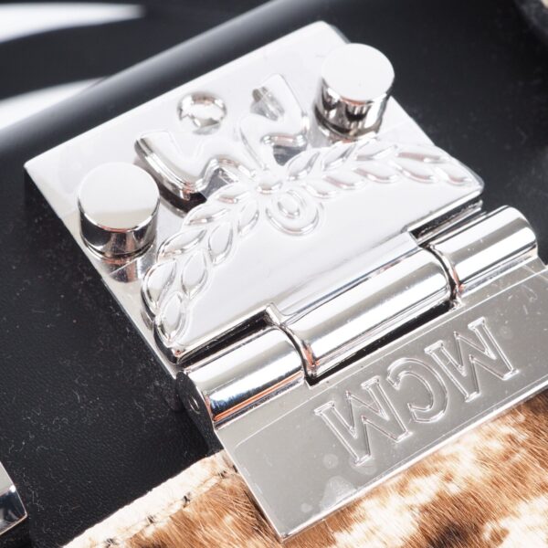 Diese wunderschöne Ultra seltene Mini Trunk von MCM ist eine Runway-Item – das Modell war im Handel nicht erhältlich. Sehr hochwertig verarbeitet – aus Leder mit Ponyfell und Hardware mit Palladium-Finish. Mit verstellbarem abnehmbarem Schulterriemen aus Kalbsleder. Mit zwei Innenfächer und eine Innentasche. Die Tasche ist absolut neuwertig, ungetragen, frei von Flecken und Gerüche.