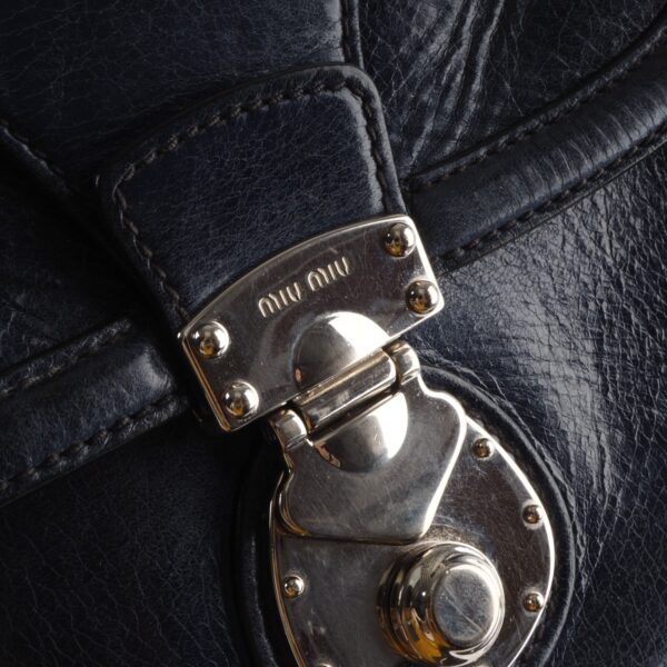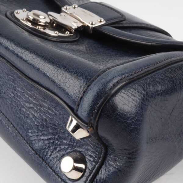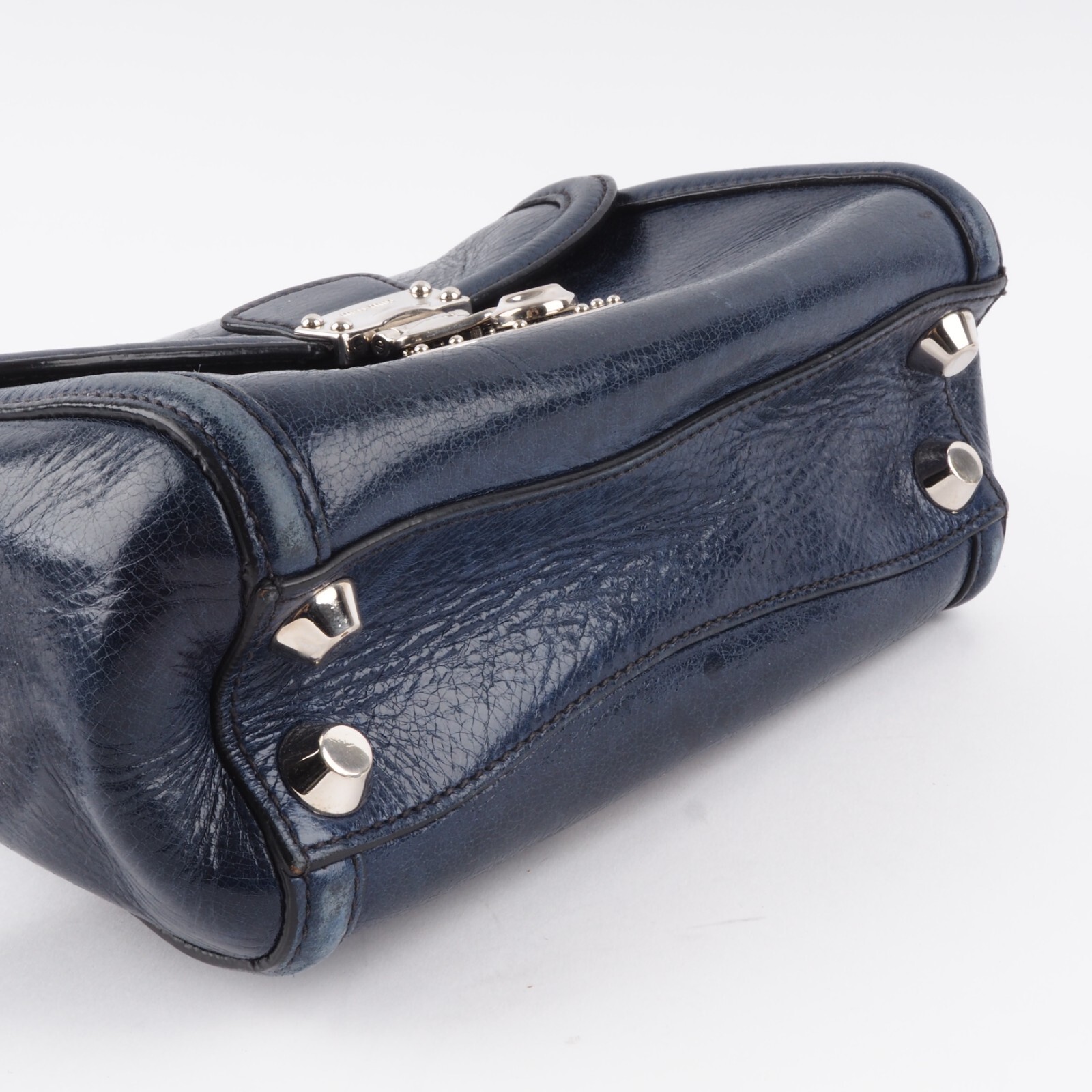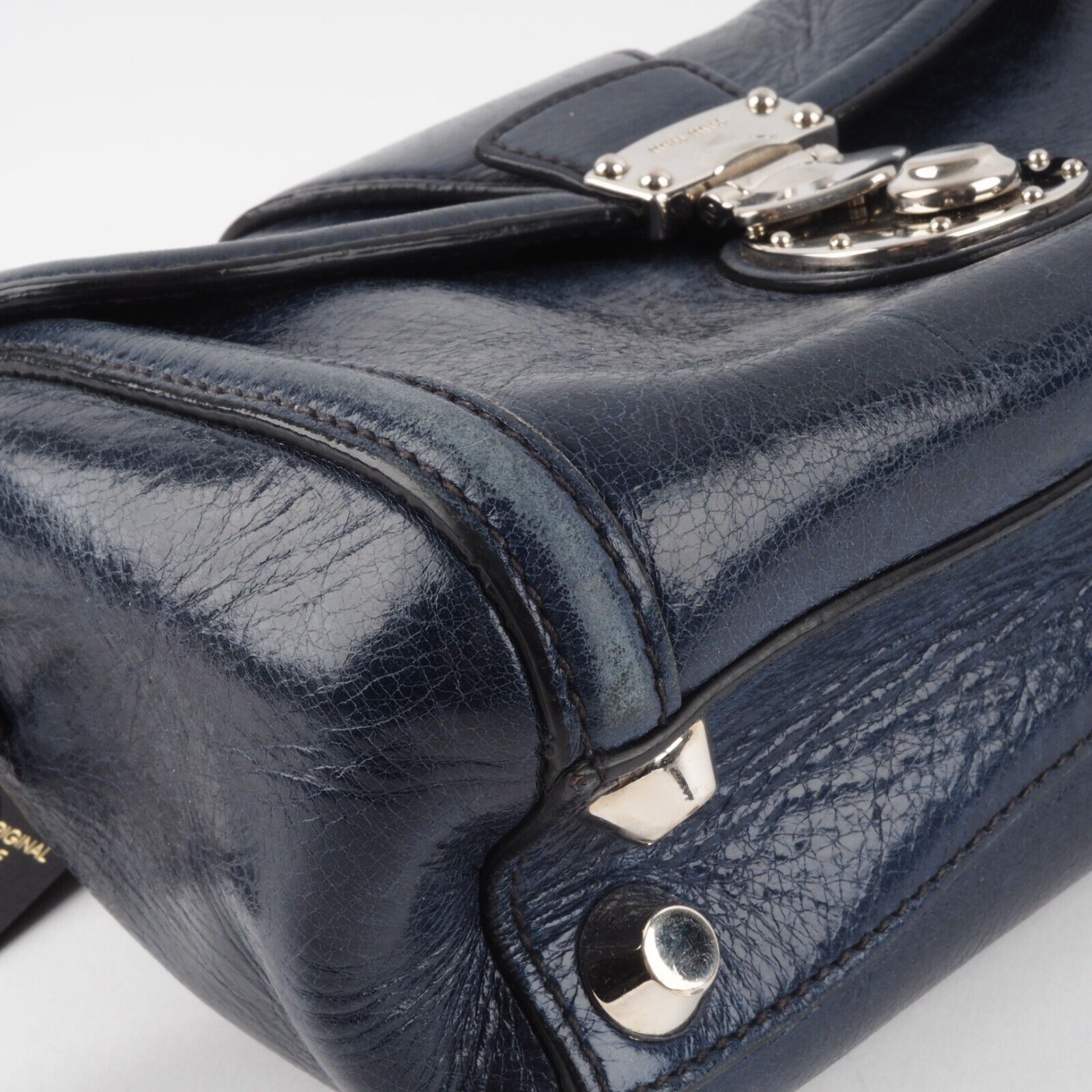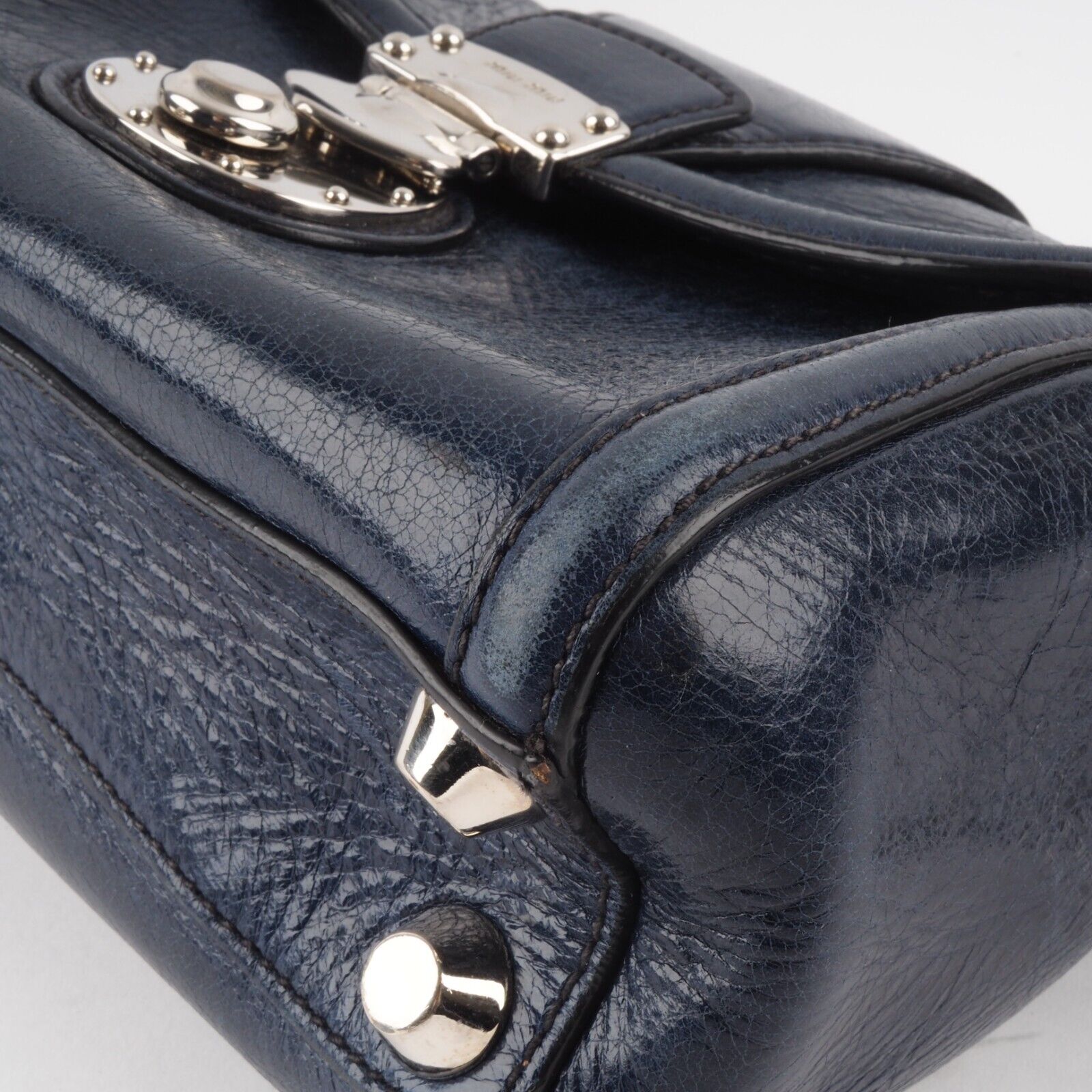 Diese kleine Schultertasche von MIU MIU kann man als Top-Handle Handtasche, oder mit dem abnehmbaren Schulterriemen als Schultertasche getragen werden. Sie ist in gutem gebrauchten Zustand mit Abrieb an den unteren Ecken. Innen und außen sauber.
