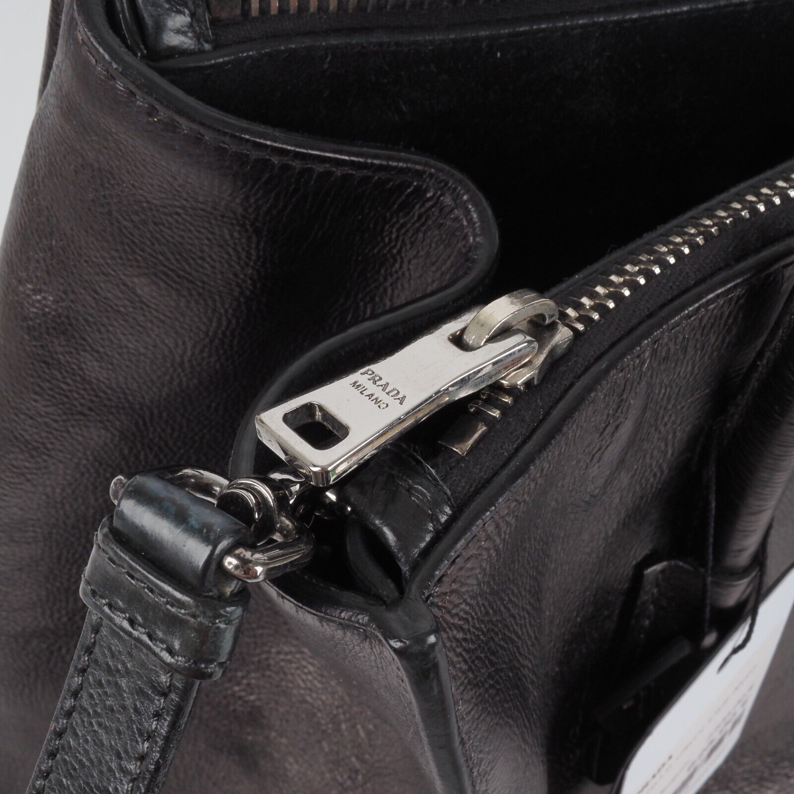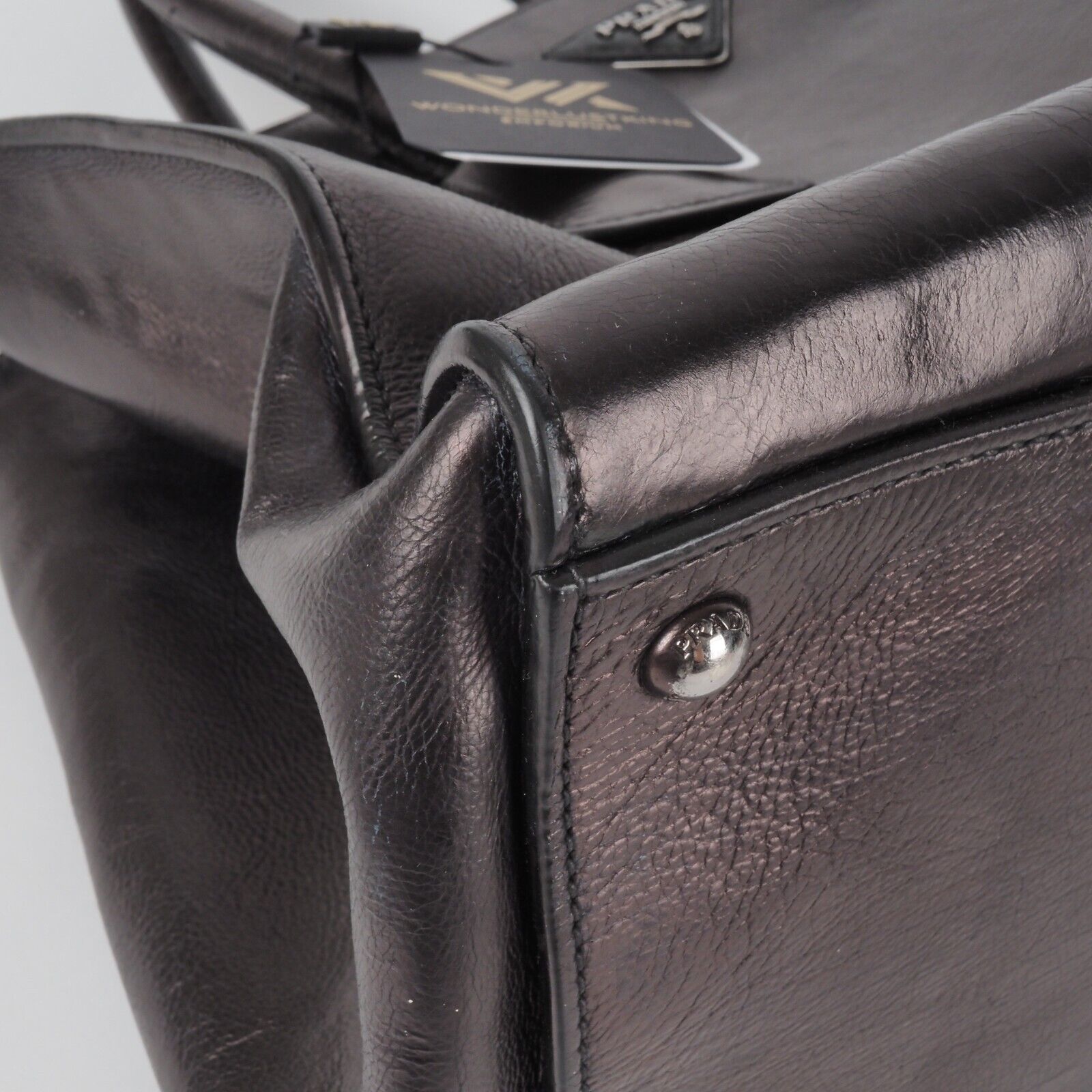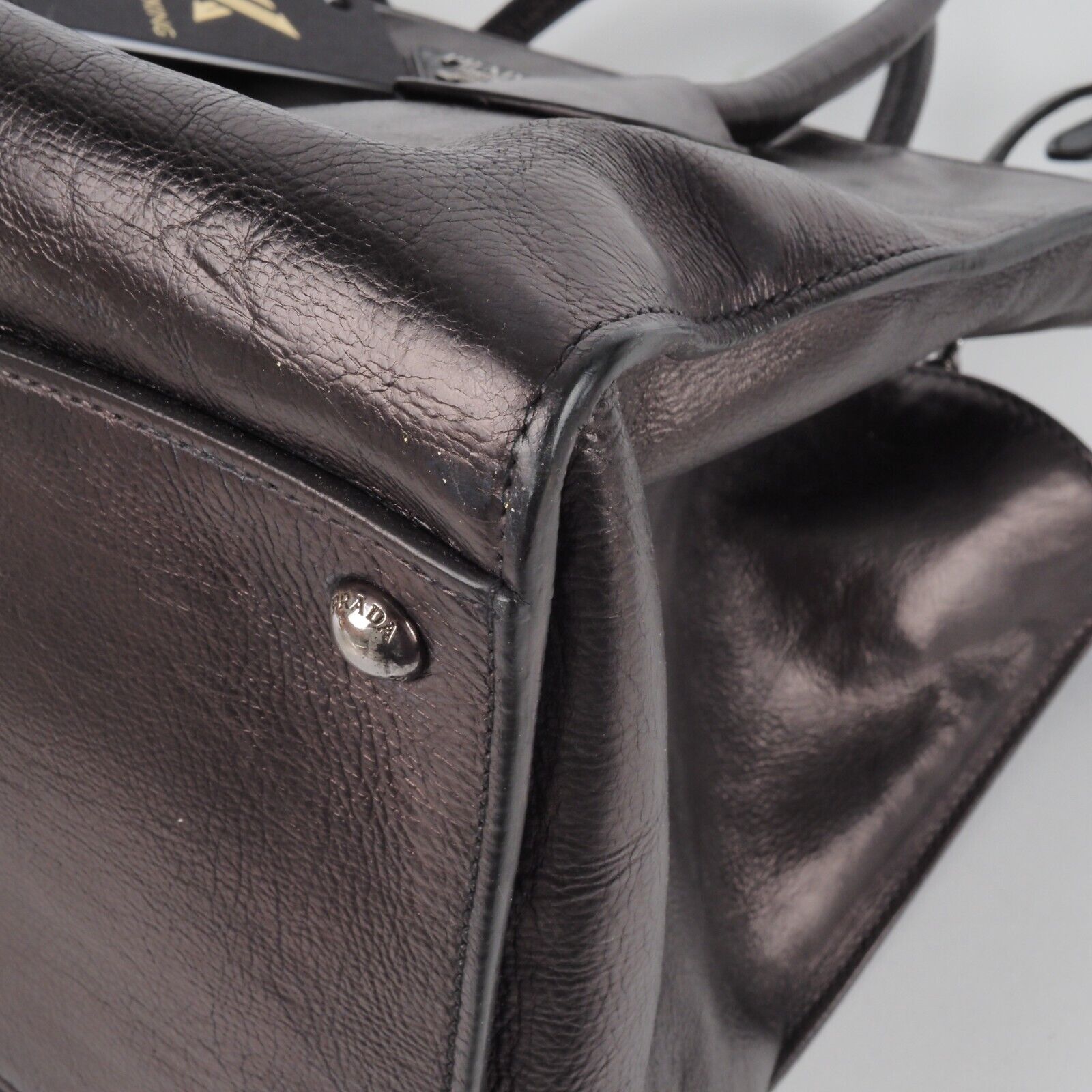 PRADA BN2619 Glace Calf Nero Luxus Designer Double Zip Pocket Tote OP: 2400 €