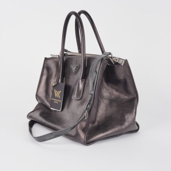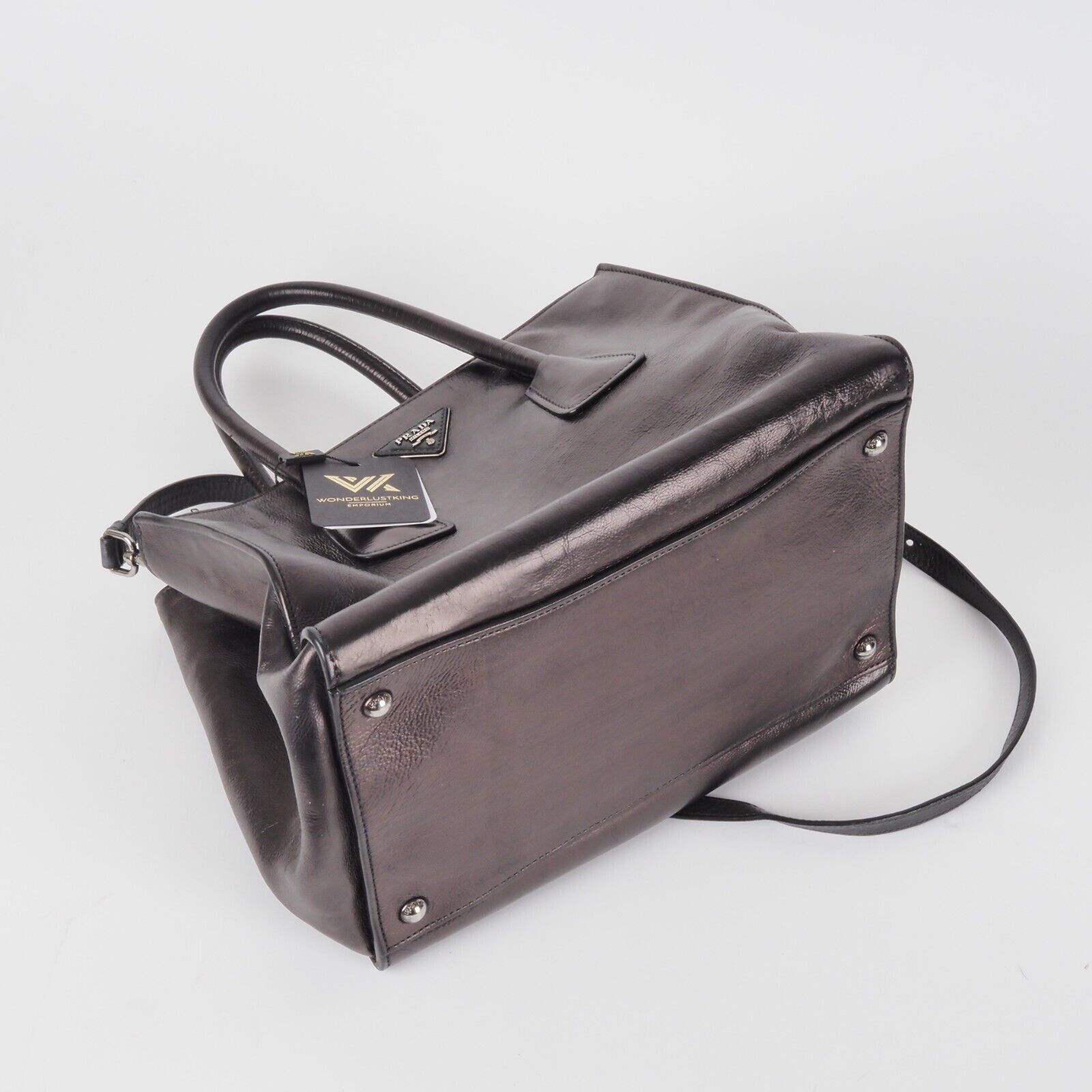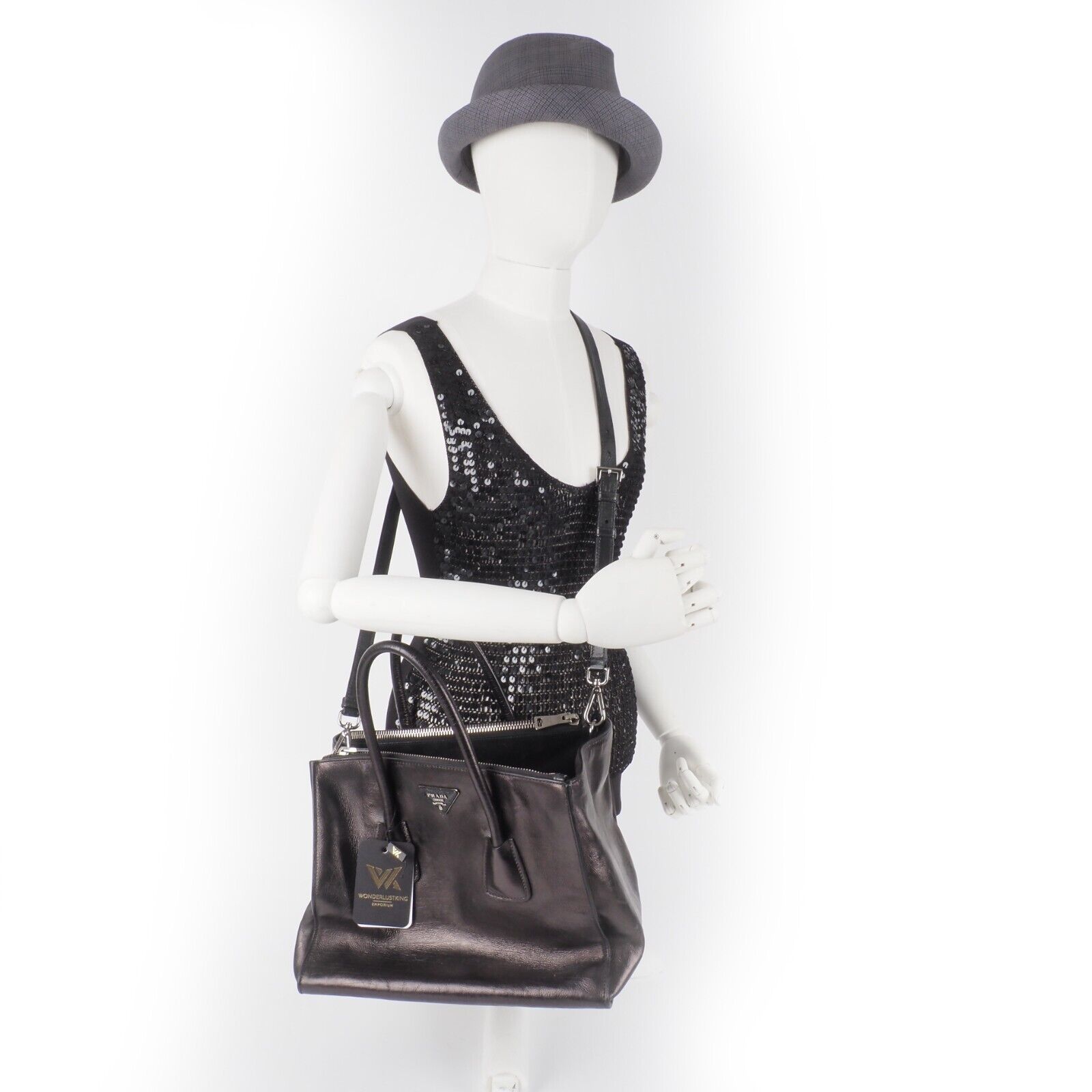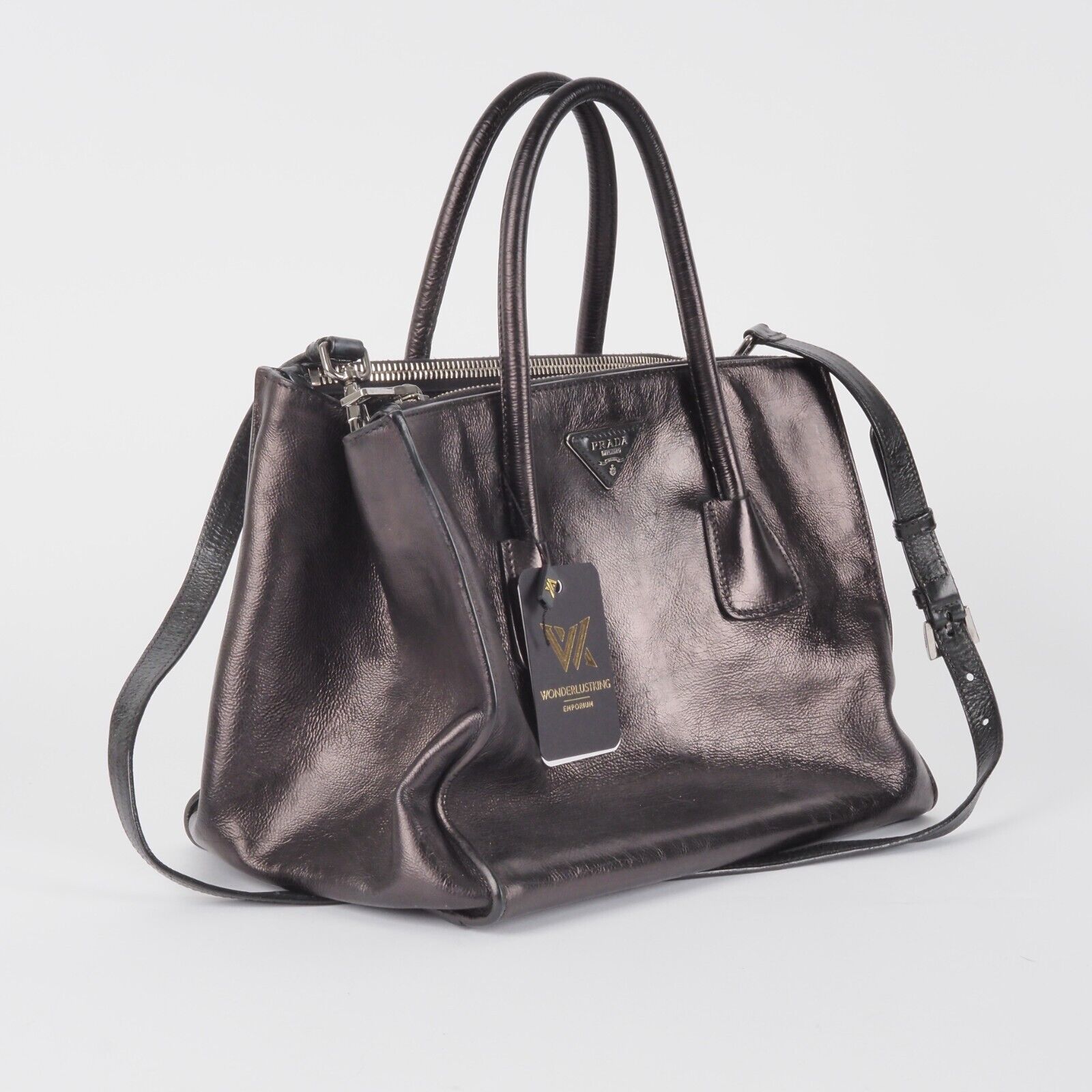PRADA BN2619 Glace Calf Nero Luxus Designer Double Zip Pocket Tote OP: 2400 €