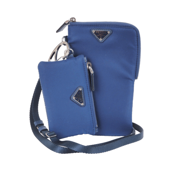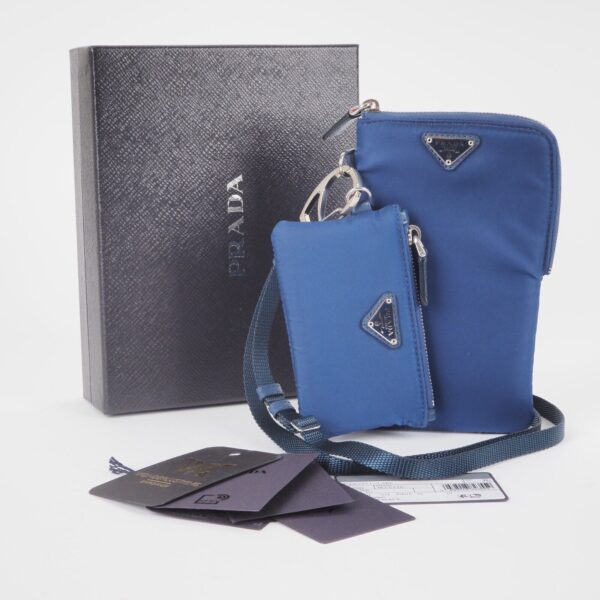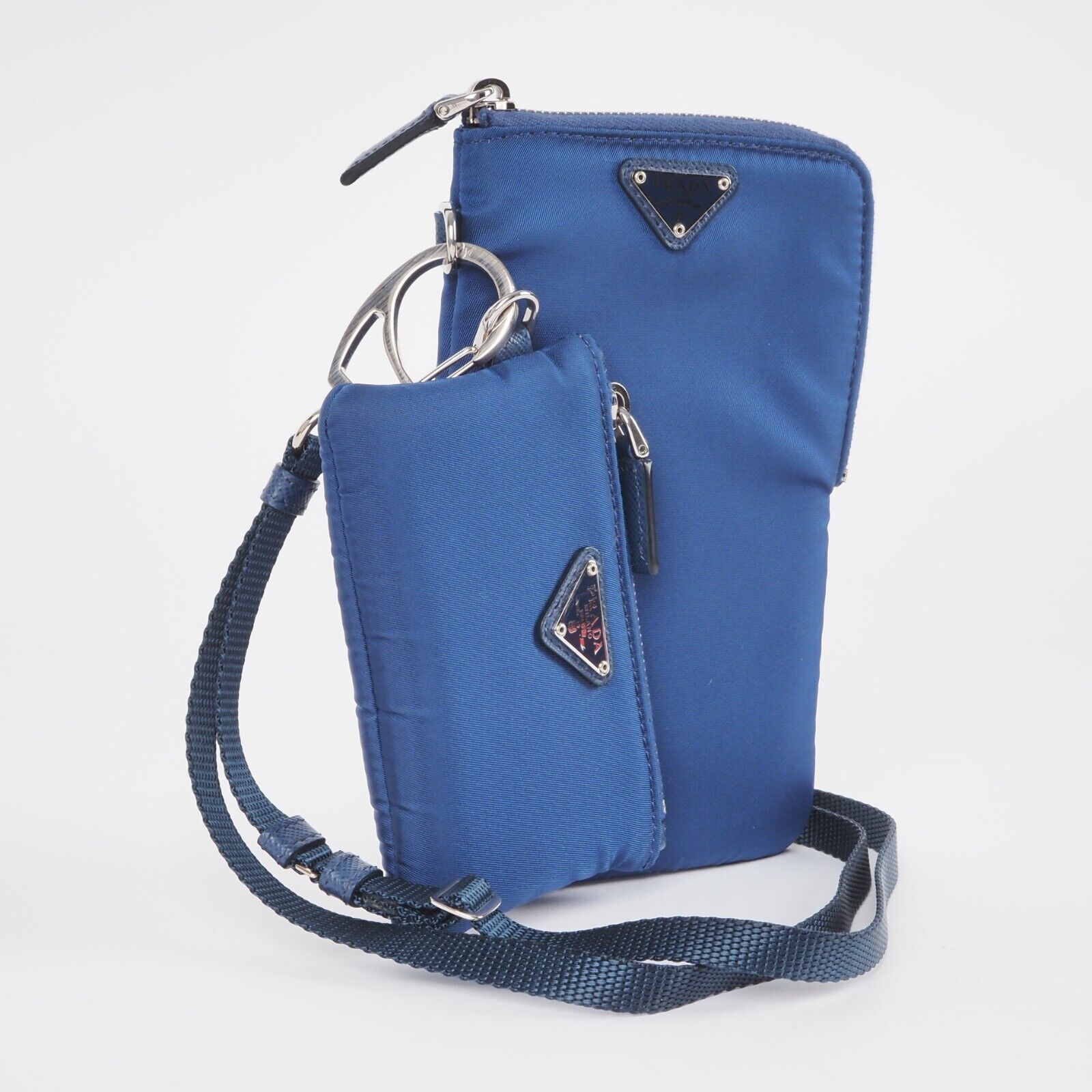 Diese stylische Halstasche für Smartphones von Prada wurde aus Tessuto RE-Nylon hergestellt. NEU im OVP. Kommt mit einem Schlüsseletui und Halsband.