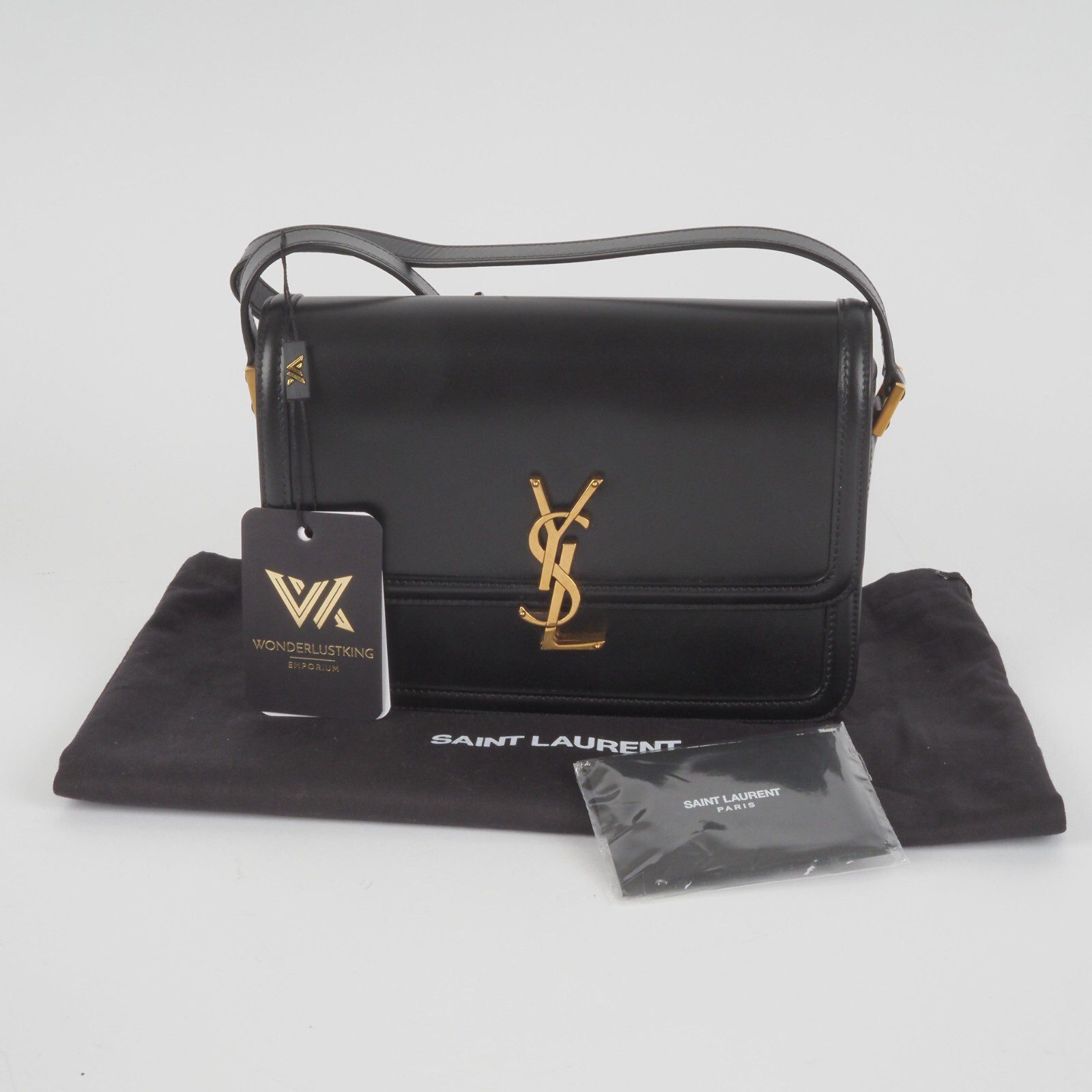 Diese wunderschöne Solferino Medium Schultertasche von Saint Laurent wurde in Italien aus feinem Boxcalf Leder handgefertigt. Die Tasche ist absolut neu, Laden – Ausstellungstück mit einigen minimalen Kratzer die man am besten im Gegenlicht sieht